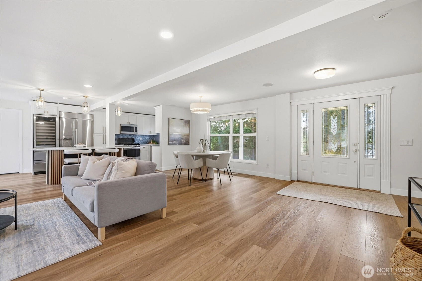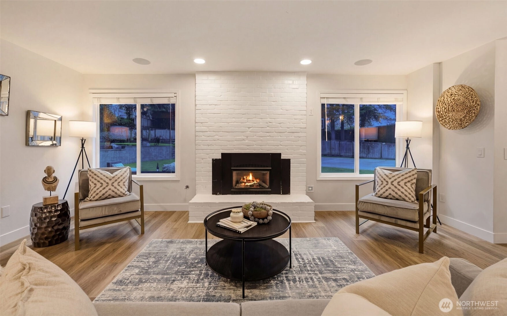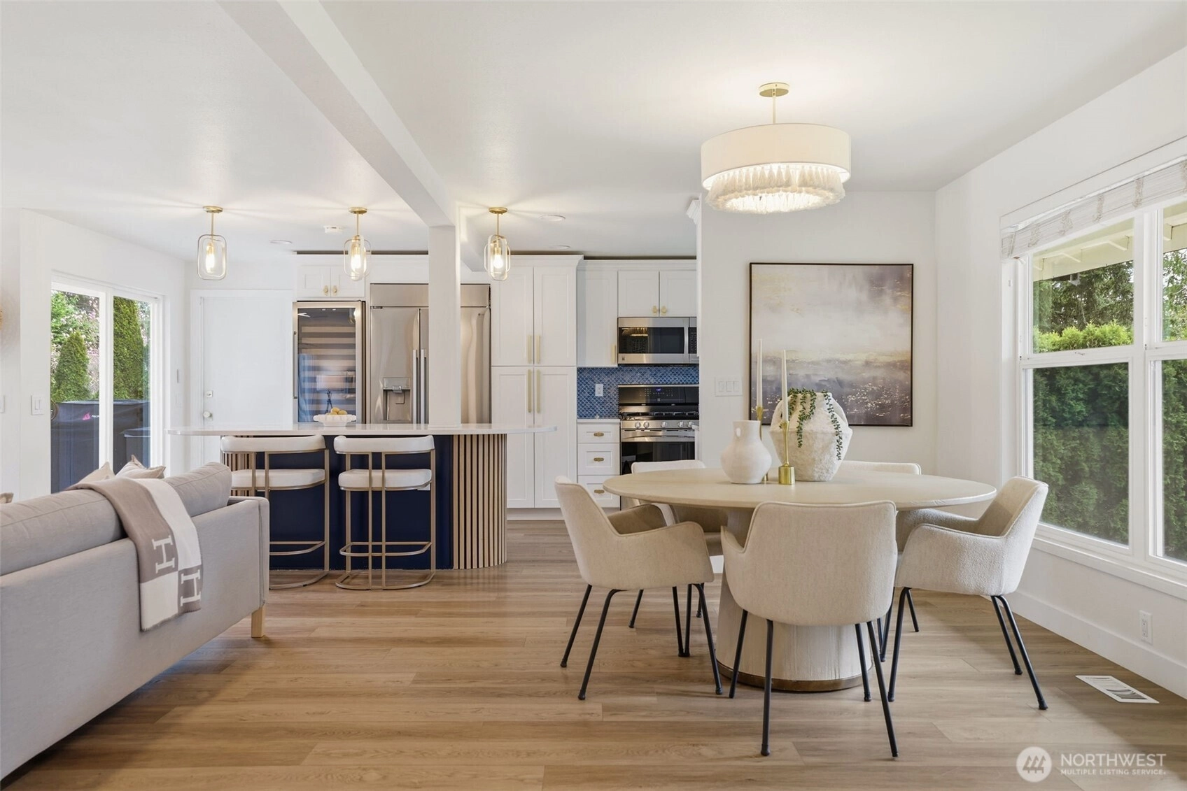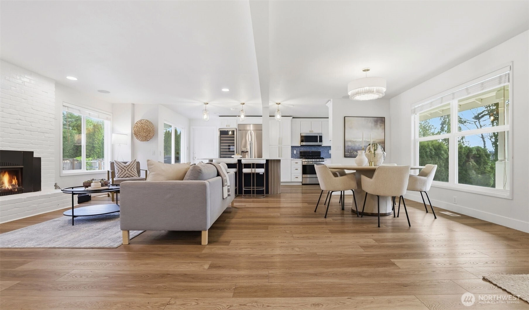 Step inside to a beautifully updated main level designed for modern living and effortless entertaining on a spacious 17,700sq ft lot. The renovated kitchen anchors the home with fresh finishes and great flow, complemented by new flooring throughout and integrated ceiling speakers on both levels and outdoors. A main-level flex room adds versatility—ideal as a guest room, office, or home gym. Upstairs, you’ll find 4 bedrooms, including a serene primary suite with a fully updated, light-filled bath enhanced by new skylights. Every bathroom has been stylishly remodeled, creating a cohesive, modern feel throughout the home. Over $350K in thoughtful upgrades elevate the property: new roof, gutters, exterior paint, garage doors, updated electrical panel, and added A/C for year-round comfort. And then… the backyard. A true showstopper and entertainer’s dream. Fully fenced, flat, and completely reimagined with turf, a sport court, putting green, spacious patio, grilling area, and outdoor kitchen. New irrigation and landscape lighting add both function and ambiance. Located on a quiet, walkable street near Medina Park, Medina Elementary, the beach, and Overlake Country Club—within the award-winning Bellevue School District. Turnkey, stylish, and ready for modern living.