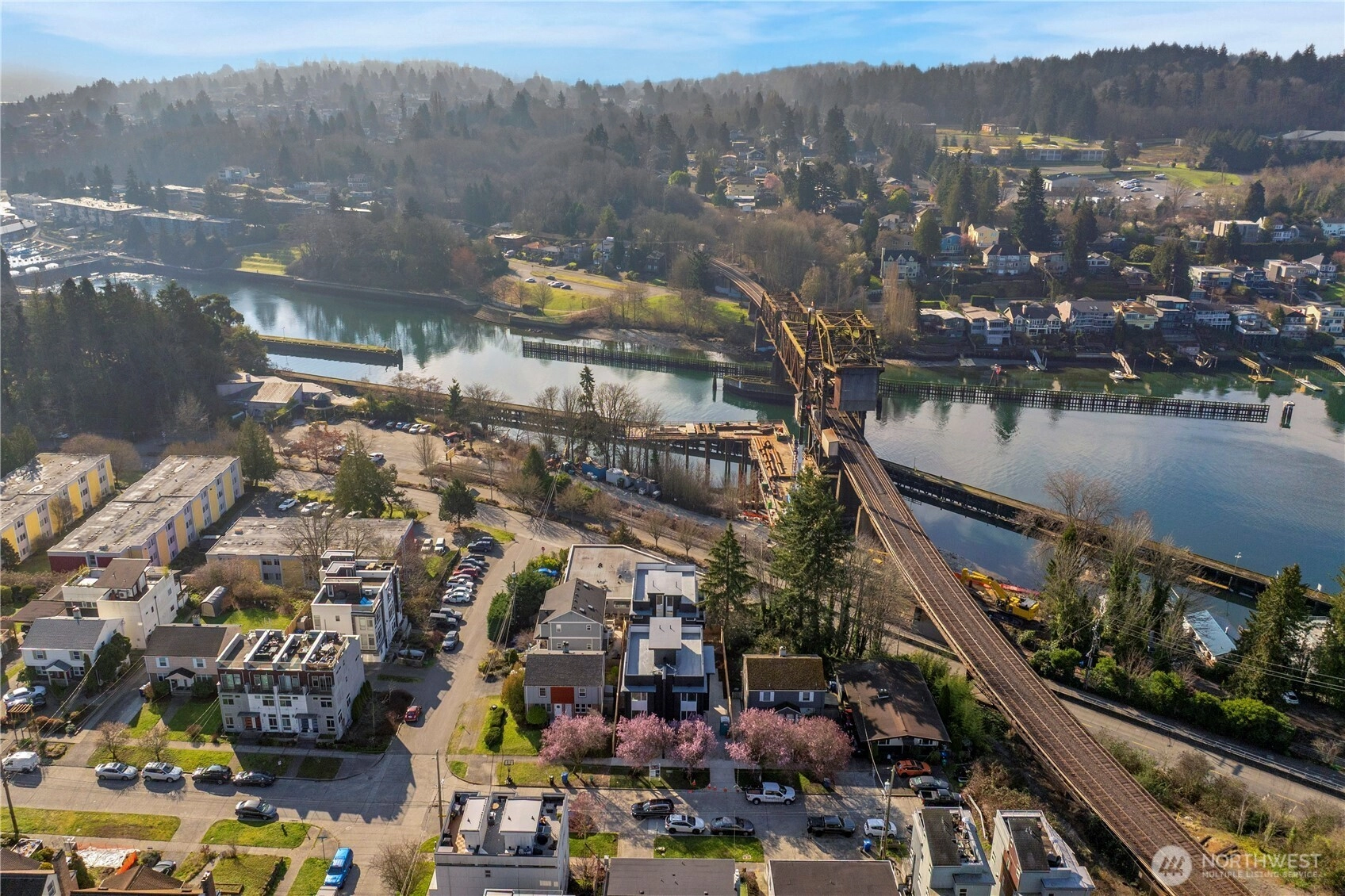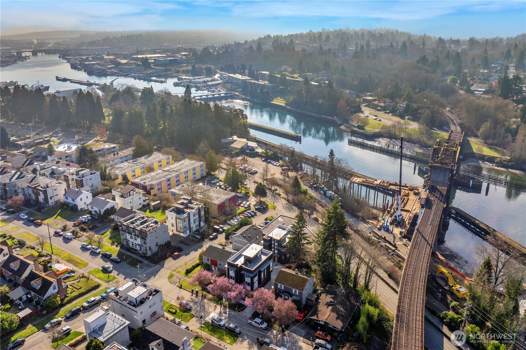 Welcome to Aria, a boutique collection by Greencity Homes ideally positioned on a peaceful dead-end street just moments from the Burke-Gilman Trail, waterfront & the iconic Hiram M. Chittenden Locks. This one-of-a-kind corner home lives like a single-family, offering an expansive open-concept layout designed for effortless living & elevated entertaining. EV-READY PARKING INCLUDED. Wrapped in windows, the home is filled w/natural light, highlighting thoughtfully curated finishes, clean architectural lines & a refined modern aesthetic. Enjoy year-round comfort w/a rare mini-split system providing efficient heating & A/C on every level! All bedrooms located on the upper levels, including a truly expansive top-floor primary suite featuring two walk-in closets & a spa-inspired bath. Private rooftop deck provides a serene escape with water views. Set in one of Seattle’s most coveted pockets, Aria offers unmatched access to Ballard’s best—stroll to the waterfront, enjoy Ballard Ave, or explore favorites like The Walrus and the Carpenter & Ray’s Boathouse.