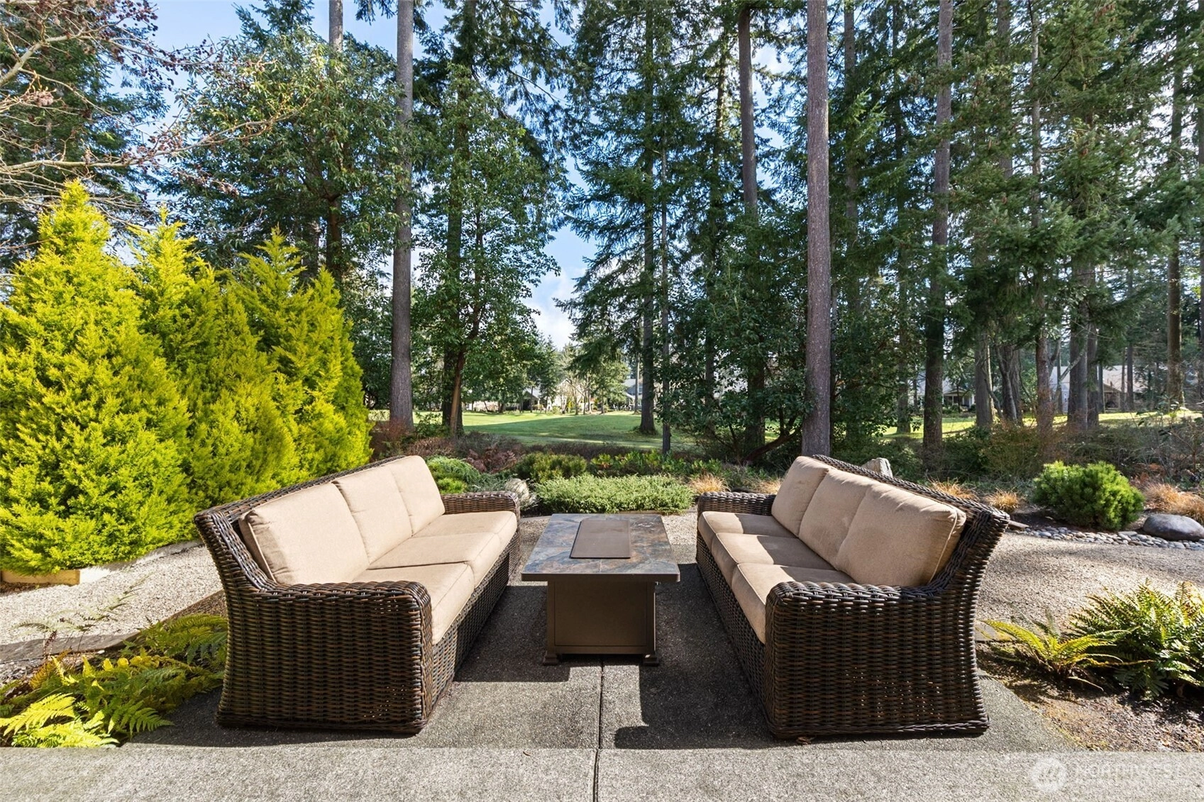 Canyon floorplan • Premium lot on 17th fairway of The Woodlands Golf Course • Main floor living • Wired for 220V EV charger. . . Elegant Canyon floorplan set on the 17th fairway of The Woodlands Golf Course. This well-maintained home offers comfortable main-floor living with open concept design, vaulted ceilings, wood-wrapped windows, and a gas fireplace that anchors the living room with large windows bringing in lots of natural light and framing dramatic golf-course views. The kitchen features quartz countertops, under-cabinet lighting, gas range with double ovens, a walk-in pantry with automatic lighting, and a refrigerator replaced two years ago. Storage under the stairs and quality finishes throughout reflect thoughtful design and care. The primary suite is conveniently located on the main level and includes a private en-suite bath with soaking tub, double sink vanity, and separate shower. Two additional bedrooms are positioned upstairs. Upgrades include wiring for 220V electric vehicle charger, under-cabinet lighting in the laundry room, updated exterior paint completed 2 years ago. The backyard offers a generous covered patio, bubbler granite fountain, sprinkler system for lawn & gardens, and peaceful golf-course setting. The garage provides a built-in sink, shelving, & workbench. Nearby Amenity List: The Woodlands Golf Course – adjacent Meridian Neighborhood Park – 0.5 mi Wonderwood Park – 0.8 mi I-5 Access – 2.0 mi Hawks Prairie Shopping Center – 2.4 mi