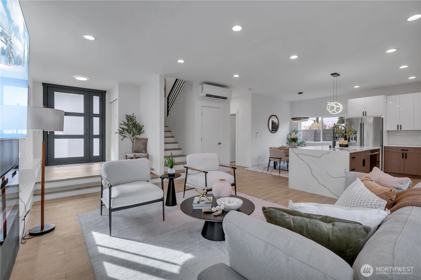 Stunning 2026 new construction in Upper Rainier Beach offering just shy of 2,500 sq ft and approximately 800 sq ft rooftop deck with sweeping Lake Washington views. This 5 bedroom, 3 bathroom home includes a dedicated office, two bonus rooms, and bright open-concept living designed for today’s lifestyle. The designer kitchen features quartz countertops, stainless steel appliances, and a premium induction oven, complemented by modern finishes throughout. Enjoy year-round comfort with an energy-efficient mini-split heating & A/C system, along with custom California Closets for added functionality and style. A rare blend of space, flexibility, and view-driven living — must see!