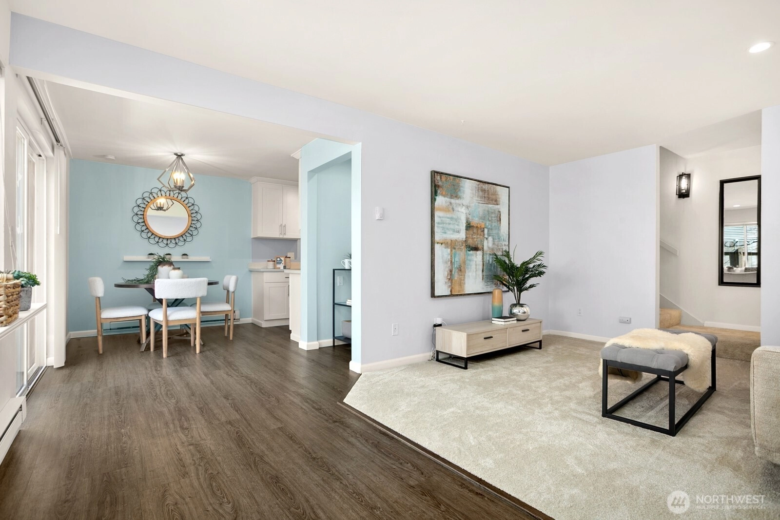 Welcome home to Newport Hills Townhomes! This fabulous western-facing townhome is move-in ready/w brand-new carpets & updated Kitchen/w Quartz counter tops and newer cabinets. The main floor’s open feel has wall of windows that invite the afternoon sun. Upstairs, you’ll find two oversized bedrooms providing a quiet retreat. Spend your summer evenings grilling on your private fenced patio or lounging by the complex pool. HOA dues cover water/sewer/garbage. Great Schools of Tyee middle & Newport High. Convenient to shops, restaurants, downtown Bellevue. Walk to Newport Hills Swim & Tennis Club with pools, tennis and Pickleball courts, Gym with affordable membership. Ample guest parking
