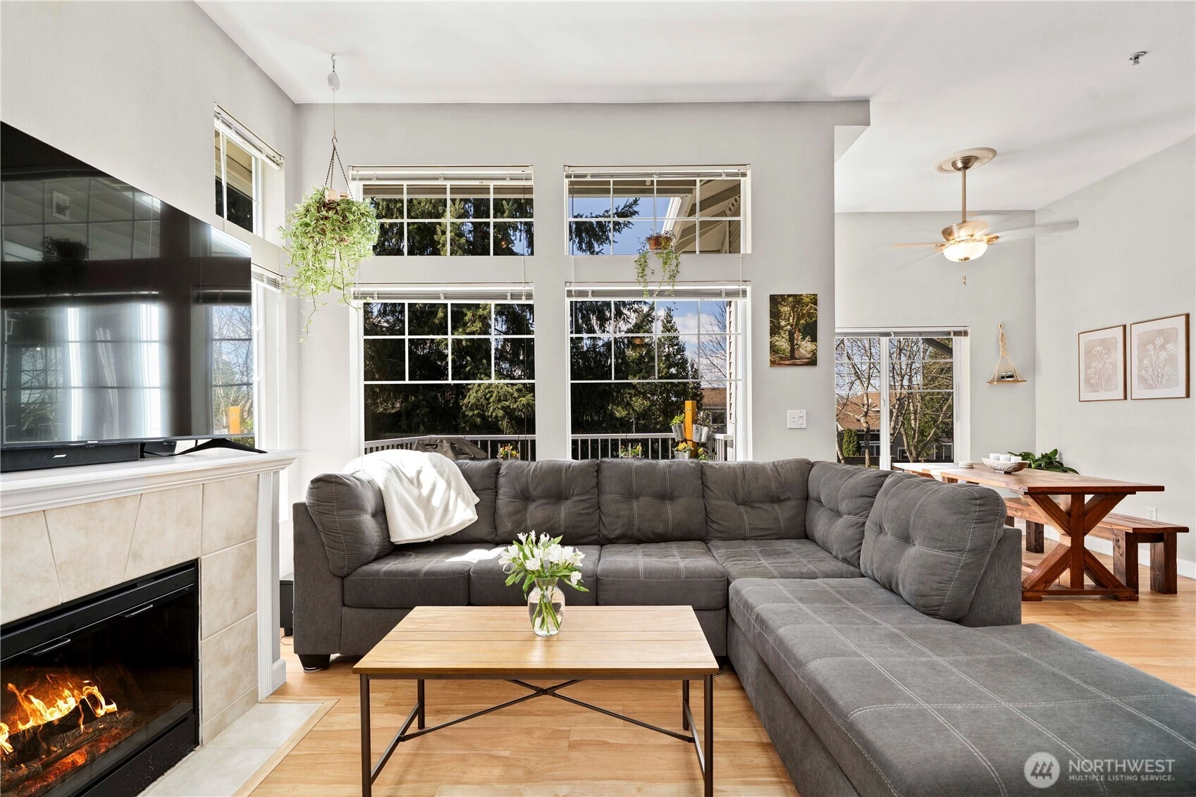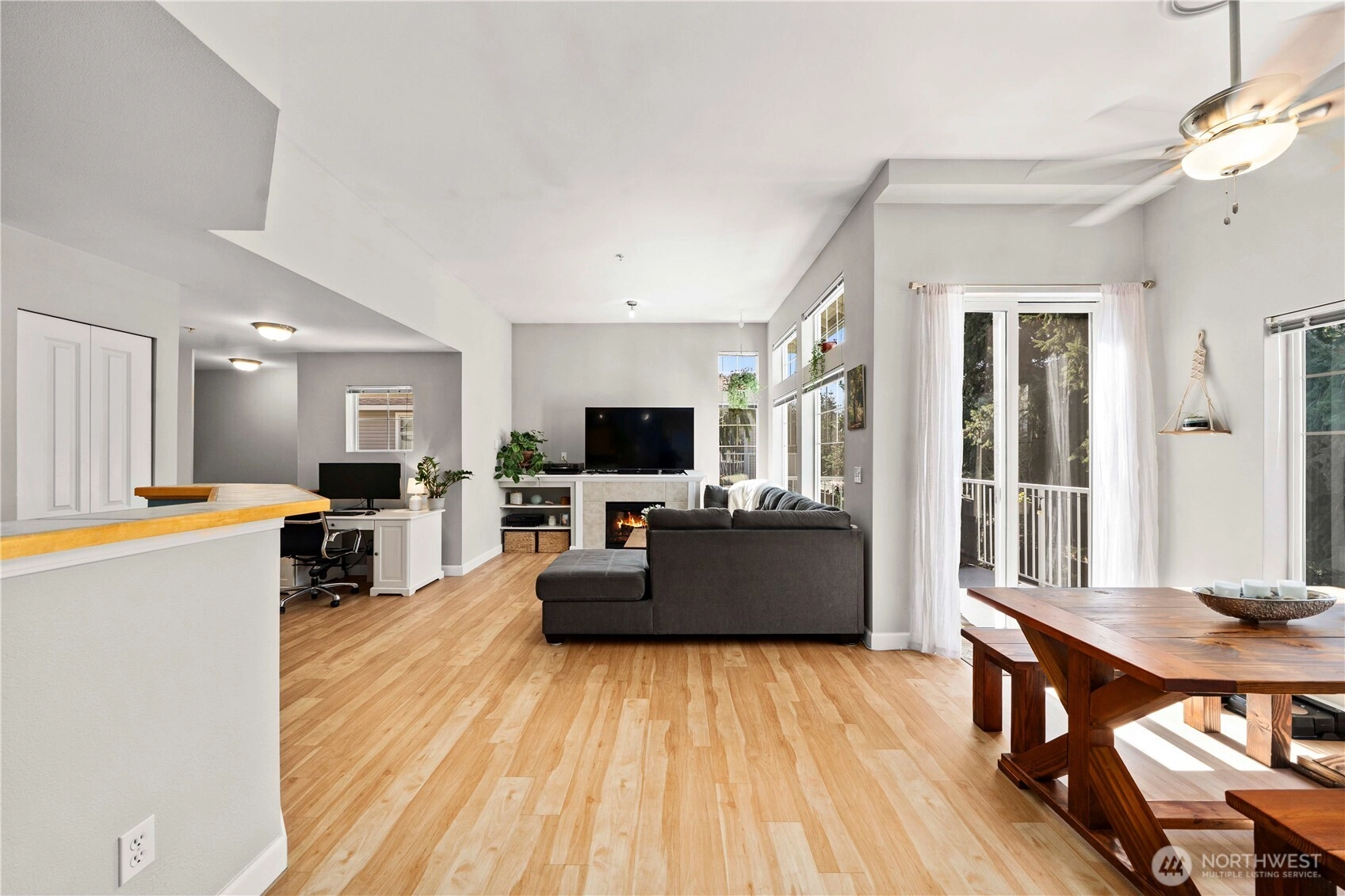 Meticulously maintained and ideally located in the desirable Lakeland Hills community, this beautifully appointed condo offers comfort, convenience, and an inviting open layout filled with natural light. The spacious living area is anchored by a charming gas fireplace with custom built-ins, creating a warm and stylish focal point for everyday living. The kitchen overlooks the living and dining spaces, making it perfect for entertaining and effortless day-to-day living.The generous primary suite provides a relaxing retreat with a walk-in closet, dual sinks, and a large soaking tub. Additional highlights include vaulted ceilings, LVP flooring, a private balcony, and all appliances included for a truly move-in ready opportunity. The oversized attached one-car garage offers ample storage space, adding both function and convenience.Enjoy all that Lakeland Hills has to offer, including nearby parks, walking trails, shopping, and restaurants, with easy access to major freeways for commuting.