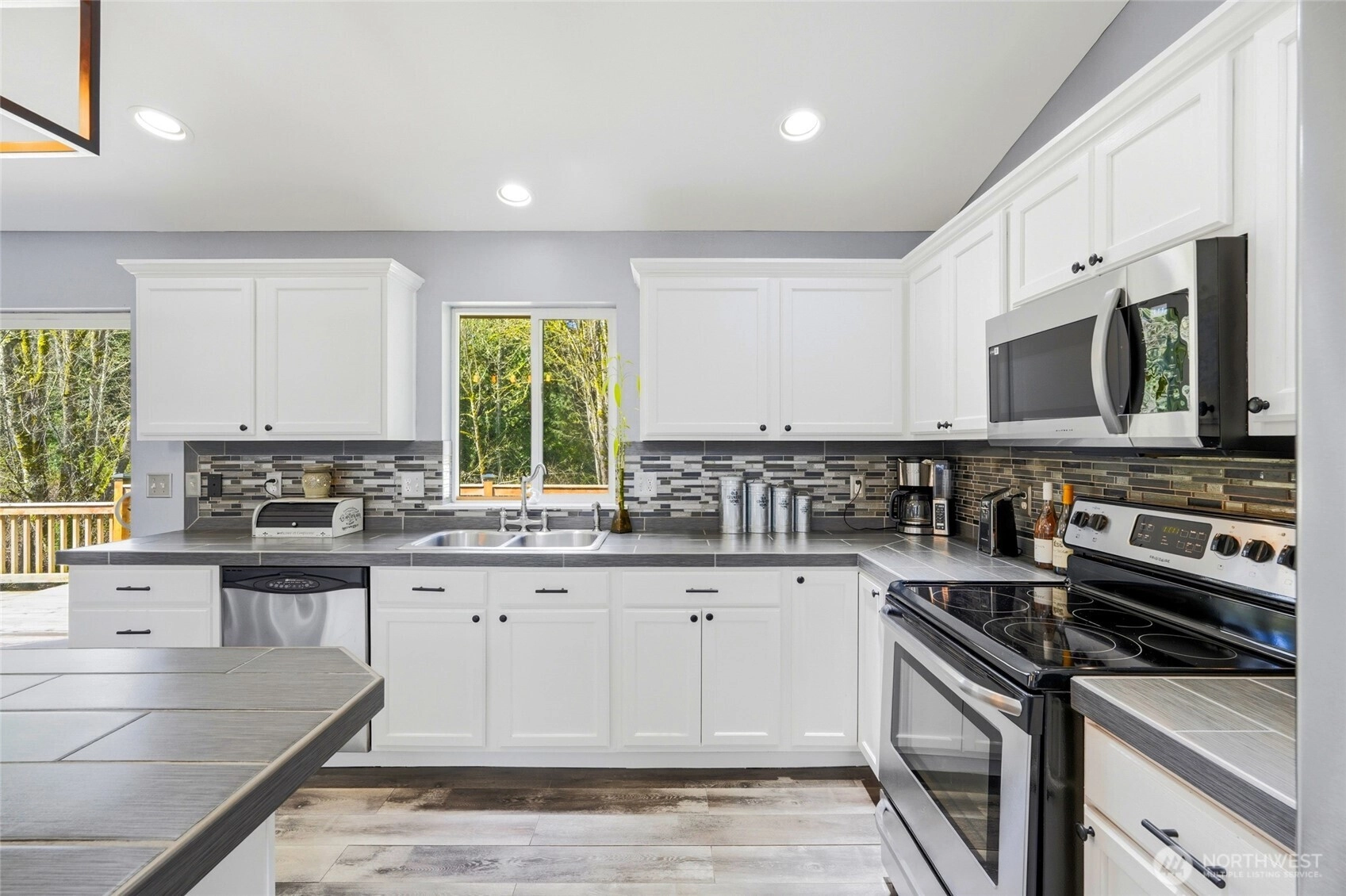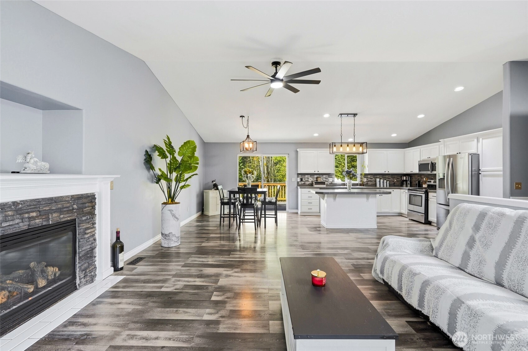 Welcome to your private retreat on 2.29 acres—where modern updates meet space, flexibility, and value. This beautifully renovated split-level home offers an open, light-filled floor plan designed for both everyday living and effortless entertaining. The updated kitchen shines with stainless steel appliances, stylish finishes, and a seamless flow into the spacious living and dining areas. LVP floors, Fresh paint, new trim, and thoughtfully renovated bathrooms create a move-in ready experience, while stunning rock fireplaces add warmth and character throughout. With 4 spacious bedrooms and a versatile layout, this home is ideal for multi-generational living, guests, or flexible work-from-home options. Step outside to enjoy the brick patio, large entertaining deck overlooking your expansive acreage, and peaceful surroundings—perfect for relaxing or hosting gatherings. Bring your toys and your vision—there’s ample RV parking and plenty of room to build a shop, DADU, or both. If you’ve been searching for acreage, privacy, and a fully updated home at an approachable price point, this is the opportunity you’ve been waiting for. Pride of ownership shines in every detail—come see it for yourself!