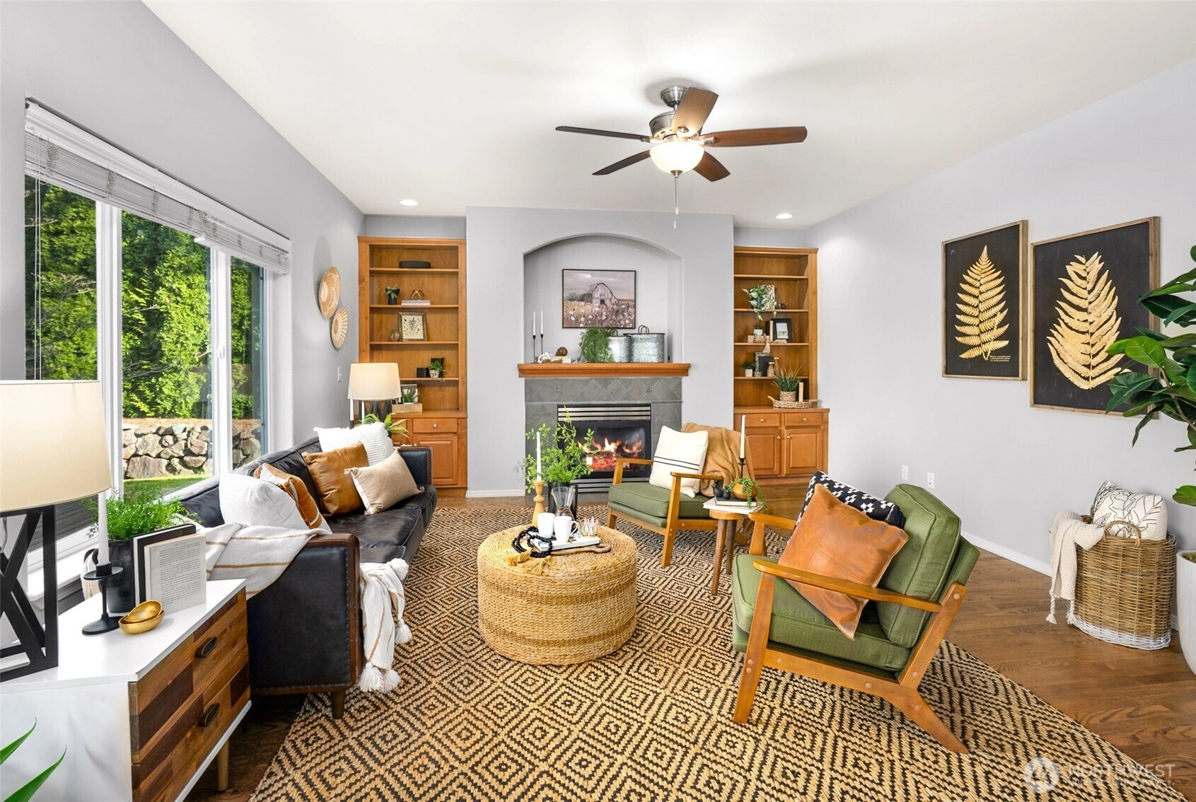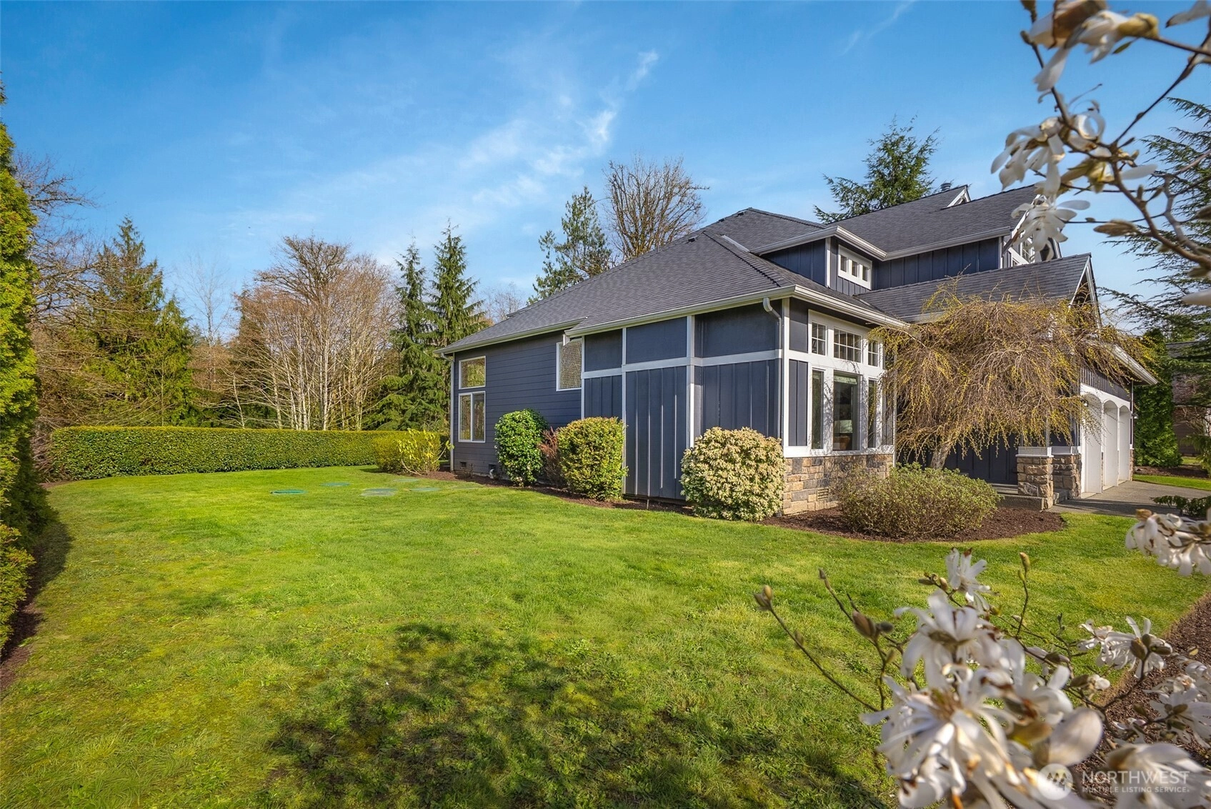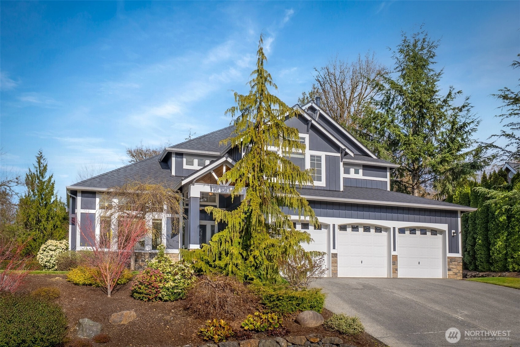 Tucked within Storm Lake Heights, this traditional Snohomish home is set between PNW beauty and nearby local lakes, offering privacy and tranquility while keeping daily conveniences within reach. A welcoming entryway with soaring ceilings sets the tone, leading into a formal living room anchored by oversized windows. The kitchen provides generous storage, new appliances, and space for everyday moments, with a sunny dining nook for casual meals and a separate dining room ready for gatherings and celebrations. A second living room features built-in storage, a fireplace, and easy access to the backyard patio for seamless indoor-outdoor living. The main level also includes a versatile bedroom near a ¾ bath, ideal for a home office or multigenerational living. A well-equipped laundry room with direct access to the three-car garage rounds out the main floor. Upstairs, the spacious primary suite offers vaulted ceilings, large windows, a cozy fireplace, and a walk-in closet, along with a bright ensuite featuring a soaking tub, perfectly positioned next to the dual-sided fireplace, walk-in shower, and a double vanity. Three additional bedrooms, each with walk-in closets, and a full bathroom complete the upper level, providing room to grow and settle in comfortably.