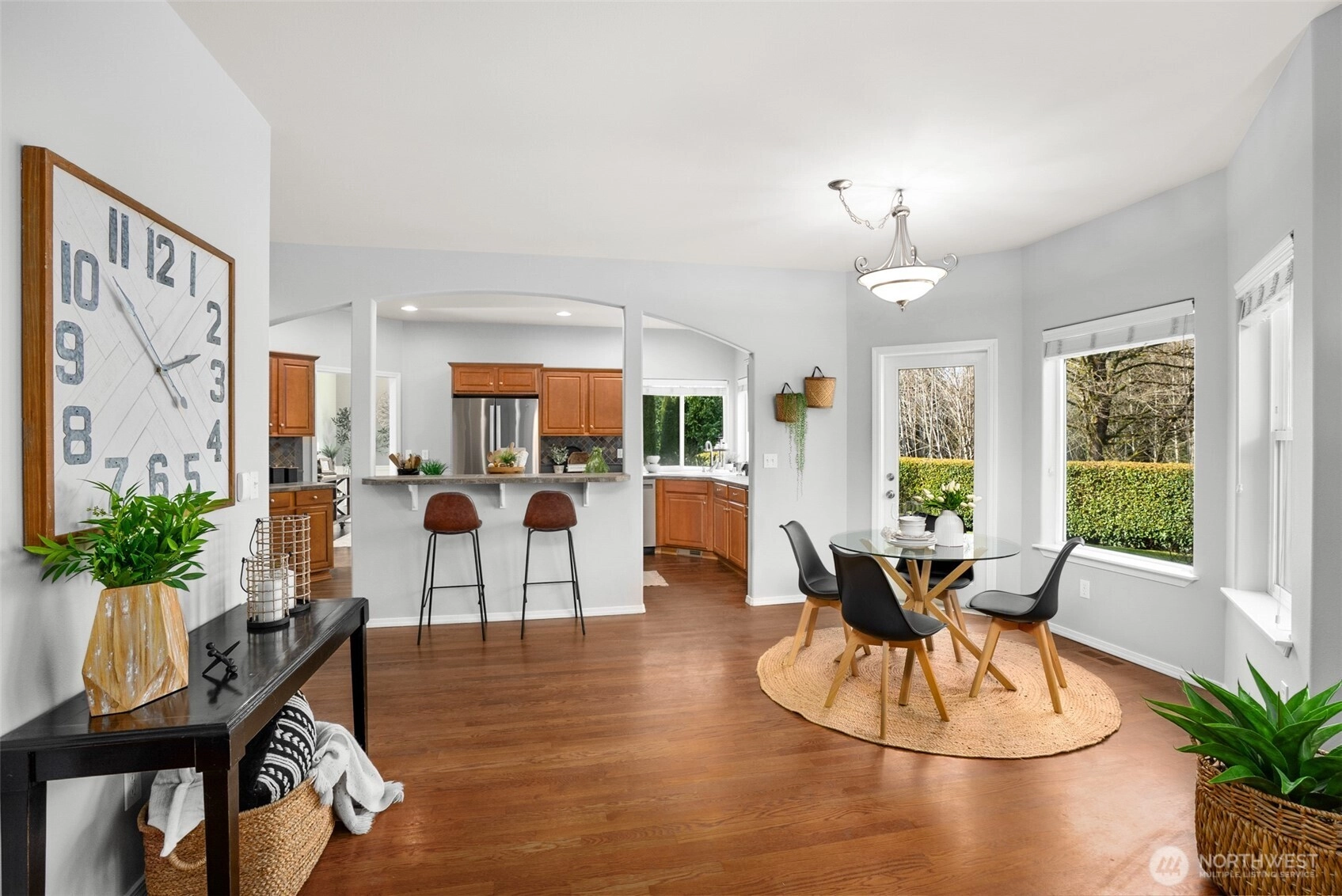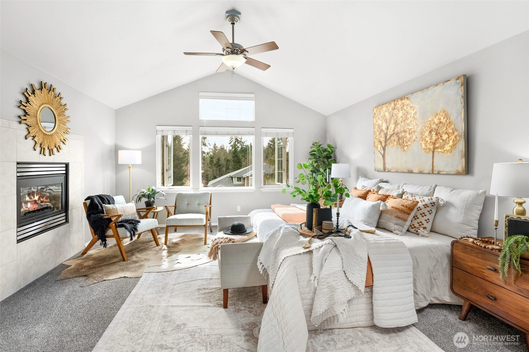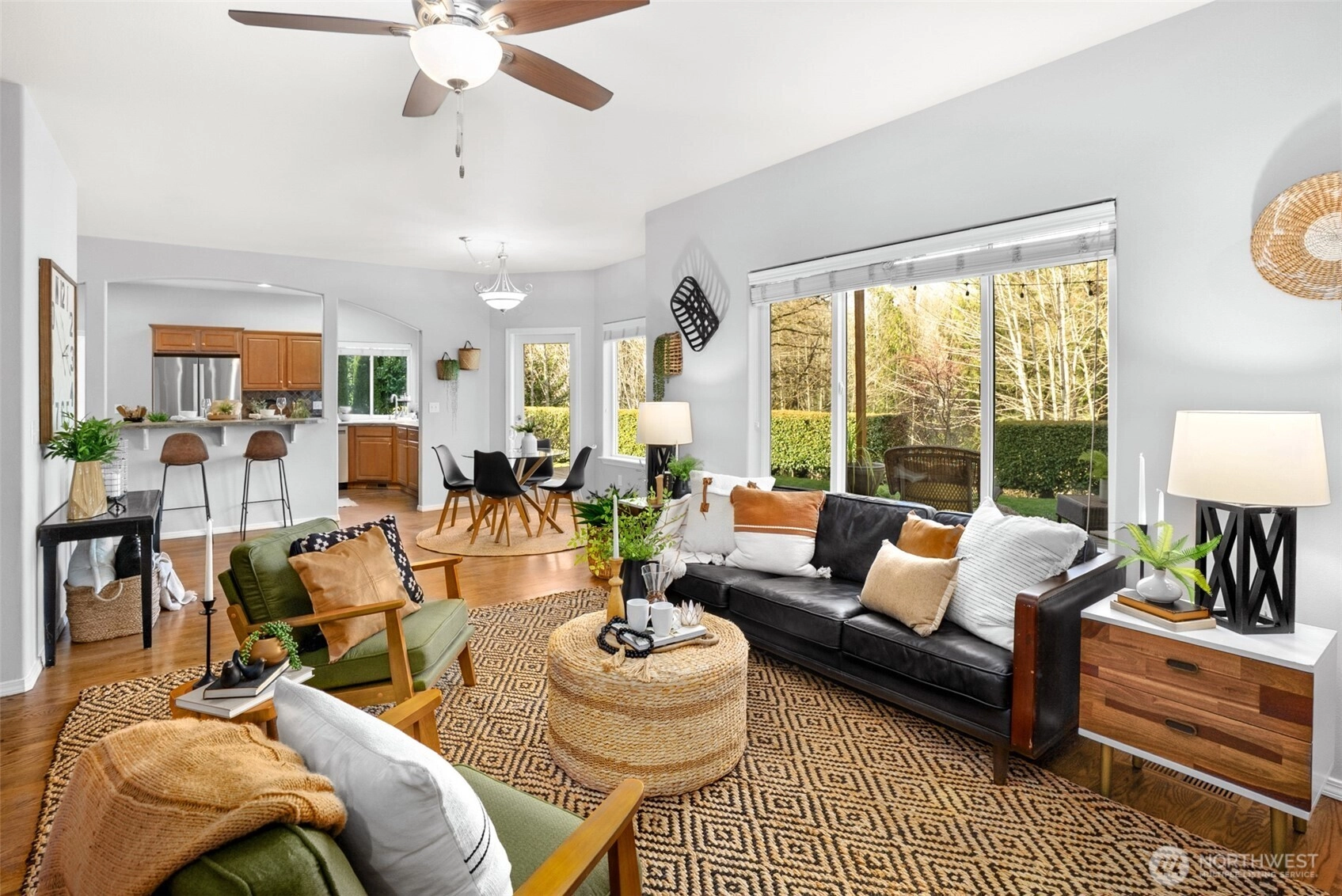 Tucked within Storm Lake Heights, this traditional Snohomish home is set between PNW beauty and nearby local lakes, offering privacy and tranquility while keeping daily conveniences within reach. A welcoming entryway with soaring ceilings sets the tone, leading into a formal living room anchored by oversized windows. The kitchen provides generous storage, new appliances, and space for everyday moments, with a sunny dining nook for casual meals and a separate dining room ready for gatherings and celebrations. A second living room features built-in storage, a fireplace, and easy access to the backyard patio for seamless indoor-outdoor living. The main level also includes a versatile bedroom near a ¾ bath, ideal for a home office or multigenerational living. A well-equipped laundry room with direct access to the three-car garage rounds out the main floor. Upstairs, the spacious primary suite offers vaulted ceilings, large windows, a cozy fireplace, and a walk-in closet, along with a bright ensuite featuring a soaking tub, perfectly positioned next to the dual-sided fireplace, walk-in shower, and a double vanity. Three additional bedrooms, each with walk-in closets, and a full bathroom complete the upper level, providing room to grow and settle in comfortably.