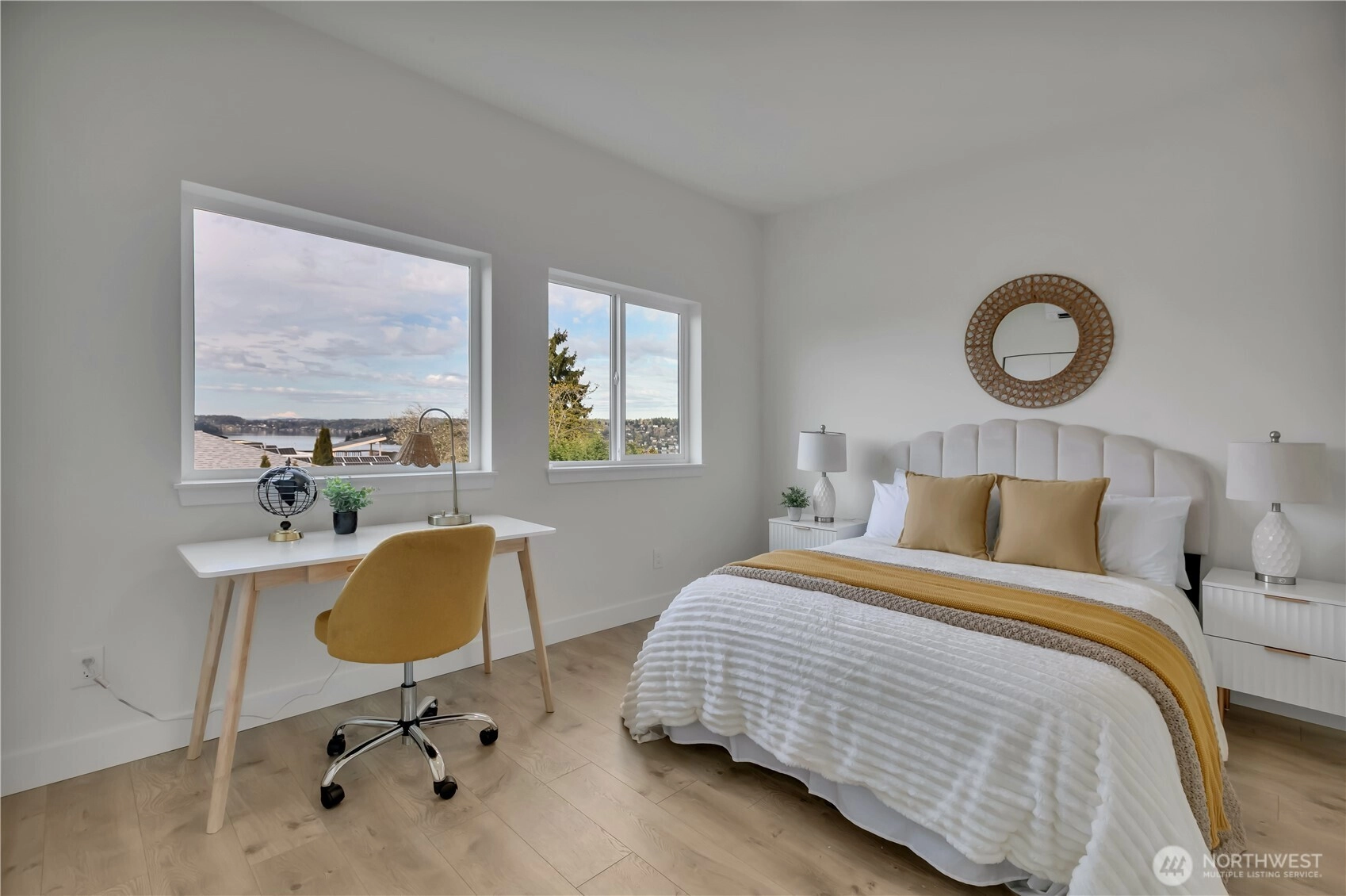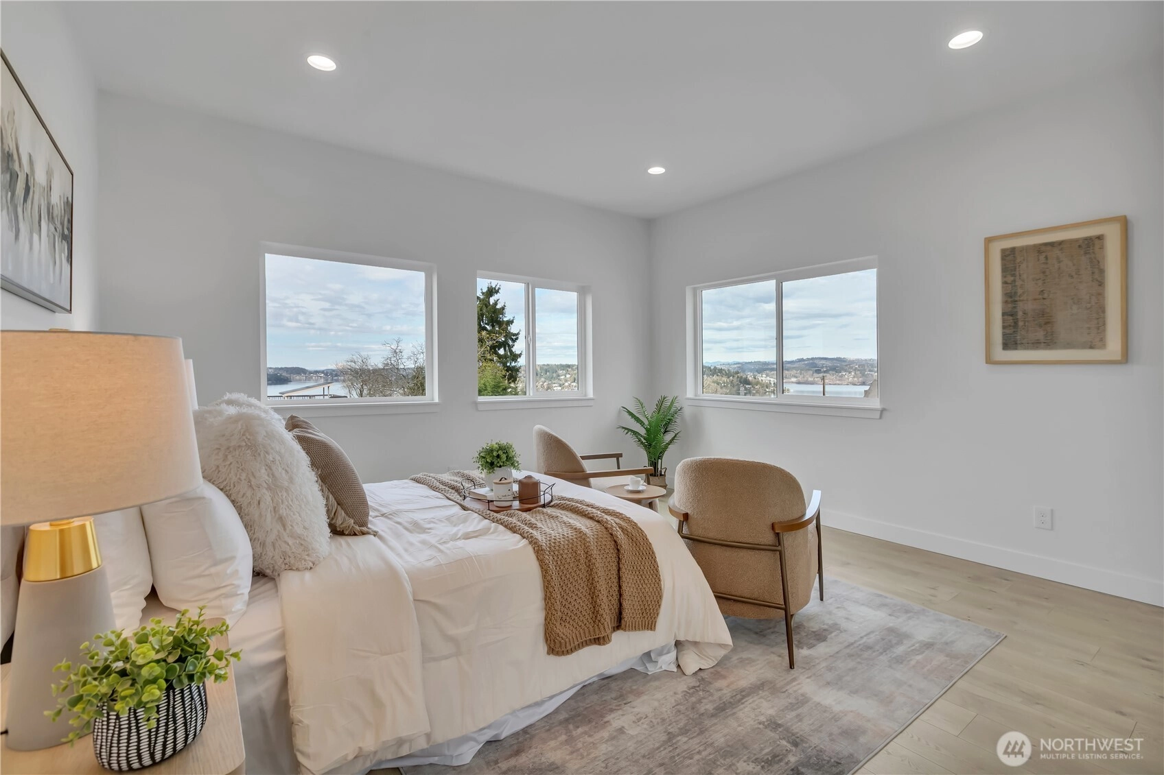 Stunning 2026 new construction in Upper Rainier Beach offering just shy of 2,500 sq ft and approximately 800 sq ft rooftop deck with sweeping Lake Washington views. This 5 bedroom, 3 bathroom home includes a dedicated office, two bonus rooms, and bright open-concept living designed for today’s lifestyle. The designer kitchen features quartz countertops, stainless steel appliances, and a premium induction oven, complemented by modern finishes throughout. Enjoy year-round comfort with an energy-efficient mini-split heating & A/C system, along with custom California Closets for added functionality and style. A rare blend of space, flexibility, and view-driven living — must see!