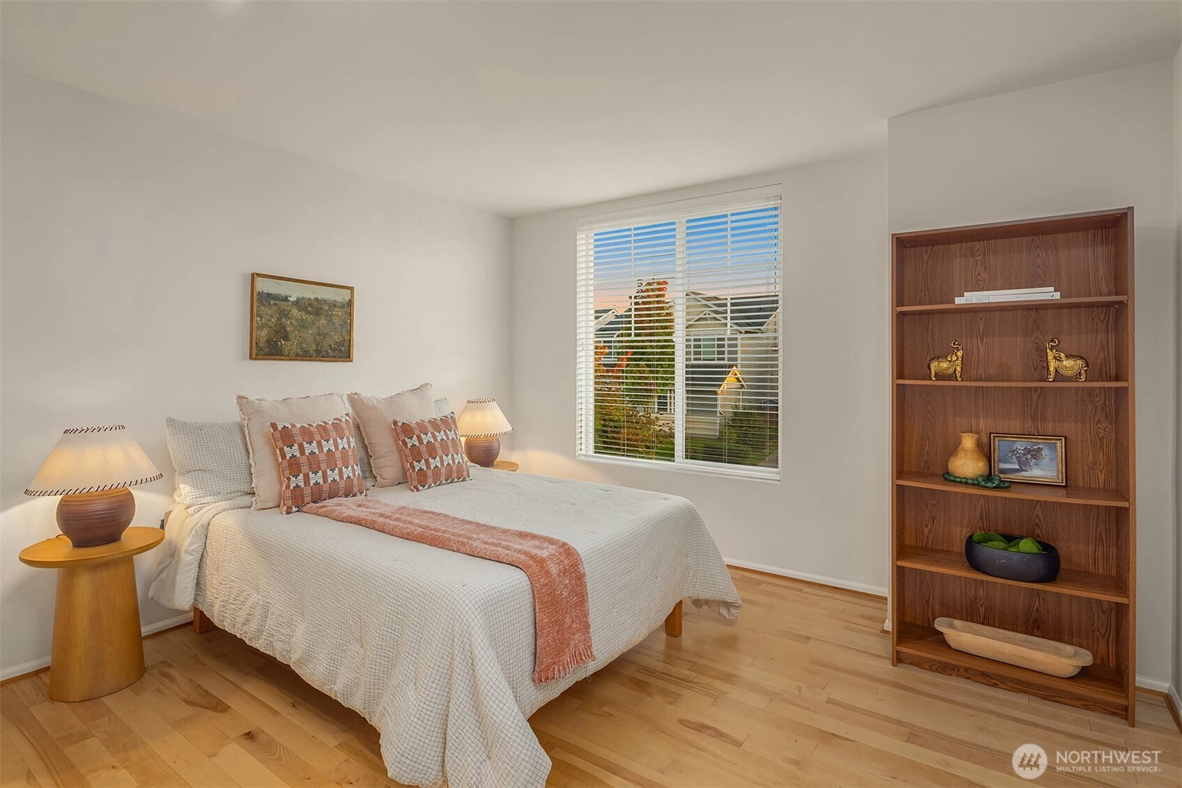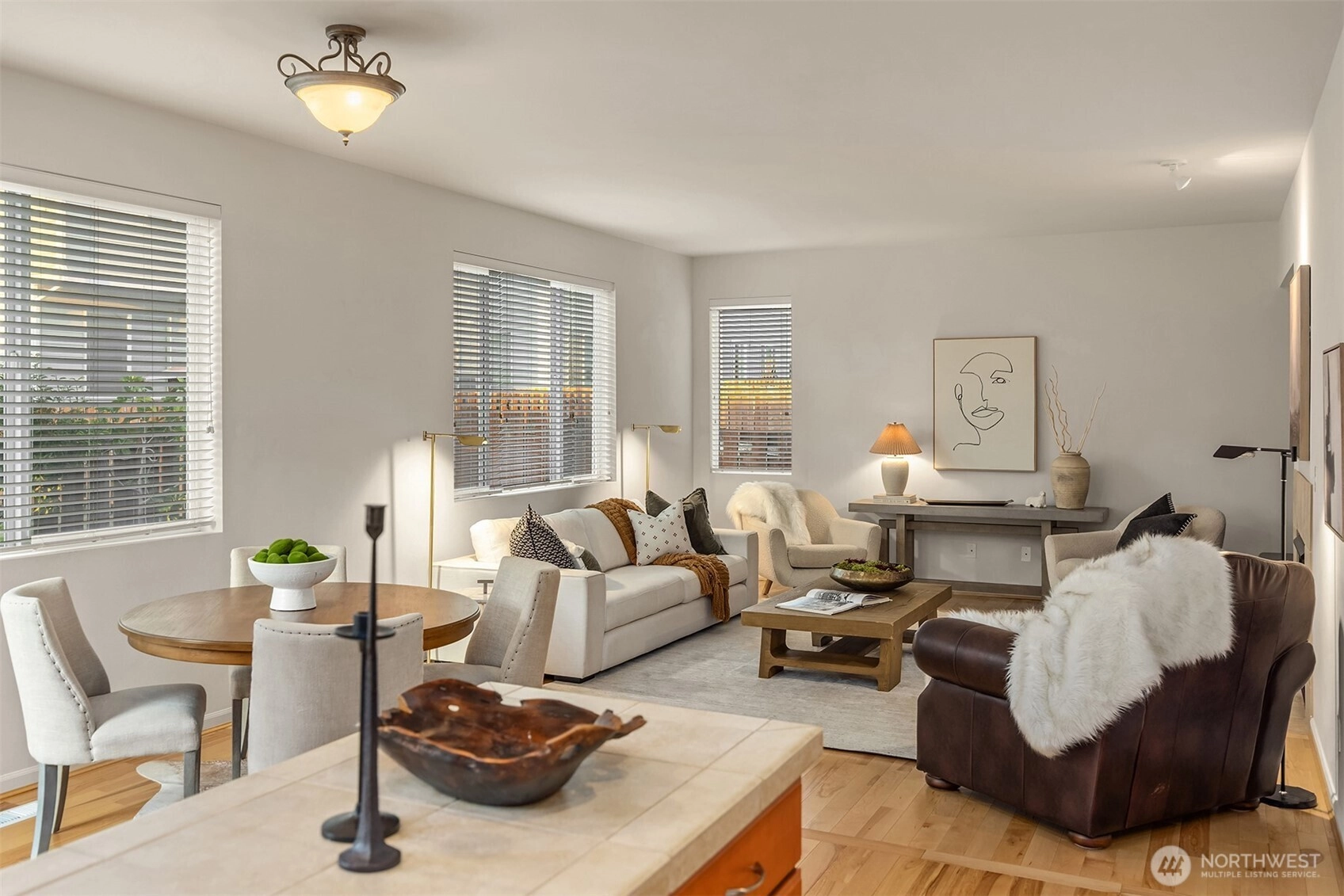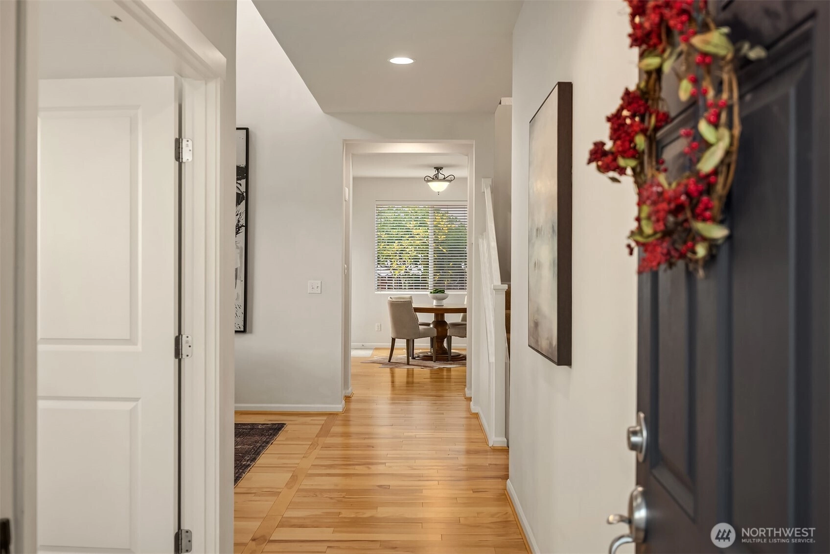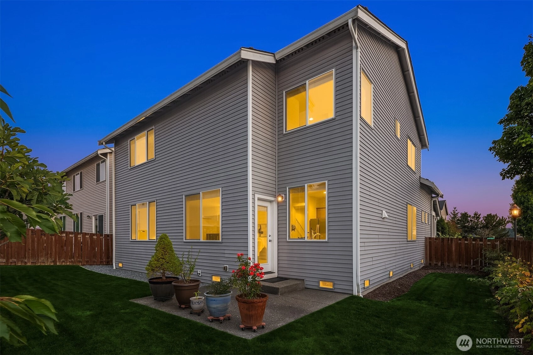 Sunny and move-in ready, this corner-lot gem in Lakeland shows true pride of ownership. Soaring ceilings and a bright dining room set the tone, flowing to a vaulted office and gourmet kitchen with wood cabinetry, island seating, and stainless appliances. The living room shines with hardwood floors, a gas fireplace, and custom niche. Upstairs, retreat to the vaulted primary suite with spa-like 5-piece bath, plus two spacious bedrooms and a full bath. A fenced yard with lush landscaping and sunlit patio completes this thoughtfully maintained home—just minutes to schools (Dieringer!), parks, dining, and shopping.