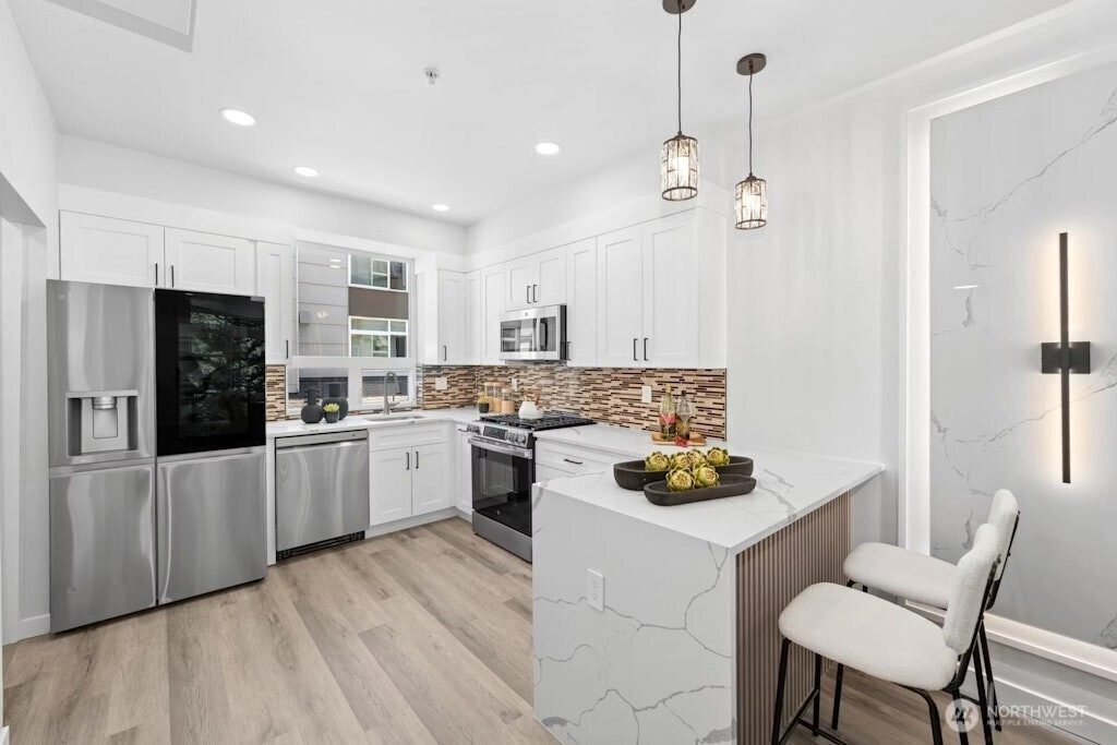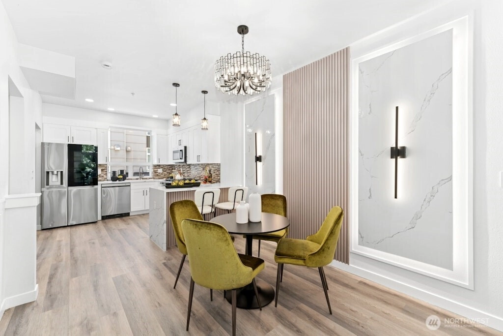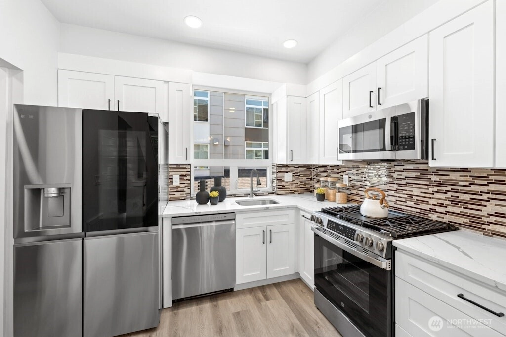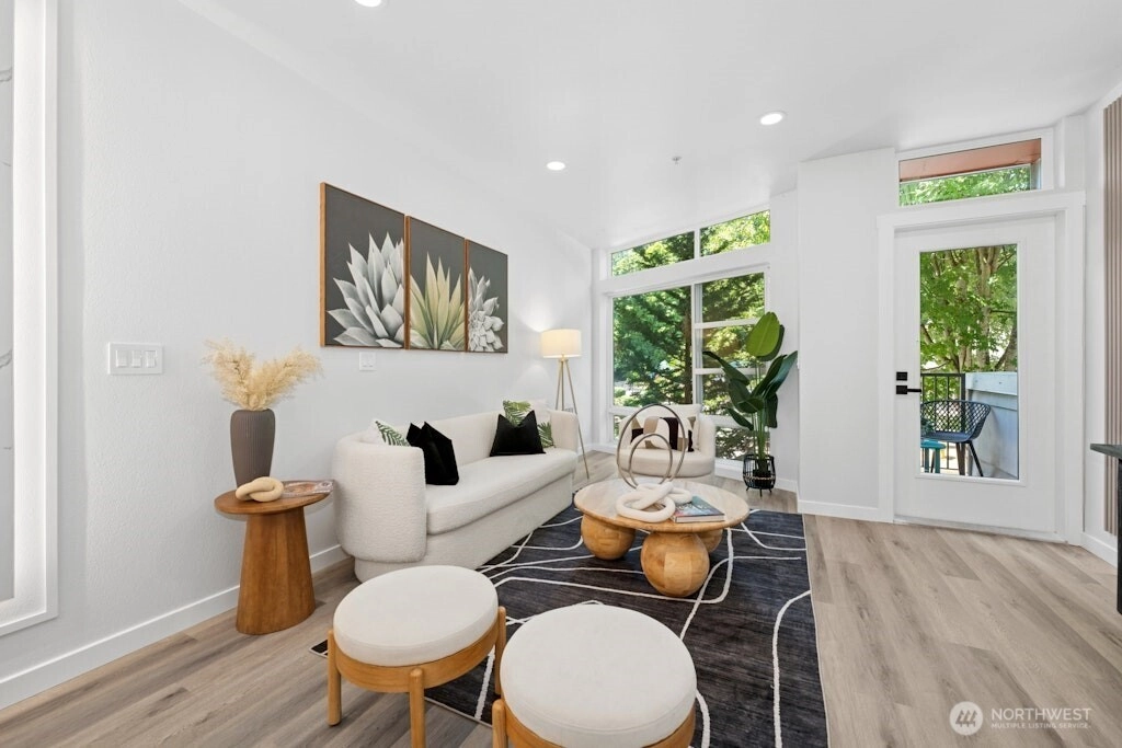 Excellent location and modern design in this beautifully remodeled home at Element. This contemporary residence features soaring ceilings, expansive windows, and sleek finishes throughout. The open-concept main level includes a stylish, fully updated kitchen with new appliances. Upstairs offers two spacious bedrooms and two bathrooms. The vaulted third-level loft with large windows is perfect for a home office, media room, or flex space. Like-new water heater, plus washer and dryer included. Close to Amazon, Meta, Microsoft, Google, Redmond Town Center, Marymoor Park, and more. Easy access to I-405 and SR-520. No rental cap and low HOA dues. Staging has been removed!