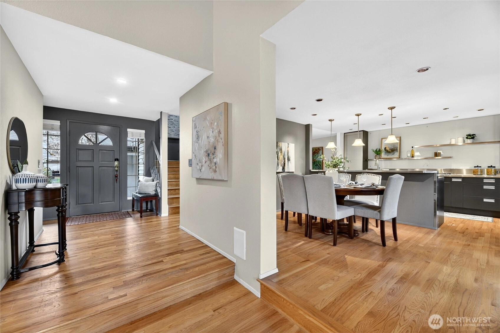 Elegant & impeccably maintained townhome nestled within sought-after Pembrook Meadows community in Bellevue’s desirable Newport Hills. Tucked away on a quiet cul-de-sac & surrounded by beautifully maintained grounds, this residence offers one of the community’s largest & most desirable floorplans with 1,860 SF of thoughtfully designed living space.The home welcomes you w/warm hardwood floors & a gracious sunken living room centered around a classic fireplace & framed by expansive windows that fill the space w/natural light. The beautifully updated chef’s kitchen features high-end appliances, modern cabinetry & generous workspace, creating a sophisticated setting for everyday living & entertaining. The kitchen flows seamlessly to the dining area & comfortable family room, while two sets of French doors open to a private patio & peaceful yard surrounded by mature landscaping—ideal for outdoor dining or relaxing evenings. Upstairs, the spacious primary suite offers vaulted ceilings & a serene retreat, complemented by a well-appointed bath with soaking tub & separate shower. A second bedroom & additional bath provide flexibility for guests or a home office. Residents enjoy resort-style amenities including clubhouse, heated pool, tennis & pickleball courts set in beautifully maintained community grounds. Detached two-car garage, driveway & guest parking nearby. Ideally located minutes to parks, shopping, dining, coffee shops & downtown Bellevue with easy access to I-405 & I-90.
