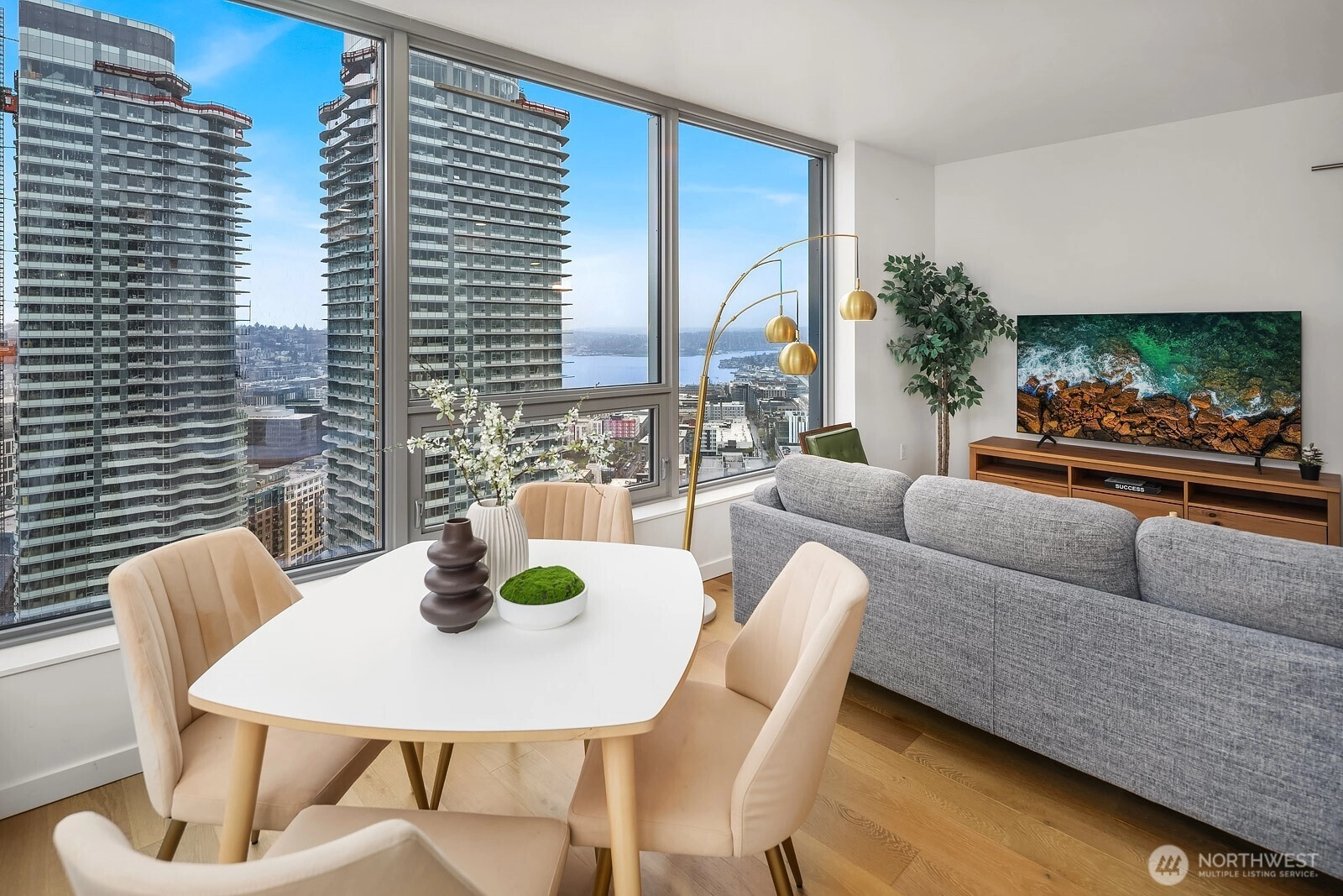 Experience the pinnacle of vertical living in Unit 3105 at NEXUS, the Denny Triangle’s premier high-tech landmark. Perched on the 31st floor, this sophisticated 2-bedroom, 2-bathroom residence offers a breathtaking trifecta of views: the shimmering Puget Sound, the serene Lake Union, and the vibrant Seattle skyline. Designed for the urban enthusiast, the open-concept layout features floor-to-ceiling glass and seamless smart-home integration. This lifestyle prioritizes ultimate convenience, including one designated parking spot and a private storage locker. Step outside to a commuter’s paradise near Amazon and Google, or stay in to enjoy world-class amenities like the 41st-floor Sky Club, Panoramic Rooftop Deck with a sky garden, gazebo and fire pits, Entertainment Spaces and Bsuiness Center. From 24/7 concierge service to sleek, modern finishes, Unit 3105 is a front-row seat to the future of Seattle. Live above the buzz in a home that perfectly blends luxury, technology, and panoramic natural beauty.