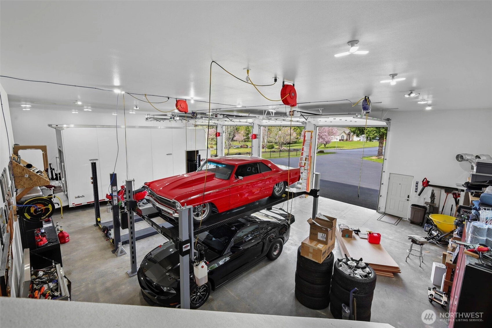Stunning custom-built rambler on Shy 2.5 flat, dry acres showcasing quality craftsmanship and thoughtful design throughout. Gourmet kitchen features custom cherry cabinets, travertine tile, granite countertops, large island, ample storage & SS appliances, opening to a spacious great room ideal for everyday living & entertaining. Abundance of oversized windows fills the home with natural light while highlighting extensive architectural detail. Luxurious primary suite offers elegant entry, dual walk-in closets, tiled walk-in shower w/dual shower heads & jetted soaking tub. Generous living spaces provide flexibility for guests, office or hobbies. Radiant heat and full house backup generator. Enjoy picturesque outdoor setting with lush, manicured landscaping, full-length covered patio, outdoor covered BBQ area with pizza oven & tranquil water feature, perfect for year-round enjoyment. Attached 3-car garage w/ workshop. Property also boasts an impressive 72x50 shop w/ 4 12x14 roll-up doors for inside RV storage with soaring 16’ ceilings, polished floors, fully finished and insulated, 110V & 220V power with full HVAC providing heat & A/C. Includes 8x32 loft for additional storage. Room for 14+ vehicles! Plenty of room for toys & additional RV w/ a very large, paved area in front of the newly built shop for equipment or potential home-based business. A rare opportunity combining comfort, functionality & versatility. On a dead-end road, in a private gated community...a must see!