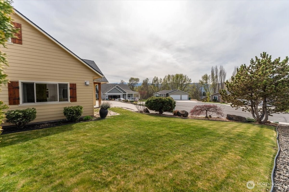 Tucked into a quiet cul-de-sac in East Wenatchee, this home offers a comfortable open layout where the kitchen, dining, and living spaces flow together with ease. The main-floor primary suite provides everyday convenience with a walk-in closet, spacious ¾ bath, and private access to the backyard patio. Upstairs, you’ll find a large bonus room, third bedroom, and additional ¾ bath—perfect for guests or flexible living.The backyard is thoughtfully designed with mature landscaping that creates a sense of privacy, along with raised garden beds, fruit trees, a built-in sprinkler system, and a custom rock waterfall feature. Additional highlights include granite kitchen counters, walk-in pantry, maple hardwood floors, propane fireplace, wide doorways and hallways, 10' x 12' Tuff Shed, and small RV parking. New roof in 2025.