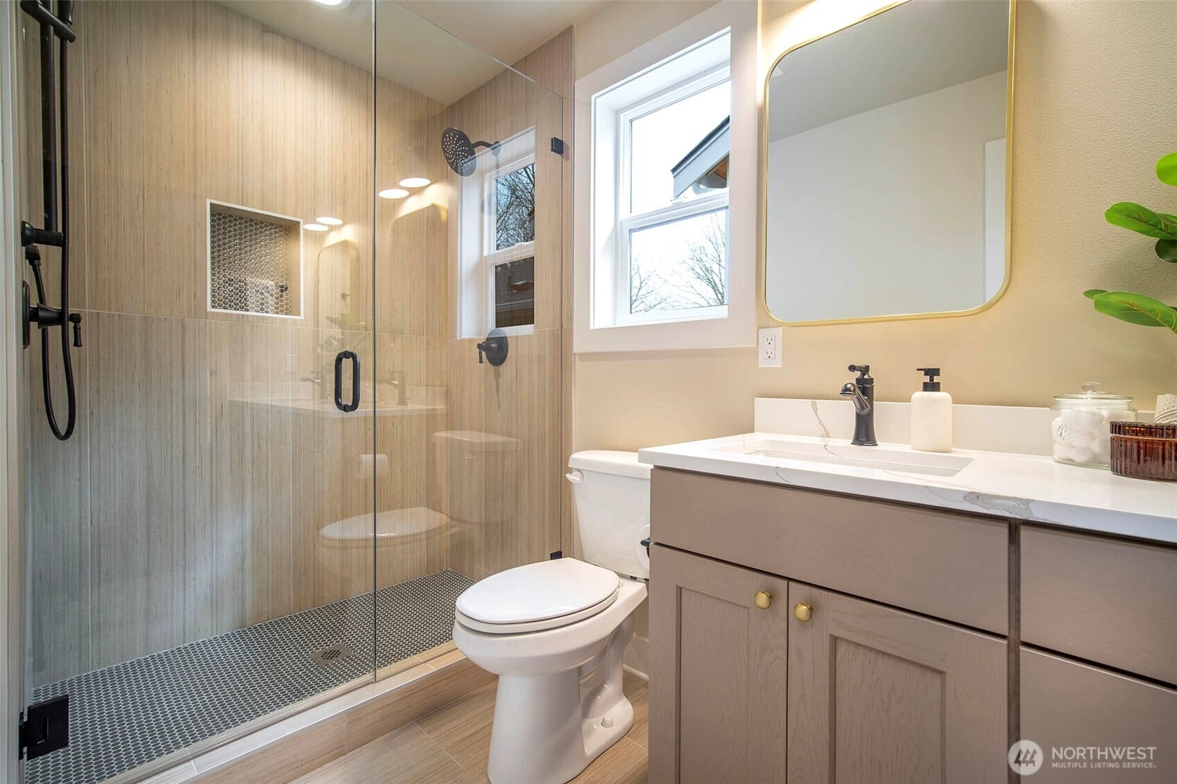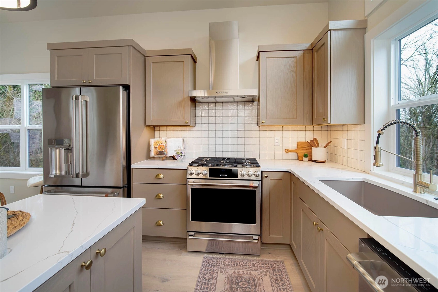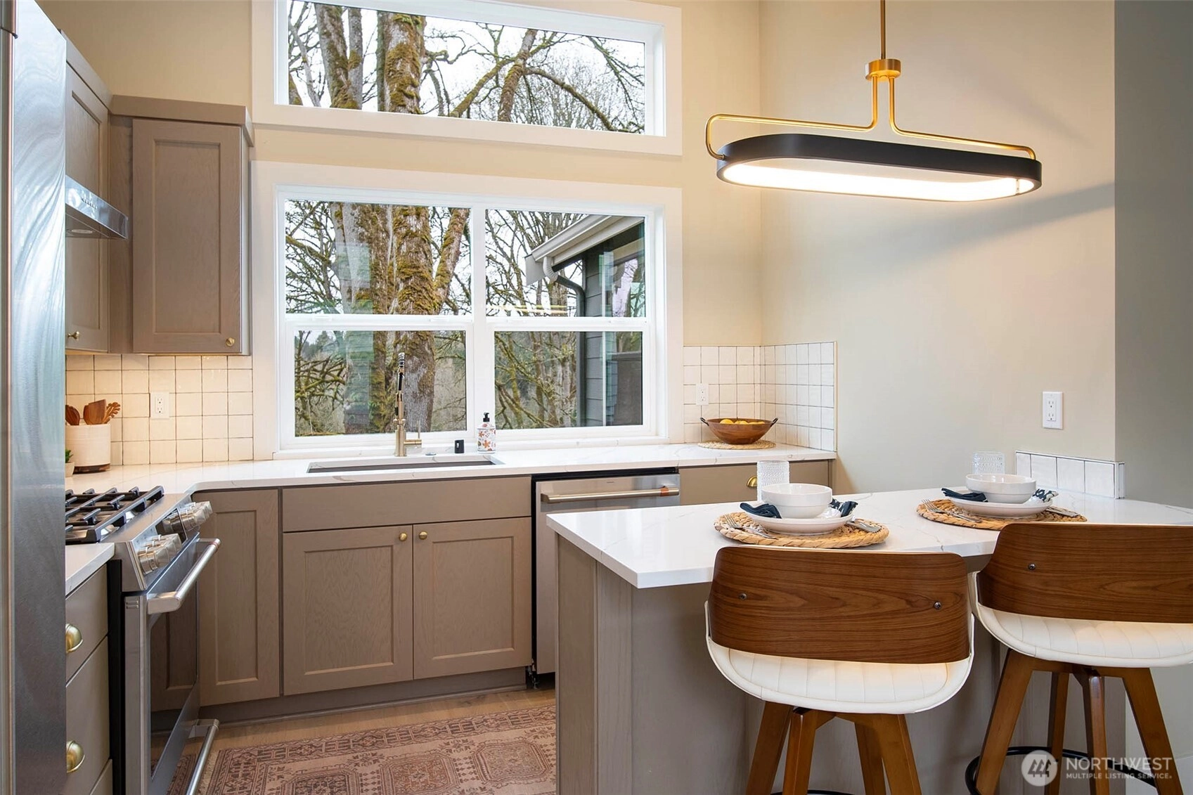WOW—FULLY FURNISHED MODEL HOME! Everything you see is included—just move right in! Welcome to Casolare, a collection of just 14 single-family homes in Kirkland’s highly sought-after East of Market neighborhood all backed to a serene greenbelt & Forbes Creek that provides stunning territorial views. The coveted Doe Bay floor plan features 3 bedrooms, 2.25 baths, and a detached one-car garage. A stunning chef’s kitchen anchors the home with a large island, quartz countertops, and a built-in oven—perfect for entertaining and everyday living. The spacious primary suite offers a walk-in closet and a sleek four-piece bath, with two additional bedrooms and a full bath providing flexibility for guests or work-from-home needs. Enjoy energy-efficient comfort with mini-split heating and cooling, EV-ready parking, and a fully fenced private yard. Tucked in a quiet, serene setting, Casolare delivers modern living at its best. This is a rare, turnkey opportunity.
