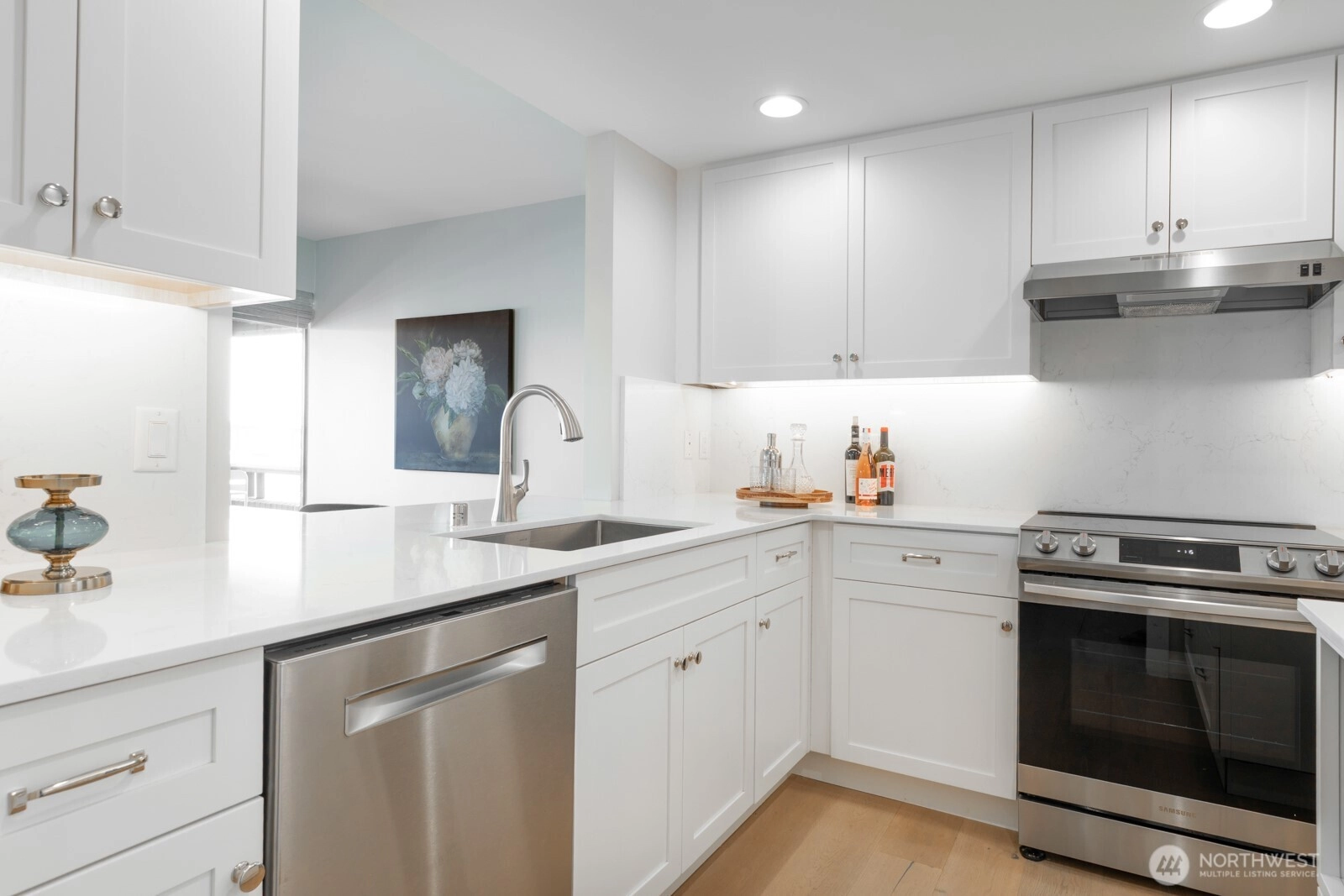 Top-floor waterfront living with unmatched views! Soak in sweeping vistas of Lake Washington and the Cascade Mountains from this fully renovated top-floor unit in the coveted Lake House Condos. The beautifully updated kitchen features new quartz slab countertops and backsplash, new cabinets, and a spacious pantry for added storage. Enjoy hardwood floors throughout, dining room w/access to a covered deck. The primary suite offers a walk-in closet & elegant en-suite bath, while a versatile den can easily serve as a 2nd bdrm or office. In-unit laundry, secure garage parking, and a lakefront pool & day-use dock. Ideally located next to a beach park and just steps from Madison Park’s shops & restaurants - easy access to SR-520! Don't miss this!