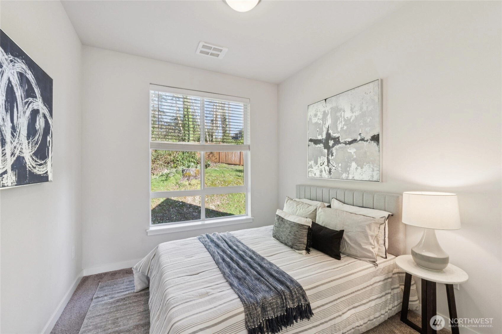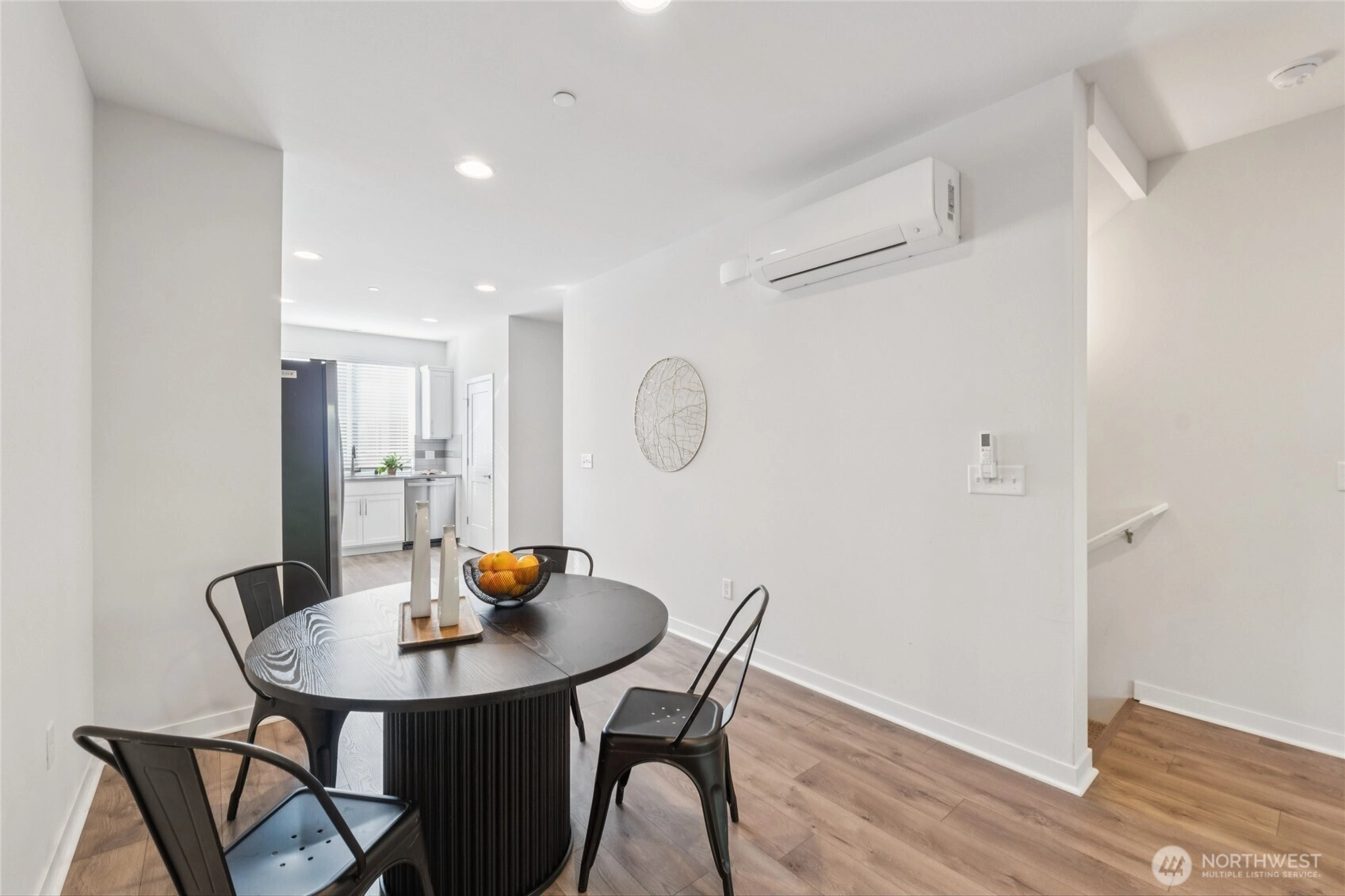This wonderful light-filled luxury townhome is the first ever resale home in Northmark at Beardslee and has been so well cared for it feels brand new, without the new construction price. Perfectly situated near the UW Bothell campus with seamless access to I-405. The main level welcomes you with an expansive, sun-drenched floor plan featuring a large living room and a dining area designed for effortless entertaining. The expansive kitchen is a gourmet's delight, boasting sleek granite countertops, gorgeous stainless appliances, chef’s gas stove and a spacious "Costco-sized" pantry. Outdoor entertaining is easy with your fully-fenced patio. A thoughtfully placed powder room is tucked away in its own wing for maximum privacy, ensuring it stays well-separated from the kitchen area. Upstairs, you will find three bedrooms conveniently located on the same level, including a primary suite with an en-suite bathroom, 2 more bedrooms and an additional full guest bath. The lower level provides a two-car tandem garage with a massive unfinished flex space at the rear—an ideal canvas for a home office, personal gym, or creative studio. With A/C and ample on-site guest parking, this home offers the perfect blend of modern luxury and functional convenience.