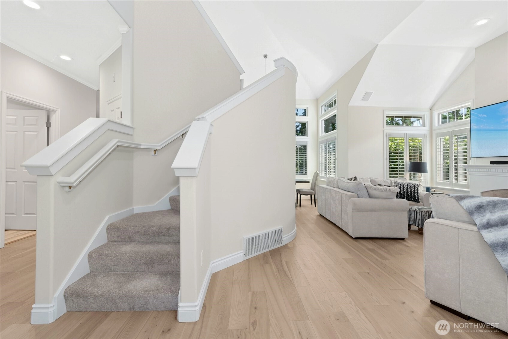 Welcome home to this highly sought-after Buchan Resale 2-Story, 2-Bedroom + DEN, 2.5 bathroom townhome in Windward Bluff at Harbour Pointe. Grand entrance with adjacent office and vaulted ceilings open to the main living and dining room. Kitchen features a NEW Quartz Countertop, Quartz Full Backsplash, Stainless Steel Appliances, and second dining space that leads onto the private patio. Upstairs, you will find the primary suite with large windows facing the greenbelt and a bedroom and a full guest bathroom. NEW SHUTTERS, New Flooring, New Light Fixtures, New Interior Paint, AIR CONDITIONING, Meticulously maintained home in very desirable neighborhood with views, centrally located near golf, shopping, and beaches! Seller Furniture in the home. Harbour Pointe golf course and community trails. This is Northwest living at its finest.