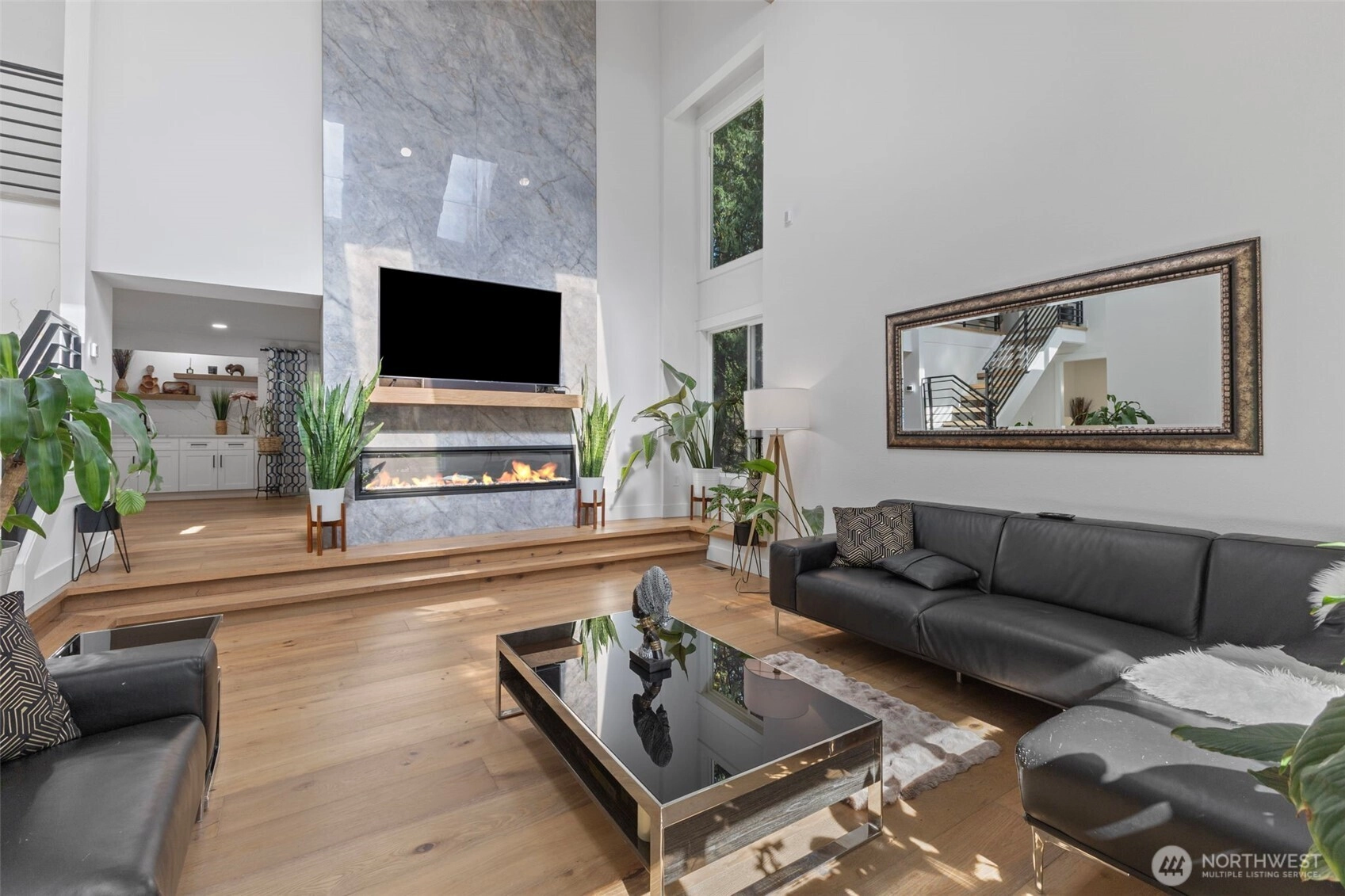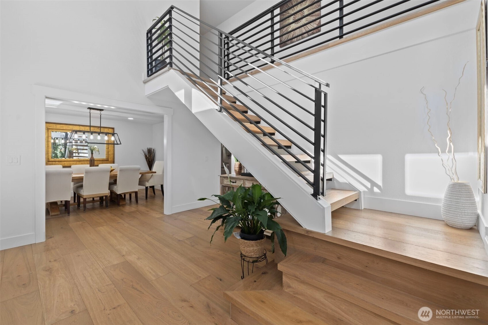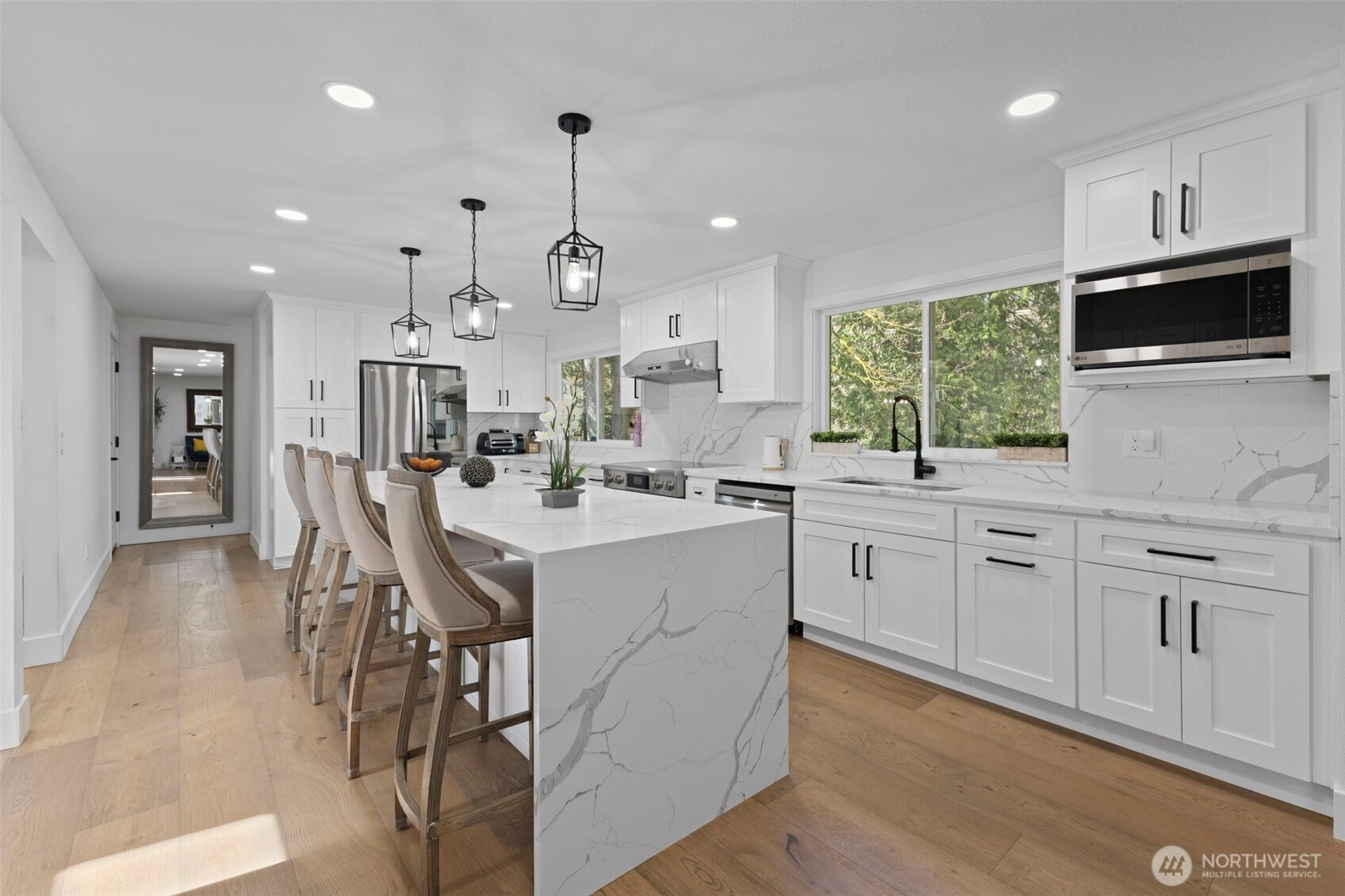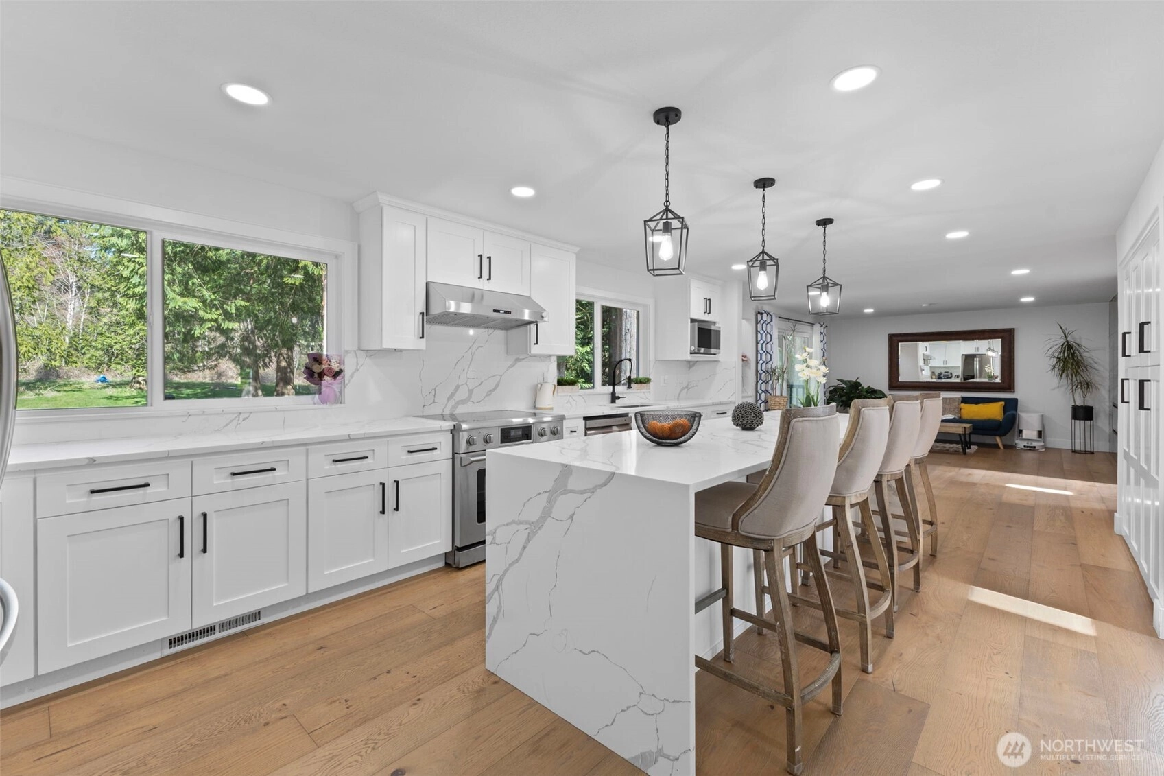 Welcome to this storybook 4.34-acre equestrian mini-ranch in desirable Maple Valley—your own modern island retreat surrounded by privacy, towering evergreens, & serene natural beauty. Enjoy peaceful territorial views, frequent wildlife sightings, nearby trails, & a welcoming community, all just minutes to Hwy 18, shopping, & dining. Completely renovated from root to roof, this impressive 4,460 sq ft home showcases a grand entry w/striking modern floating staircase & rich hardwood floors. Gourmet kitchen is a true centerpiece, featuring newer SS appliances, quartz counters, & a dramatic waterfall island, perfect for entertaining. The expansive great room boasts a stunning 3-story tiled fireplace, soaring ceilings, & abundant natural light from skylights. This spacious home offers 5 bedrooms, including 4 upstairs with a luxurious primary suite featuring a 5-piece bath, skylight, extended hardwoods, & a private balcony w/tranquil views. Additional large bedroom on the lower level offers flexibility & comfort. Fully finished basement w/9’ ceilings provides exceptional living space w/media room, office, & additional gathering areas. Smart home technology allows remote control of garage, appliances, & thermostats for modern convenience & Tesla charger. The property is equally impressive w/massive shop, ample RV parking w/water hookup & shared well. Located near award-winning Tahoma schools, this move-in ready estate offers the perfect blend of modern living & country charm.