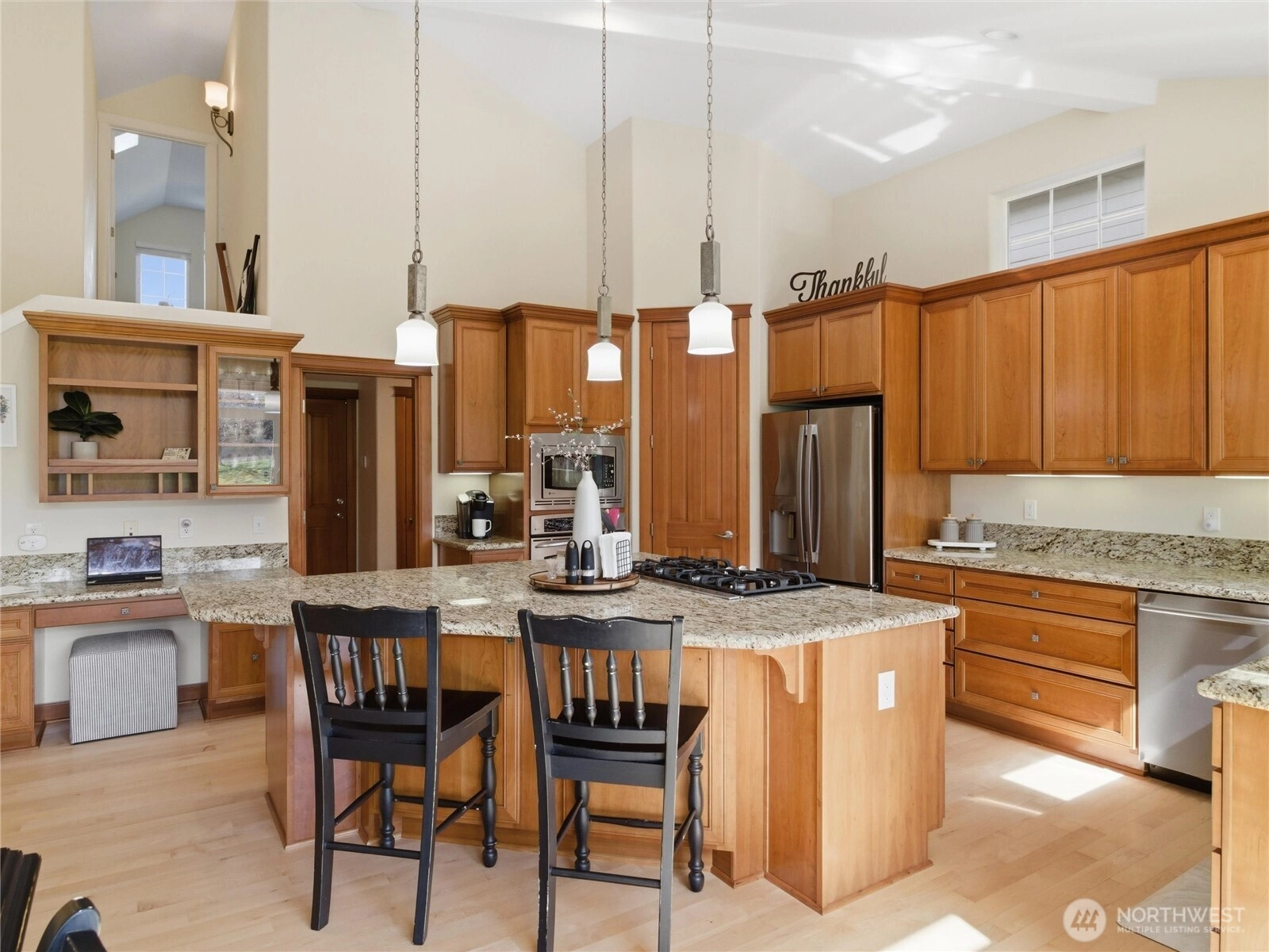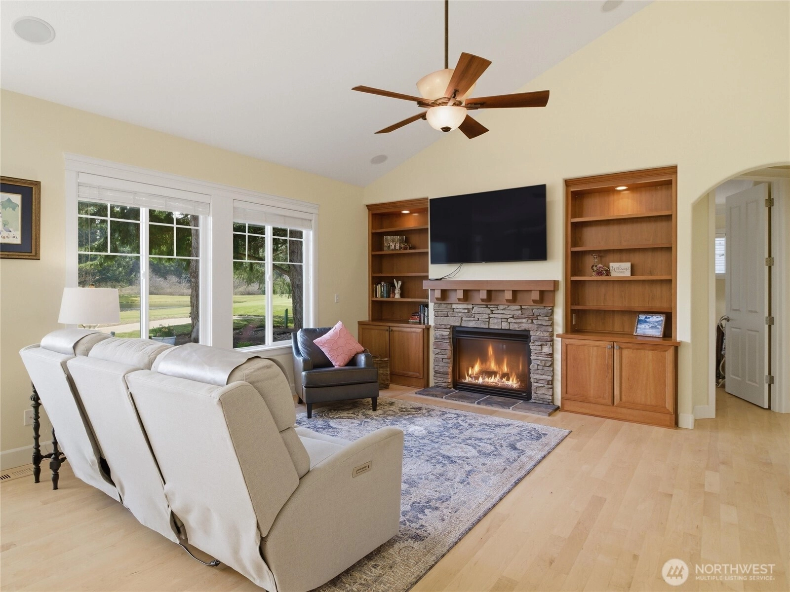 INDIAN SUMMER Golf & Country Club, Gated with Guardhouse and Private! Amazing home overlooks the 6th Fairway and pond. Stone & Shake Craftsman Exterior Facade---- Open floor plan with gorgeous kitchen, stone counter island and gas cooktop! Family Room with vaulted ceilings, fireplace and built-in custom bookshelves and maple hardwood flooring throughout! Convenient Powder Room. Primary Bedroom and 2nd BR on main floor, Bonus Room or 3rd Bedroom upstairs with bathroom, vaulted ceilings & skylights. Central Vacuum, Electronic Air Cleaner. Southern Exposure gives lots of natural light to this home. Fairway views from the large and private patio include serine pond and mature trees. Chehalis Western Trail access just a few doors down. Newer composition roof with gutter guards. House Alarm System. Sprinkler System. 2-Car Garage with workspace. Come experience and enjoy this beautiful home with many, many upgrades...!!!