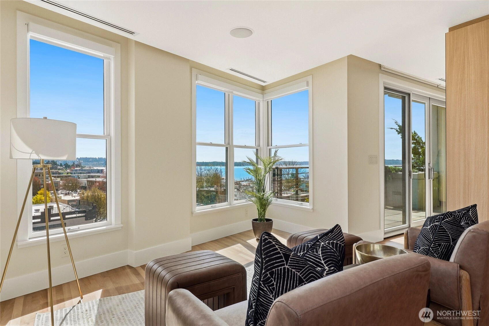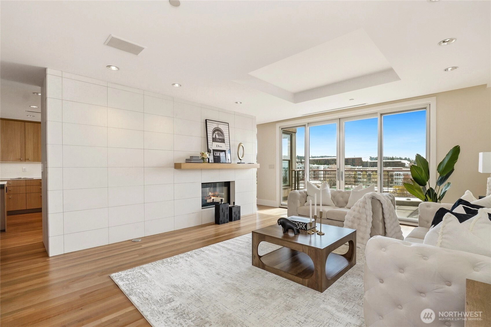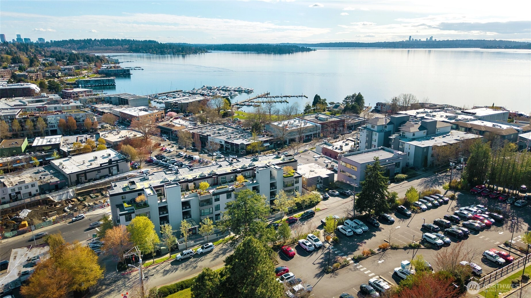 Experience modern elegance in this iconic concrete and steel residence at Marina Heights, perched above downtown Kirkland with panoramic lake, mountain, and city views. Floor-to-ceiling windows flood the home with natural light, highlighting the open-concept design with rich cherry floors, a spacious chef’s kitchen, dining area, living room with gas fireplace, and an impressive 350+ bottle wine cellar, perfect for entertaining. This three-bedroom corner unit lives like a single-level home, featuring a south-facing primary suite with a spa-inspired bath and walk-in closet. Enjoy stylish living just steps from Marina Park, Waverly Park, waterfront trails, top restaurants, shops, coffee spots, and the boat launch. Complete with a secured garage, two parking spaces, and ample storage, this is downtown Kirkland living at its finest.