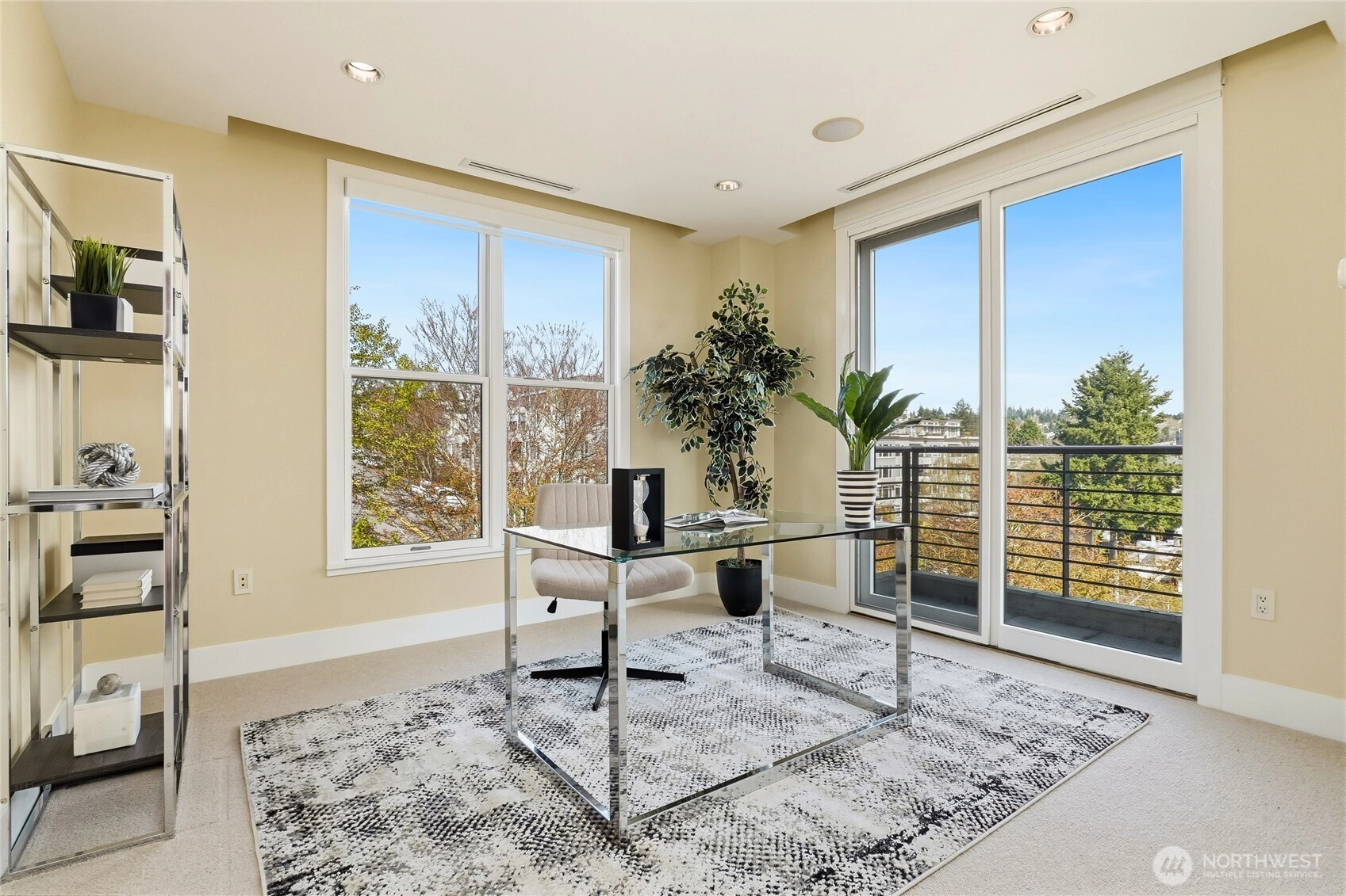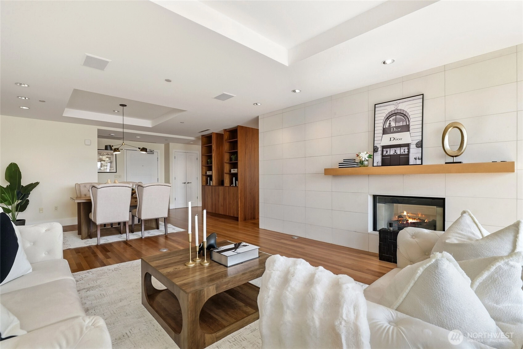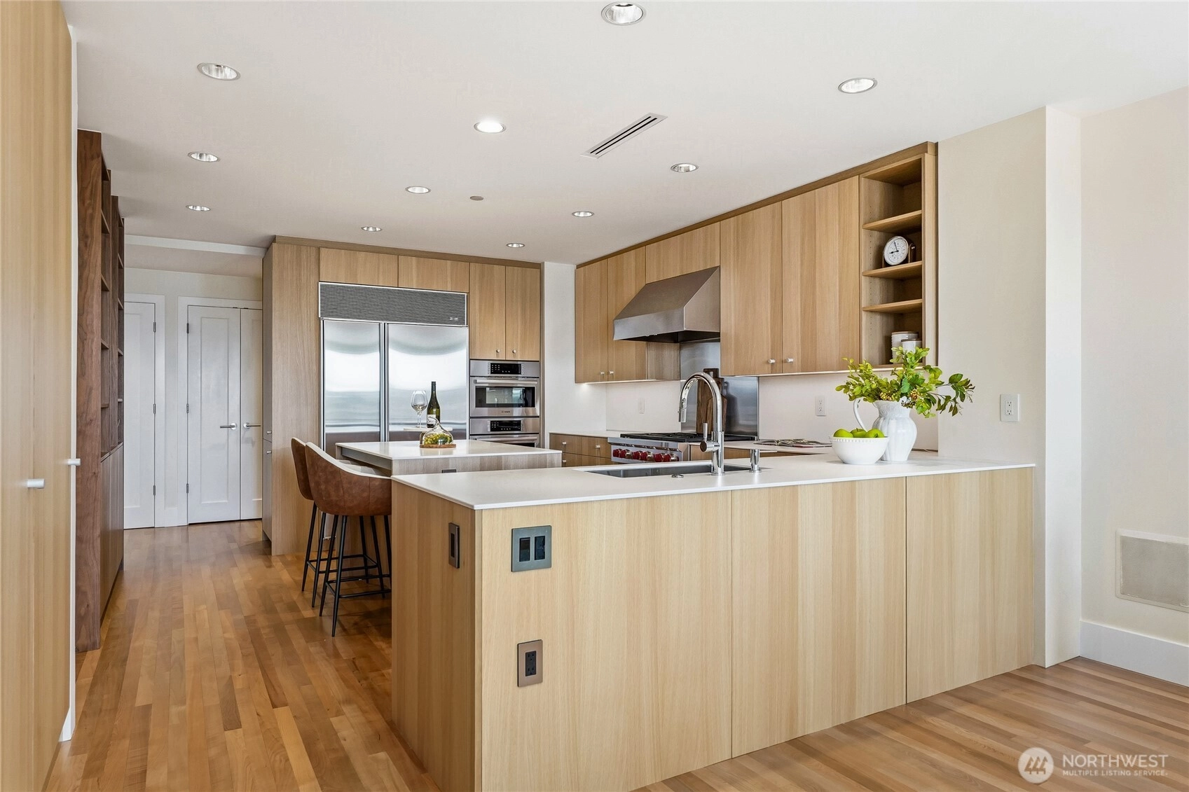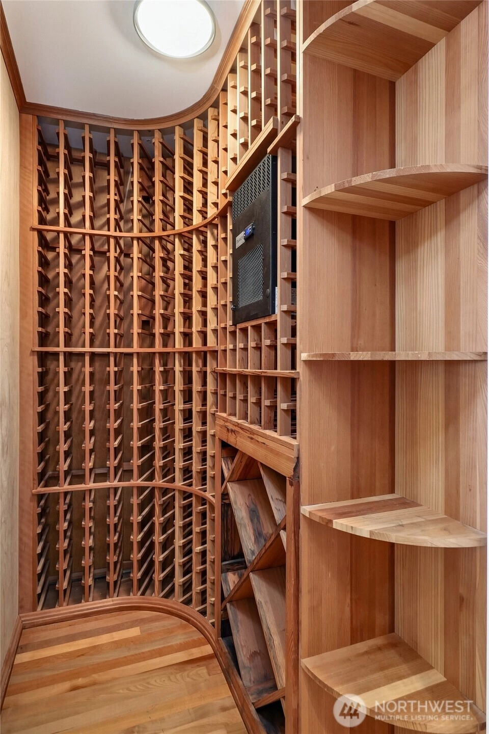 Experience modern elegance in this iconic concrete and steel residence at Marina Heights, perched above downtown Kirkland with panoramic lake, mountain, and city views. Floor-to-ceiling windows flood the home with natural light, highlighting the open-concept design with rich cherry floors, a spacious chef’s kitchen, dining area, living room with gas fireplace, and an impressive 350+ bottle wine cellar, perfect for entertaining. This three-bedroom corner unit lives like a single-level home, featuring a south-facing primary suite with a spa-inspired bath and walk-in closet. Enjoy stylish living just steps from Marina Park, Waverly Park, waterfront trails, top restaurants, shops, coffee spots, and the boat launch. Complete with a secured garage, two parking spaces, and ample storage, this is downtown Kirkland living at its finest.