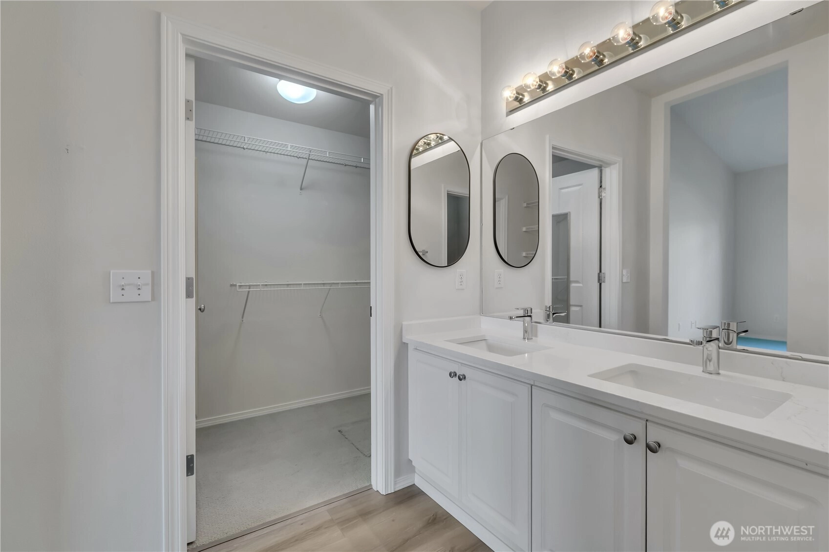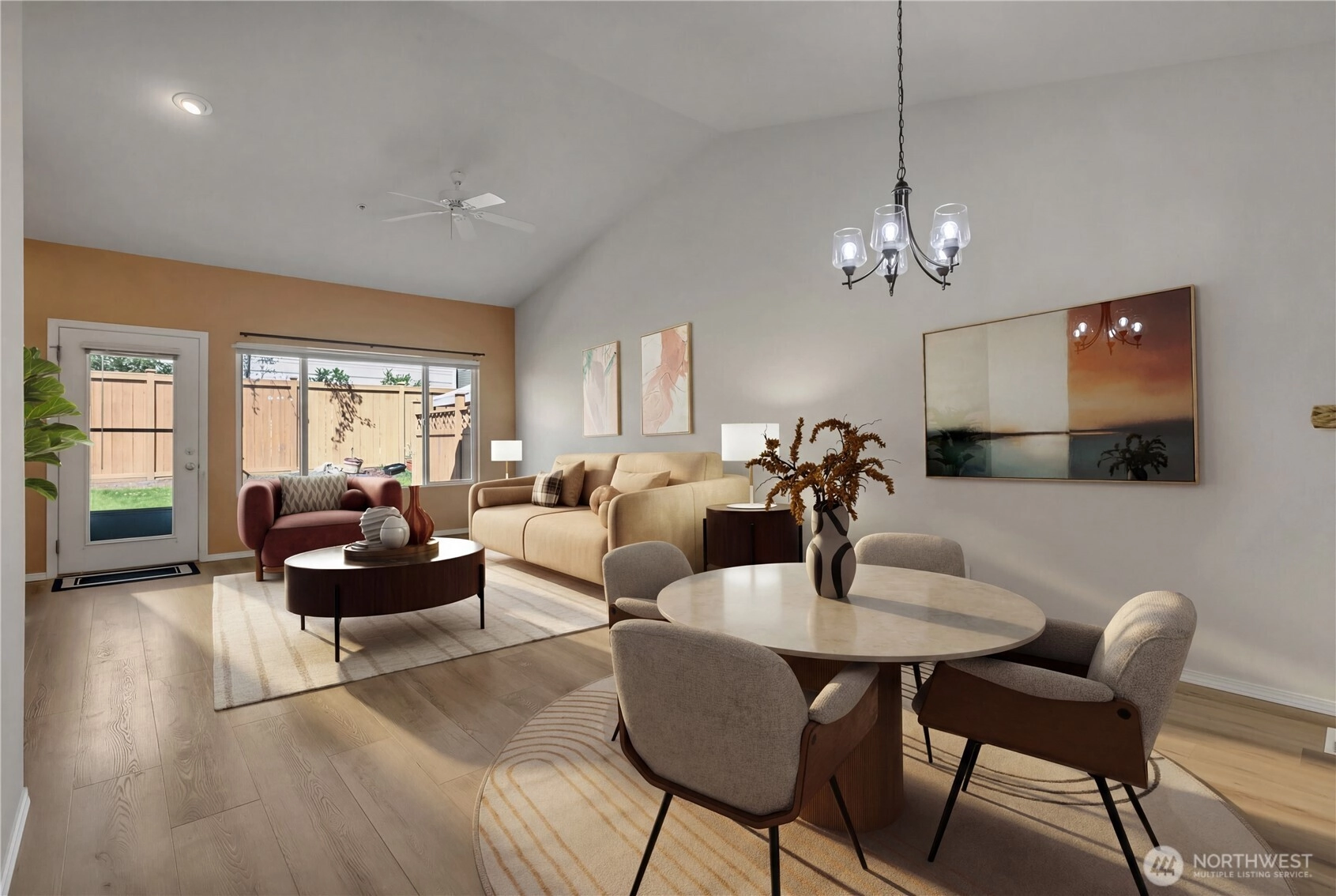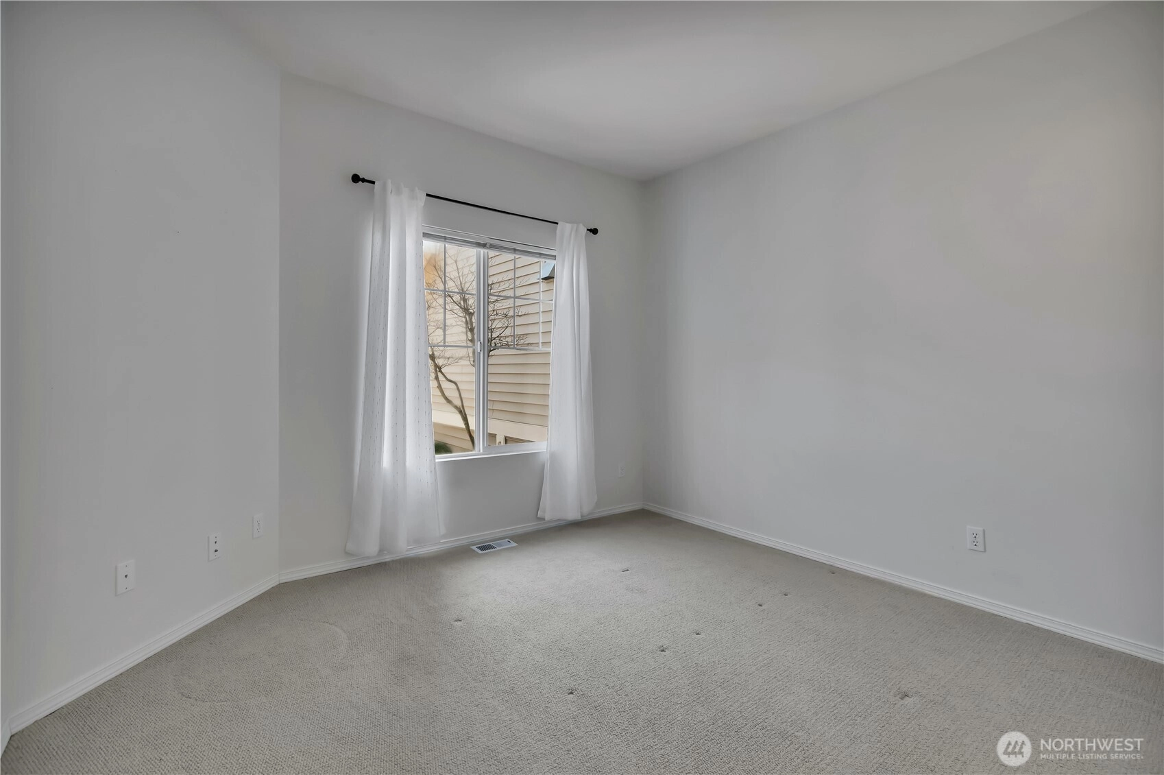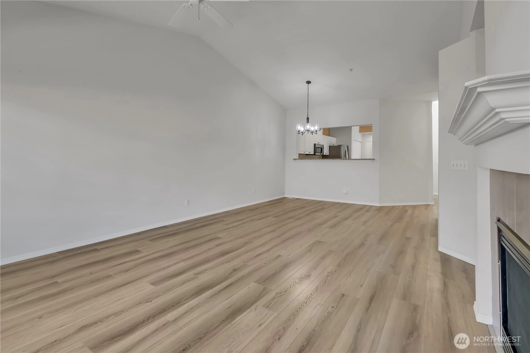 Welcome to this very well cared for ONE-level condo in the quiet, gated community of Waterford in Lakeland Hills. This wonderful home offers 2 bedrooms, 2 bathrooms, new laminate flooring throughout the open living spaces, with vaulted ceilings, & a gas fireplace. Big kitchen with white cabinetry, granite counters, kitchen nook space & newer stainless steel appliances. The passthrough from the kitchen looks into the open living & dining space. The primary suite also has vaulted ceilings, & an attached bathroom with new quartz counters & double sinks, a walk in closet & beautiful new walk-in shower. The guest room or office sits at the front of the home with a full guest bath. Great little patio/yard space out back, mostly fenced. Air conditioning to keep you cool all summer. Two car attached garage, with storage cabinets. Washer & dryer stay. Close to schools, parks, trails, & walkable to the Lakeland Shopping center. Enjoy low maintenance living ~ dues cover exterior of home, lawn maintenance, sewer & water, security gate, & a fun putting green!