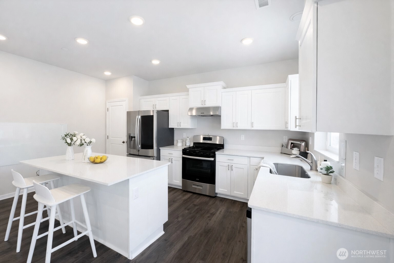 Welcome to the highly sought-after Addington plan at Blue Meadows by D.R. Horton, a beautifully maintained home where the owner has taken exceptional care of every detail. This bright and modern home features an inviting open-concept layout designed for comfortable living and effortless entertaining. The spacious great room flows seamlessly into a stylish kitchen with a breakfast bar, casual dining area, quartz countertops, gas cooking, and elegant white cabinetry, creating a fresh and sophisticated space at the heart of the home. Upstairs, retreat to the relaxing primary suite with a private bath and generous walk-in closet, along with two additional bedrooms perfect for guests or a home office. Step outside to enjoy the large landscaped backyard, ideal for gatherings, gardening, or simply unwinding after a long day. The home also offers the convenience of a 2-car garage and Smart Home features for modern comfort and efficiency. Ideally located in the desirable Blue Meadows community, just minutes from Kent Station, Kent Hill Plaza, Lake Meridian Park, ShoWare Center, shopping, dining, and entertainment. With easy access to Metro Rail and major freeways, commuting to Seattle, Bellevue, and surrounding areas is simple and convenient. A perfect blend of location, comfort, and style—this home is truly move-in ready.