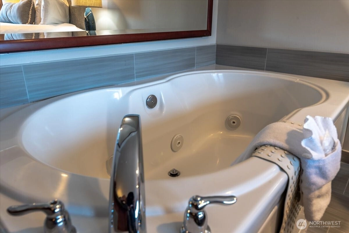 Lakefront affordability at its finest! Welcome to Unit 712 at Grandview on the Lake—where you truly can’t get any closer to the water. This KING Jacuzzi Suite offers a unique blend of condominium ownership with a resort-style, hotel atmosphere, making it a great SHORT TERM RENTAL investment or personal getaway. This cozy, ground-level studio is tucked away in the 700 building, offering added privacy while still providing direct access to the waterfront. Enjoy a plush king bed, a large Jacuzzi tub, 3/4 bath, and a convenient wet bar complete with sink, microwave, and mini fridge. A fireplace adds warmth and ambiance for relaxing off-season stays. Step outside to your private deck right on the water or take advantage of the expansive lawn area with nearby BBQs and easy lake access. The unit comes fully furnished and turnkey, with an onsite rental company for seamless management. Grandview on the Lake amenities include a stunning pool, hot tub, snack bar, and buoys for registered guests—all in a prime downtown Chelan location close to shops, dining, and entertainment. HOA dues cover nearly everything: water, sewer, garbage, power, internet, TV, exterior insurance, and common area maintenance. Whether you're looking for a competitive-priced short-term rental or your own lakeside retreat, this is an unbeatable opportunity on Lake Chelan!