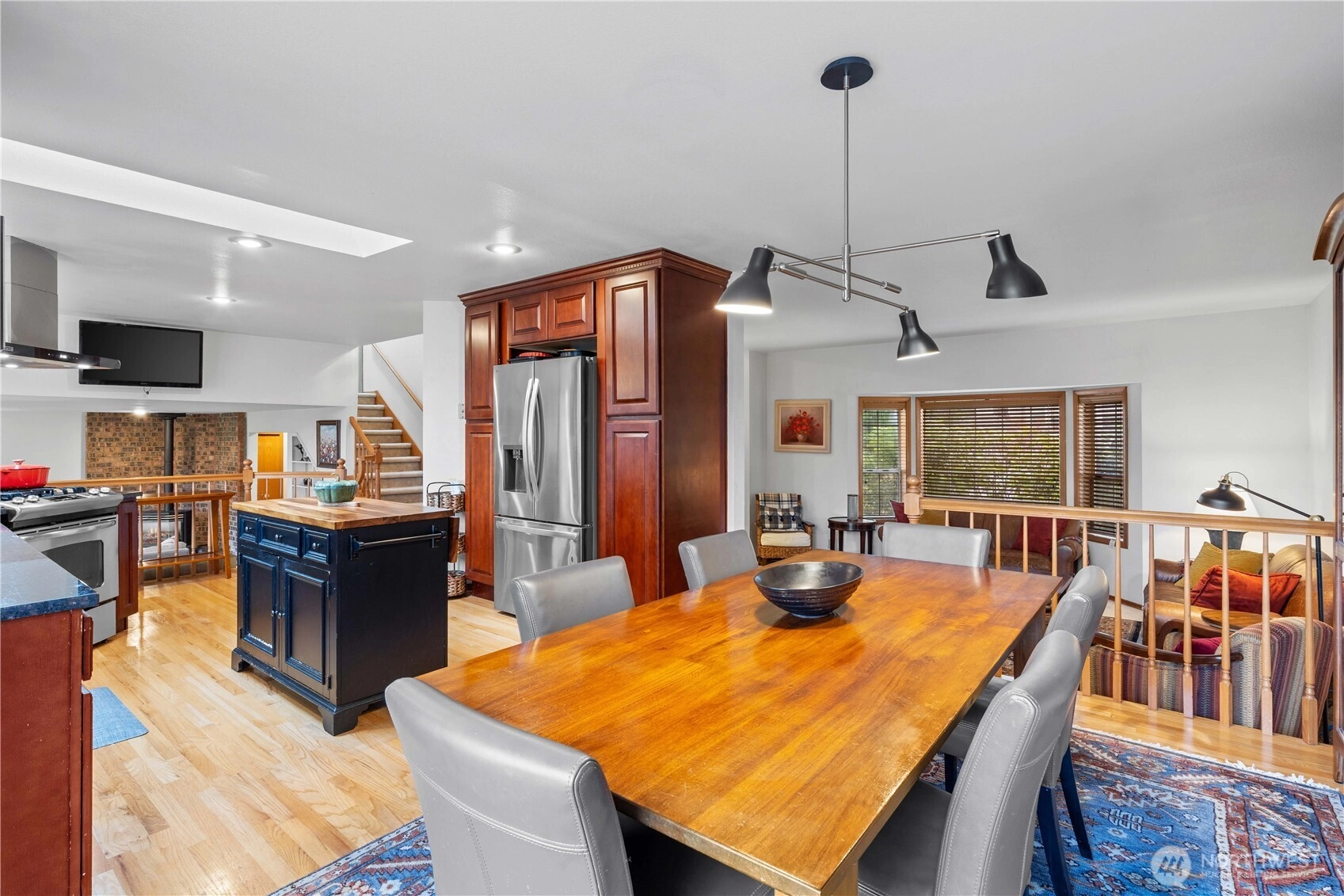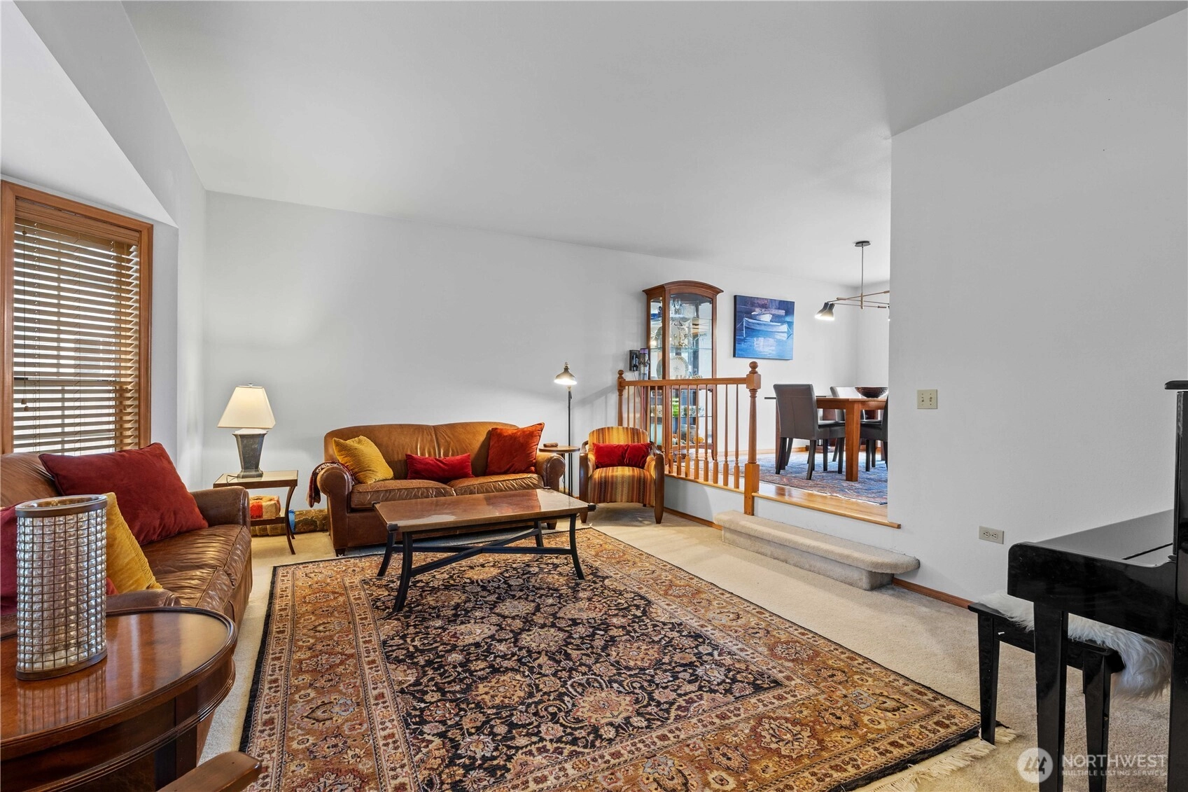 Discover this beautiful home in the highly sought-after Barclay Place neighborhood, offering privacy, quiet surroundings, and unbeatable convenience. Step inside to hardwood floors, abundant natural light, and inviting living spaces. The updated kitchen features cherry cabinets, granite countertops, stainless steel appliances, hardwoods, and a charming breakfast nook ideal for everyday living. Enjoy a formal living room, formal dining room, and a spacious lower-level family room with a cozy gas stove. The lower-level bedroom with a fully updated 3/4 bath creates an ideal guest suite or multi-generational living. Upstairs, the primary suite includes a large walk-in closet and an ensuite bath with dual sinks, soaking tub, and a renovated shower. Two additional bedrooms plus a full hall bath with dual vanities offer excellent separation from main living areas. Outdoor living shines with a generous entertainment-ready deck, mature landscaping, and a well-sized yard. Fresh exterior paint enhances curb appeal. Located close to shopping, restaurants, freeway access, the King County Aquatic Center, parks, and walking trails, this home delivers comfort, style, and a prime location. Seller to offer $5000 credit for carpet allowance.