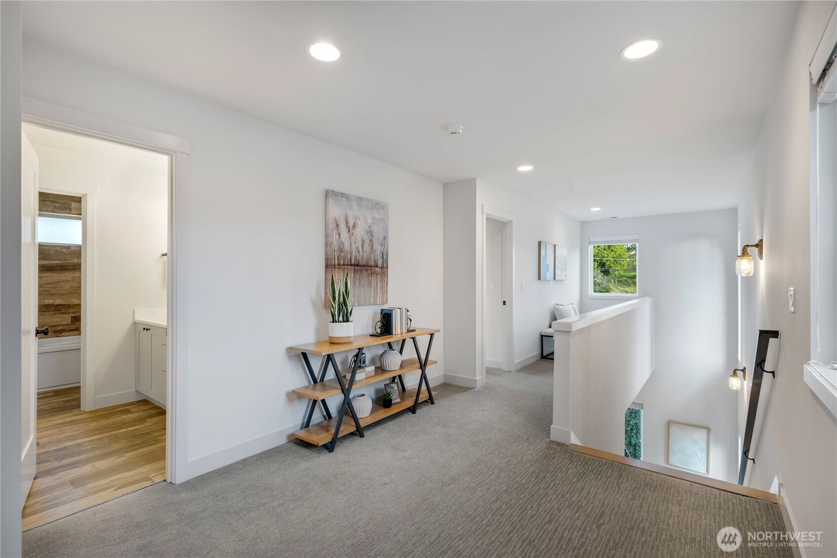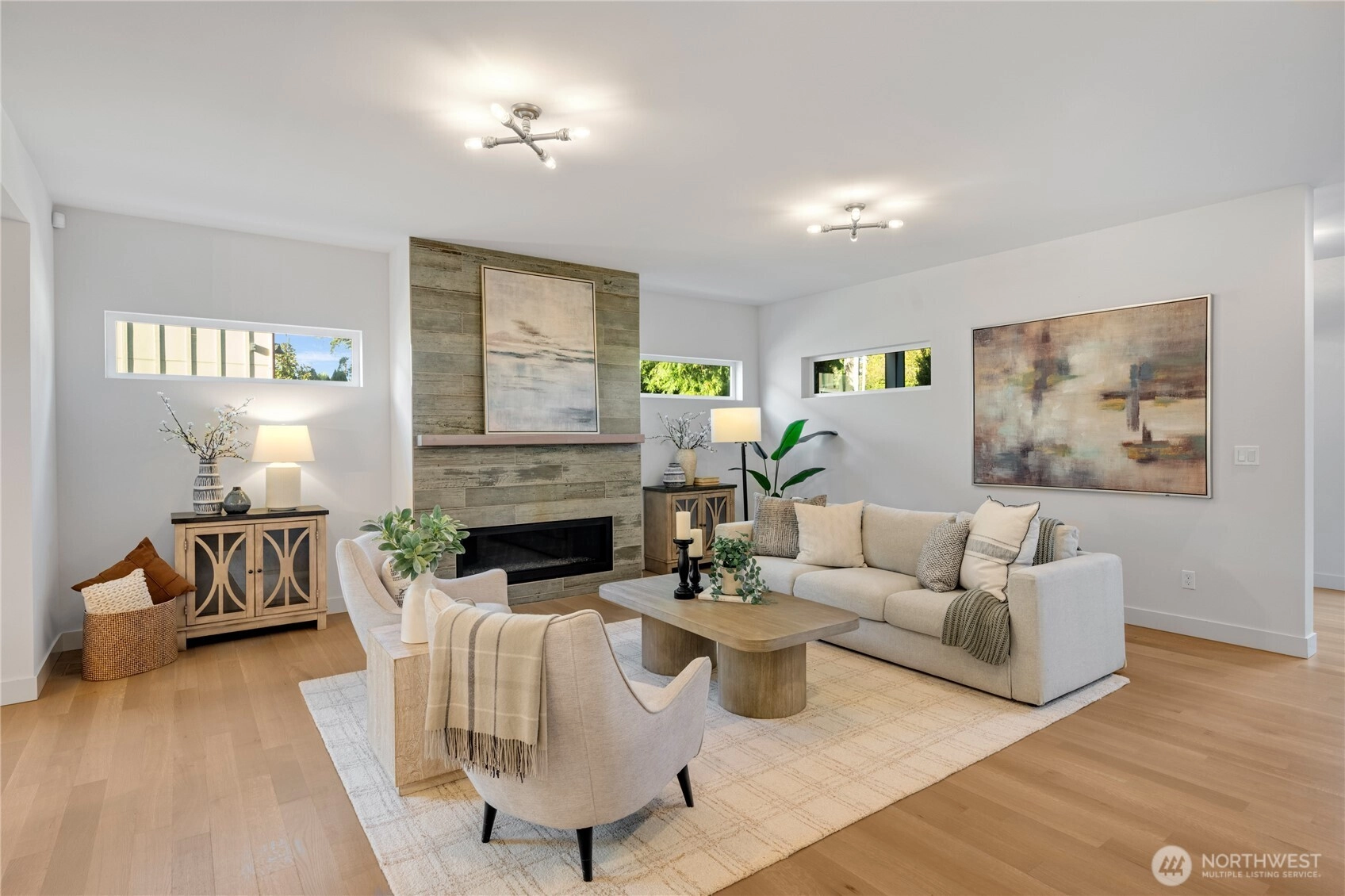 10317 Sand Point Way Northeast offers a Matthews Beach modern farmhouse. Built in 2018, this lightly lived in home is in exceptional condition. The warm interiors immediately welcome you as you enter the home. The open floorplan offers plenty of space for entertaining as well as the adventures of everyday life. An over-sized living room is anchored by an architectural fireplace. The dining room is conveniently located between the living room and open kitchen. Built-ins add additional storage. With a large island, the kitchen features stainless appliances, quartz counters , a tile backsplash and ample storage. The powder room and mud room complete this level of the home. The upper level of the home has four bedrooms and three full baths. The primary suite is an oasis with a sitting area, two walk-in closets and a five piece bathroom. A second primary bedroom, complete with it's own bath, enjoys a little Lake Washington view. The third and fourth bedrooms are both oversized. One features a wall of built-ins, the other has a generous walk-in closet. The laundry room is conveniently located on the second level. A fenced backyard gives you enough room to entertain and garden. In addition to a large deck, there is also a patio. An attached two car garage offers room for your cars as well as garbage cans and yard tools. Easy I-5 access via Lake City Way. Close to the Burke Gilman, Magnusen Park and University Village. Your future awaits.
