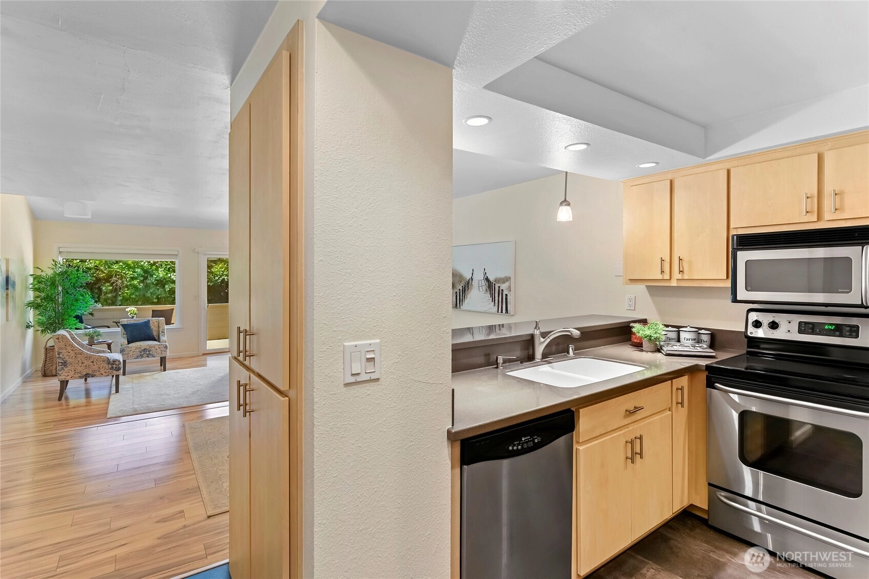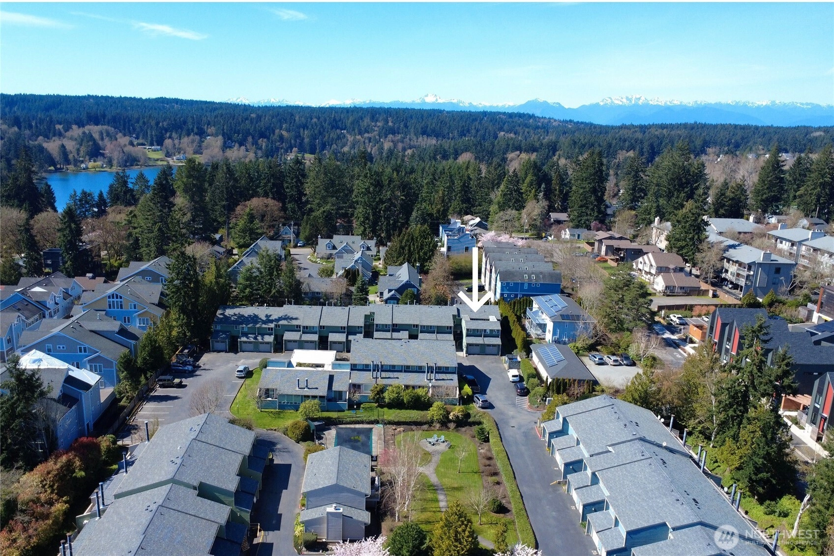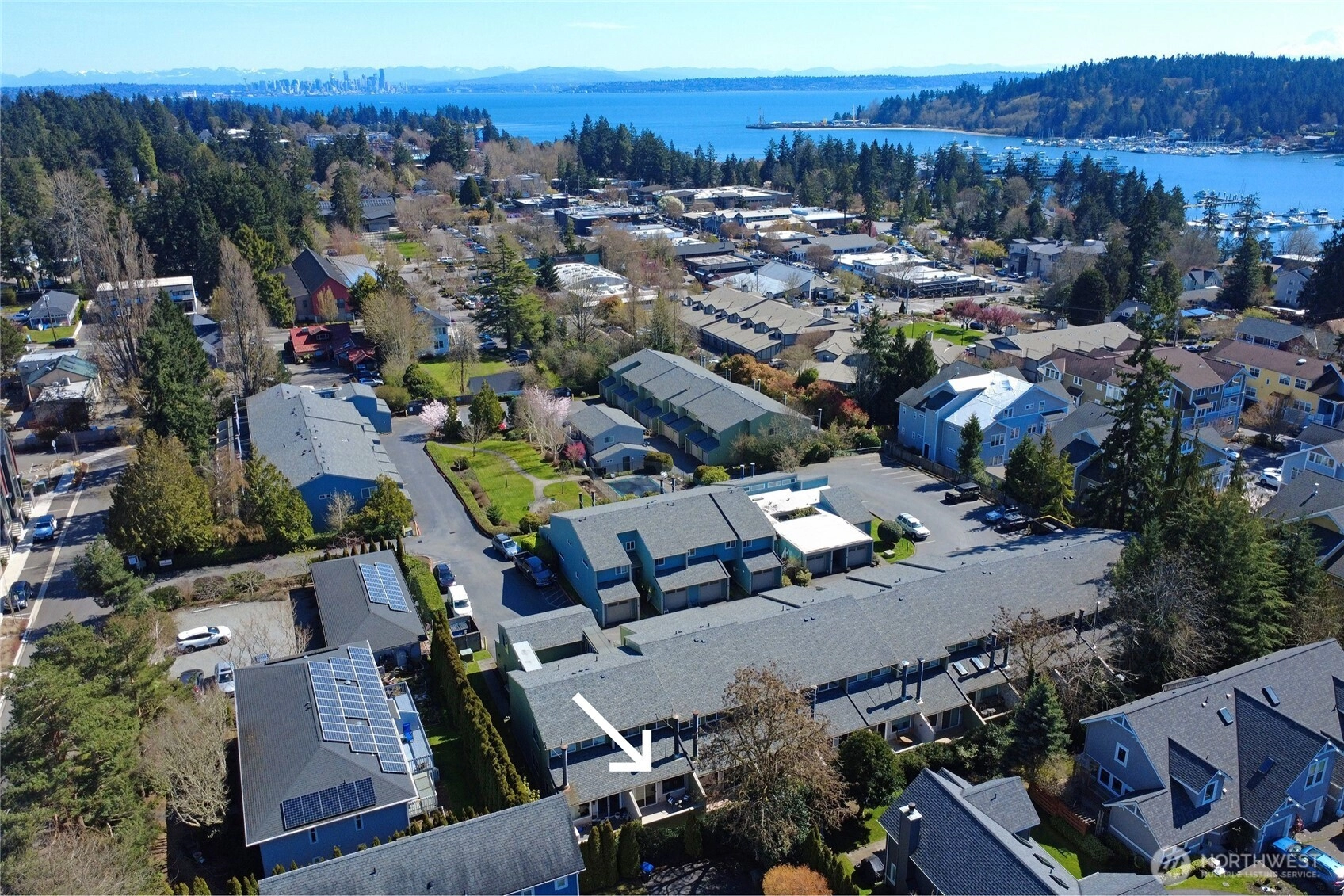 With a welcoming courtyard entrance and west-facing deck that ensuring abundant sunshine beams onto the deck and into the home, this warm and comfortable condo offers in-town living with incredible value, whether for a primary residence or for a reliable rental property. Set in Winslow on a quiet street, this home offers a true 15-minute city lifestyle: walkable access to shops, dining, medical care, parks, transit, marinas, and vibrant public spaces that support convenience, sustainability - all a spontaneous ferry ride from Seattle. This updated unit has brand new bathtub and shower surround, new luxury vinyl flooring downstairs and brand new carpet upstairs, a freshly painted exterior and bright white walls inside. The private deck, laundry next to the bedrooms, secured parking and storage in a private 1-car garage offer independence while the Winslow Park community features a seasonal pool, sauna, clubhouse, and landscaped courtyards to provide the feeling of a small neighborhood with a sense of community. This price point is hard to find in Winslow, and this turnkey home exemplifies the opportunity for this home to be yours.