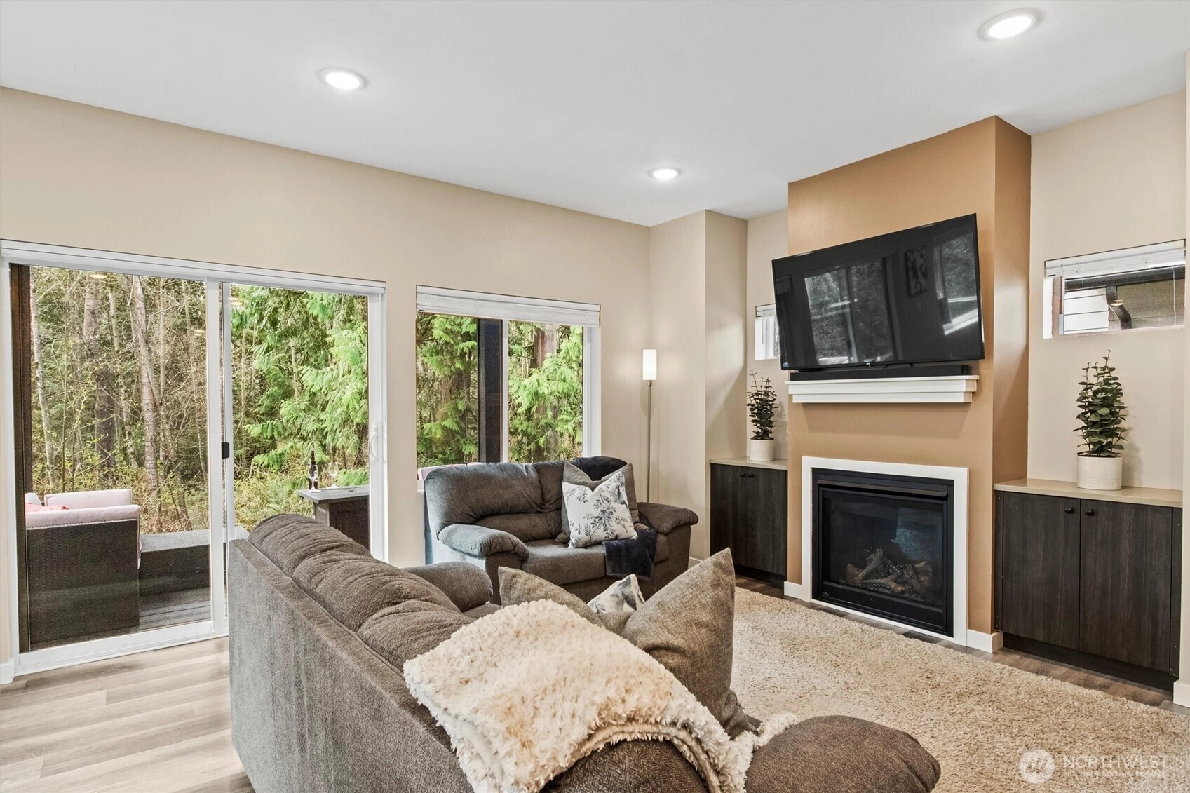 Experience elevated living at The Ridge in Blaine with this beautifully designed corner lot home showcasing premium finishes throughout, and a truly one-of-a-kind setting. This is the only corner lot in the community that backs to the nature reserve while also bordering it on one side, offering exceptional privacy and a serene, natural backdrop. The thoughtfully updated landscaping enhances both curb appeal and outdoor enjoyment.Inside, you’ll find durable LVP flooring, sleek quartz countertops, and soft-close cabinetry that add both style and function. The kitchen stands out with brushed black fixtures, stainless steel appliances, and a generous walk-in pantry perfect for storage and organization.The primary suite offers a peaceful retreat, including a spa-inspired floor-to-ceiling tile shower and a spacious walk-in closet.Enjoy year-round comfort with a mini-split heating and A/C system, along with the warmth of a cozy gas fireplace complemented by custom built-in cabinetry. Blending modern design with everyday livability, this home delivers both comfort and sophistication. This one is priced to sell; don't miss your opportunity! *Seller is offering a $5,000 credit toward a rate buy down or toward closing costs.*