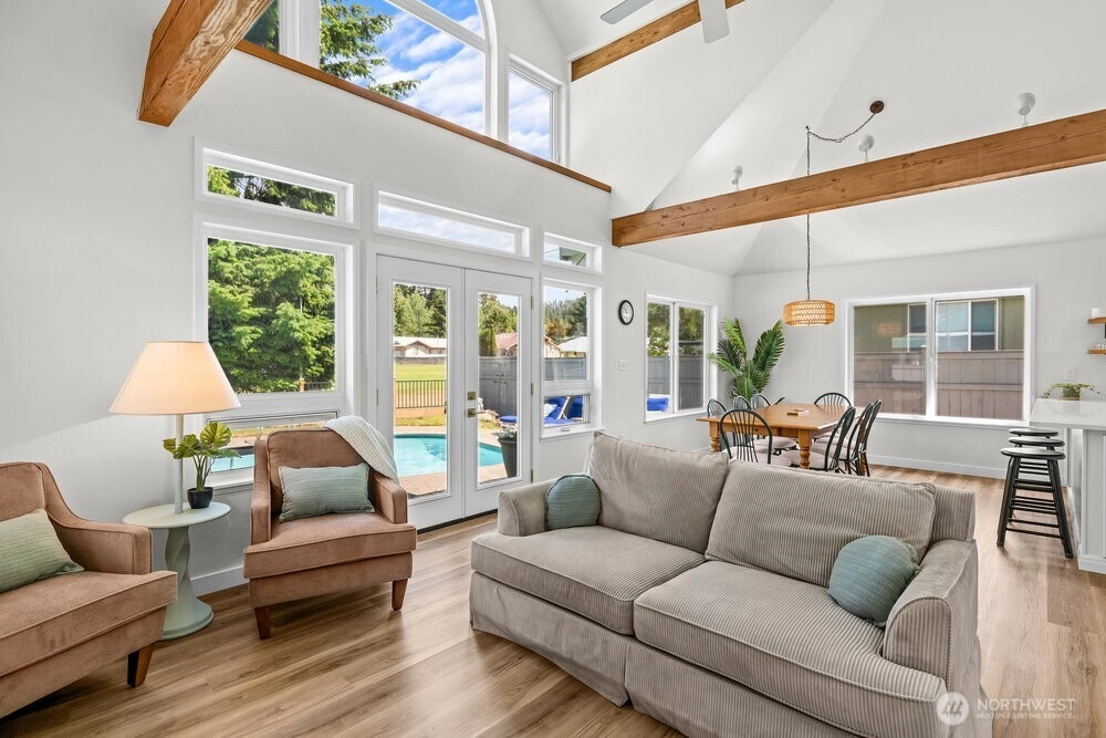 Looking for the perfect retreat for all-season outdoor fun? This remodeled Cle Elum residence offers not just a home, but an enchanting lifestyle. With two main-floor bedrooms and a spacious loft, friends can join for a game of billiards after a day on the ski slopes or golf course. Oversized windows invite the natural beauty indoors while the secluded lounge area beckons-relaxation on the horizon. Adjacent to the Sun Country Golf Course's 17th fairway, imagine teeing off steps from your back door. Explore endless adventures from hiking to fly-fishing, all within a serene fenced property. Situated on a quiet dead-end street across from the Yakima River, only a quick 5-mile jaunt to Cle Elum. This atmosphere is where dreams thrive.