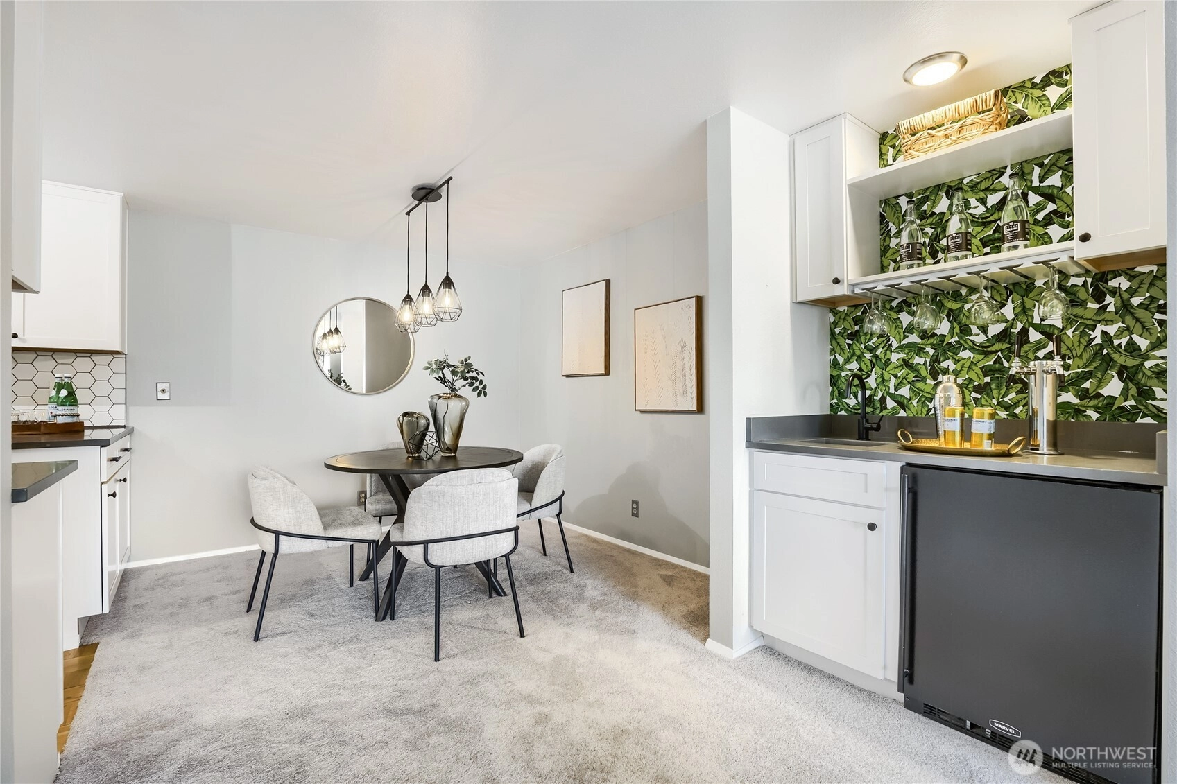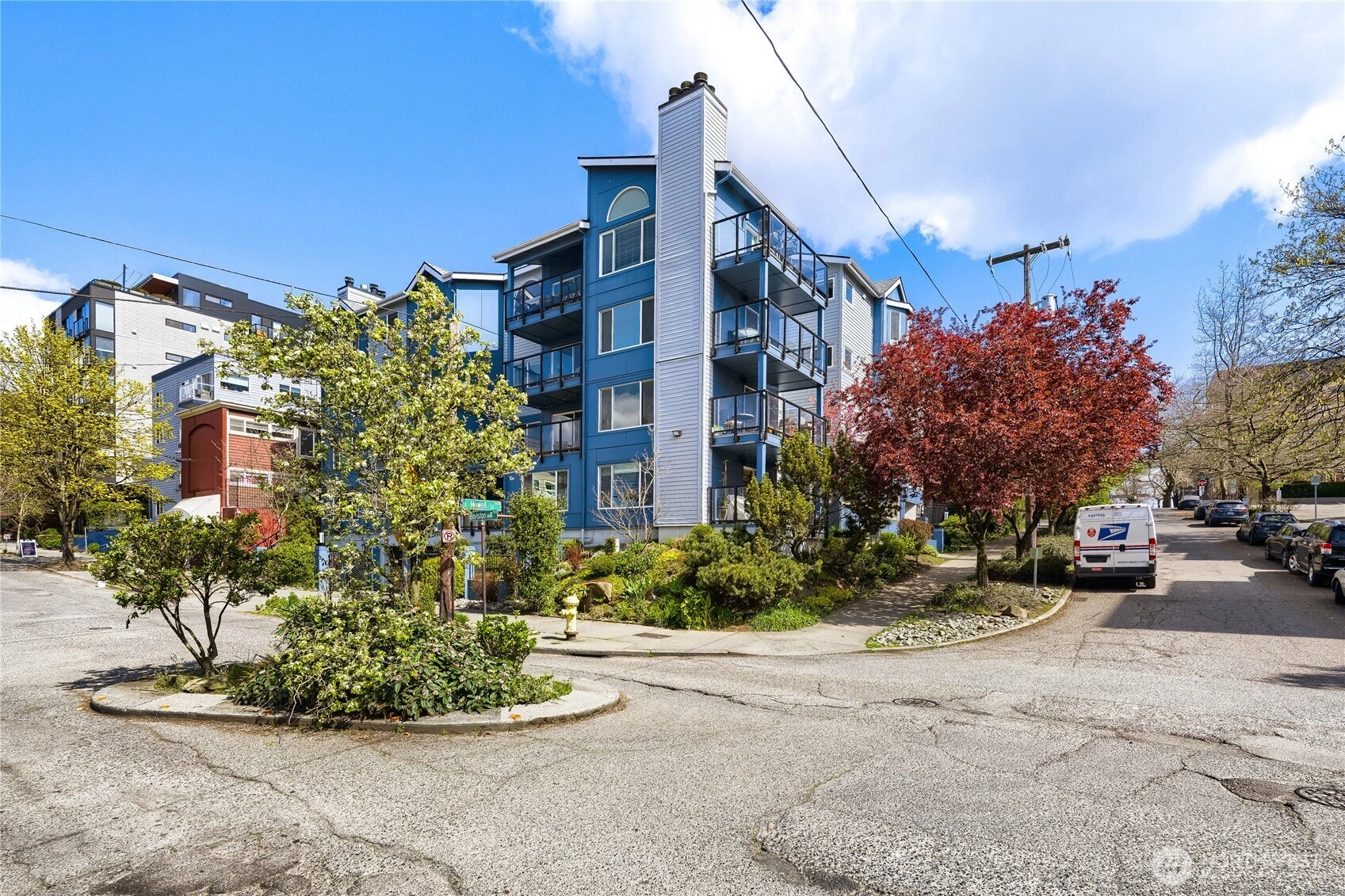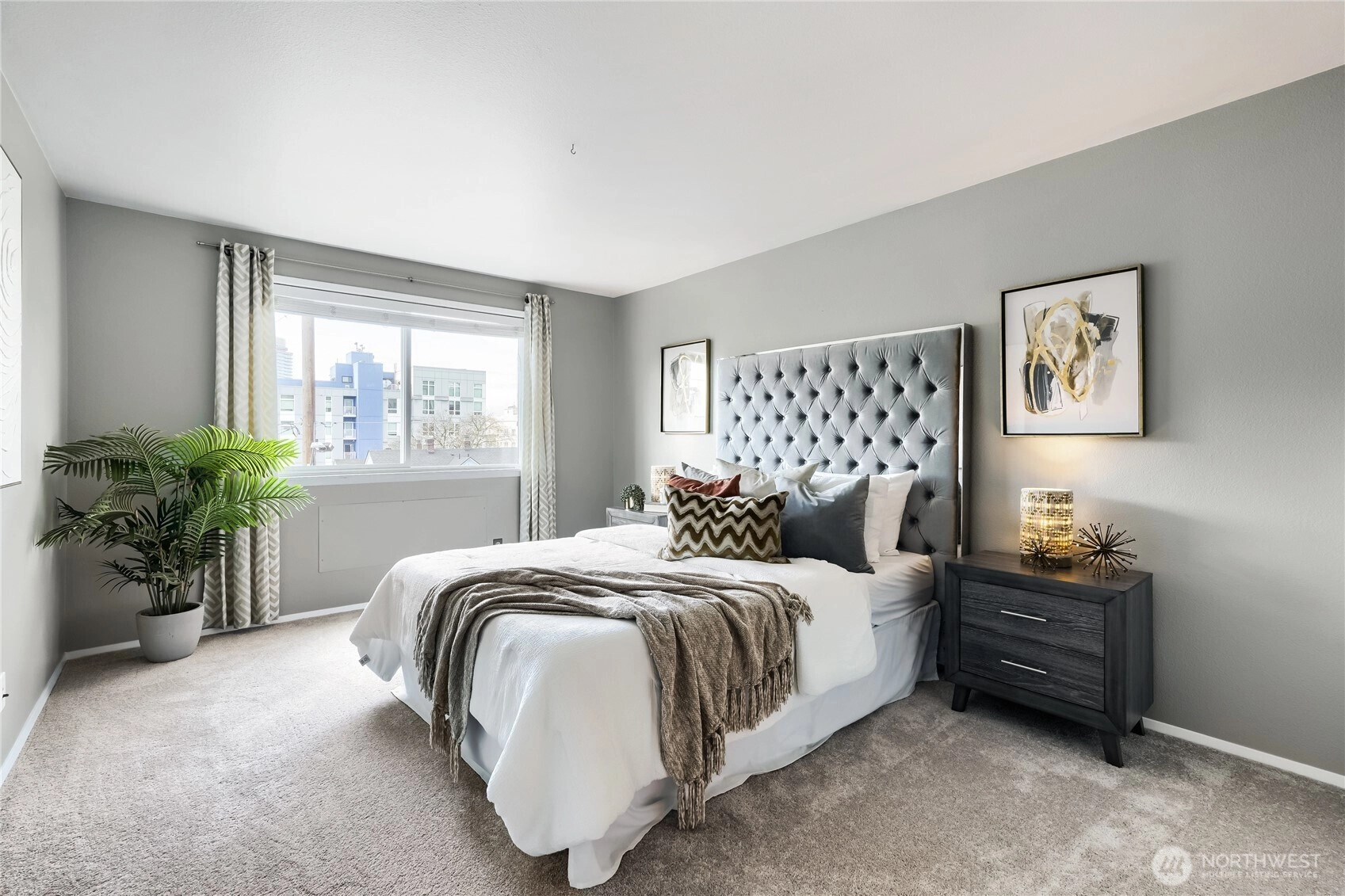 Feel the pulse & energy of the city from this fabulous urban landing pad in Capitol Hill! Everything you love about vibrant city living is at your doorstep: top-rated restaurants, fantastic nightlife, grocery options, scenic parks, community events & endless transit options. You'll love being so connected to everything! This bright third floor unit lives large & makes the most of every sqft, w/ thoughtful updates at every turn: fresh interior paint, new carpet, stylish wallpaper accents, chic lighting, & more. Become the host with the most & invite your whole friend circle over - you'll love to gather in the bright open living room looking out to city views, flowing easily into the dining area w/ a wet bar & kegerator, then into the sleek updated kitchen, equipped w/ stainless appliances, hex tile backsplash & updated counters/cabinetry. Both bedrooms are bright & airy w/ California closets to store all your gear. West-facing covered balcony looks out to twinkling city lights & gorgeous sunsets. In-unit laundry, dedicated garage parking + no rental cap = versatility, longevity & value. Tucked away on a quiet street, yet walkable to all the fun so you never miss a moment. Live your best life with downtown's best as your backdrop!