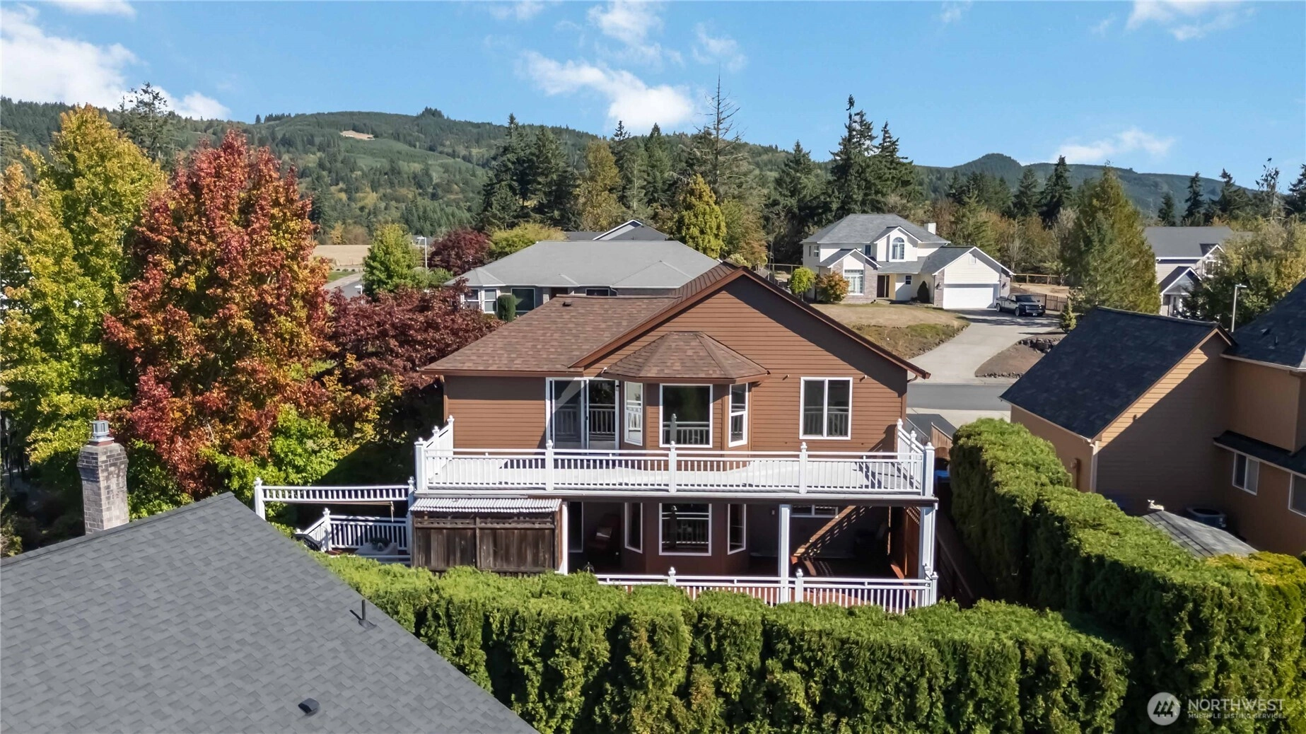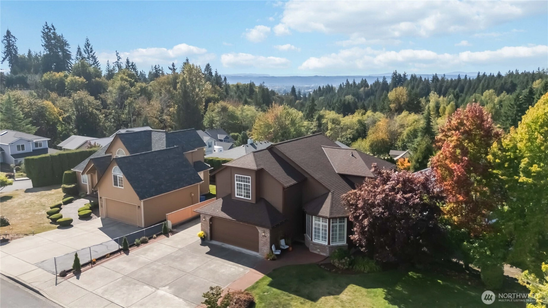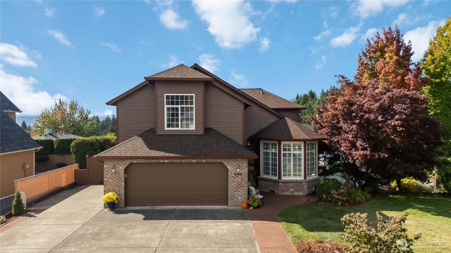 Welcome to this 2,180 sq ft, 3-bed, 2.25-bath home in sought-after Mt Brynion Estates. This property boasts timeless cedar siding, stylish brick accents and a durable 50-year roof installed in 2020, along with new paint inside and out insures both beauty and longevity. The open main level features vaulted ceilings in the entry and elegant living room with plantation shutters, leading to a spacious great room, dining area, and a well-equipped kitchen with double oven, convection microwave, cooktop, eating bar, and Hunter Douglas honey comb drop down blinds. Enjoy year-round outdoor living on the covered deck with expansive territorial views and hot tub. Upstairs, the oversized primary suite includes a walk-in closet, private bath with dual sinks, separate shower, and access to the upper-level private deck with a view. Two more bedrooms, one with vaulted ceilings and another full bath complete the second floor, also equipped with plantation shutters. The oversized garage features finished floors, a sink, and ample storage. Lower level includes a heated/cooled hobby room and storage space. Corner lot with RV parking and second driveway with covered parking. A must-see!