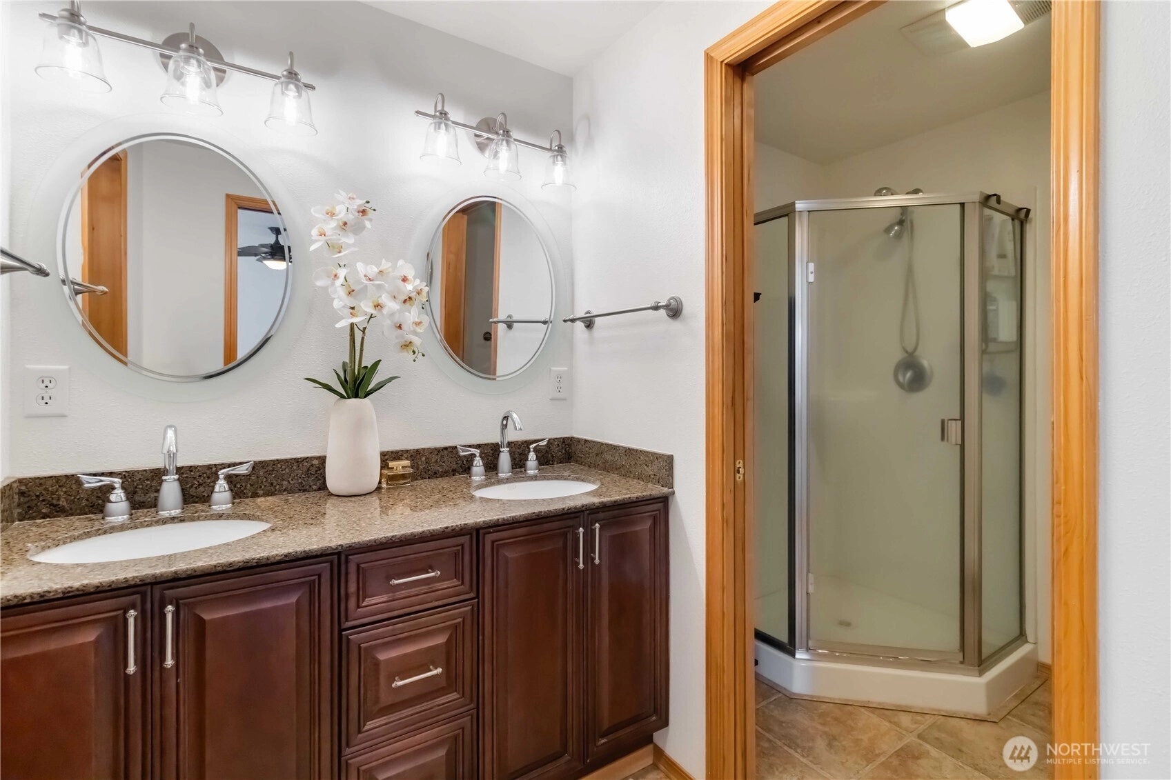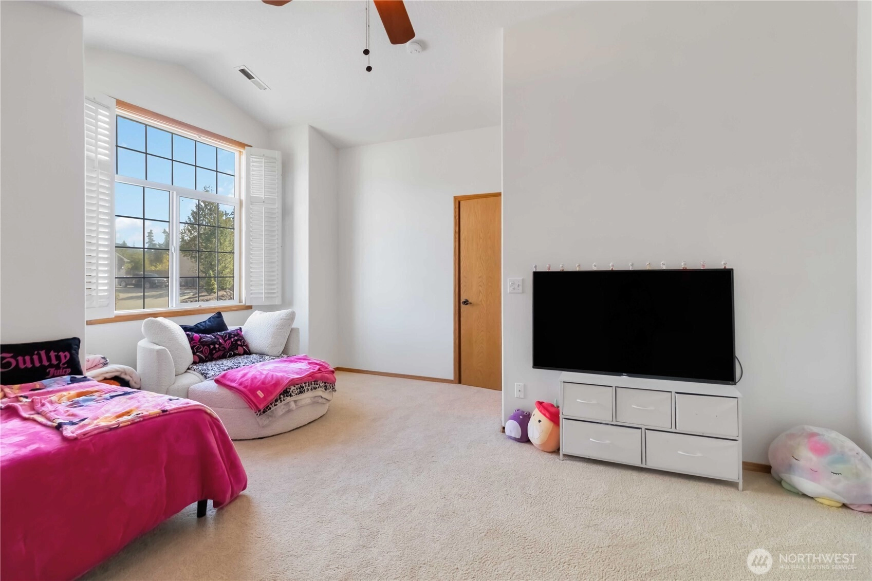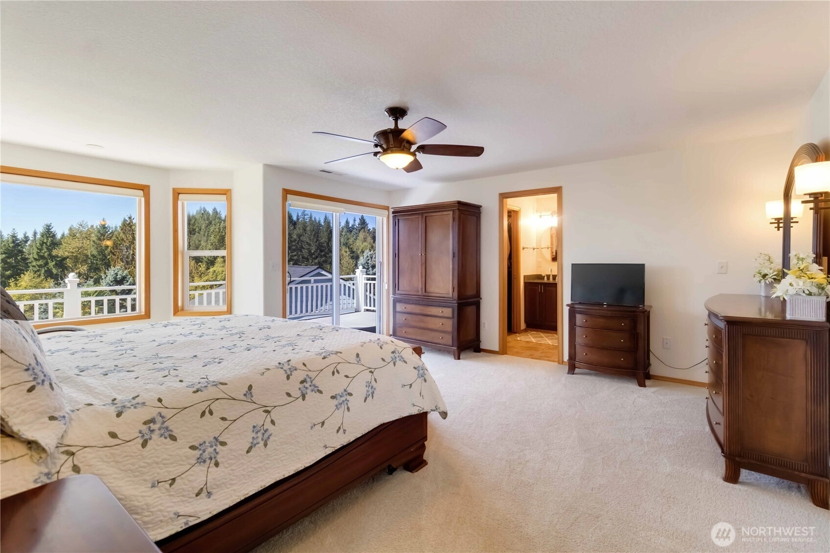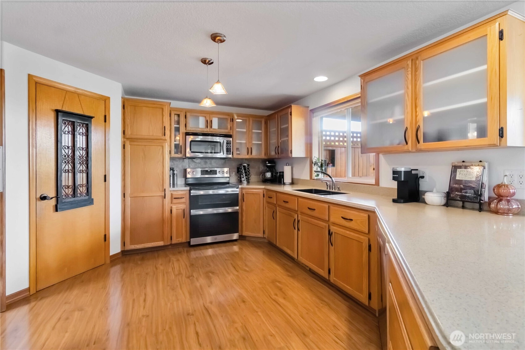 Welcome to this 2,180 sq ft, 3-bed, 2.25-bath home in sought-after Mt Brynion Estates. This property boasts timeless cedar siding, stylish brick accents and a durable 50-year roof installed in 2020, along with new paint inside and out insures both beauty and longevity. The open main level features vaulted ceilings in the entry and elegant living room with plantation shutters, leading to a spacious great room, dining area, and a well-equipped kitchen with double oven, convection microwave, cooktop, eating bar, and Hunter Douglas honey comb drop down blinds. Enjoy year-round outdoor living on the covered deck with expansive territorial views and hot tub. Upstairs, the oversized primary suite includes a walk-in closet, private bath with dual sinks, separate shower, and access to the upper-level private deck with a view. Two more bedrooms, one with vaulted ceilings and another full bath complete the second floor, also equipped with plantation shutters. The oversized garage features finished floors, a sink, and ample storage. Lower level includes a heated/cooled hobby room and storage space. Corner lot with RV parking and second driveway with covered parking. A must-see!
