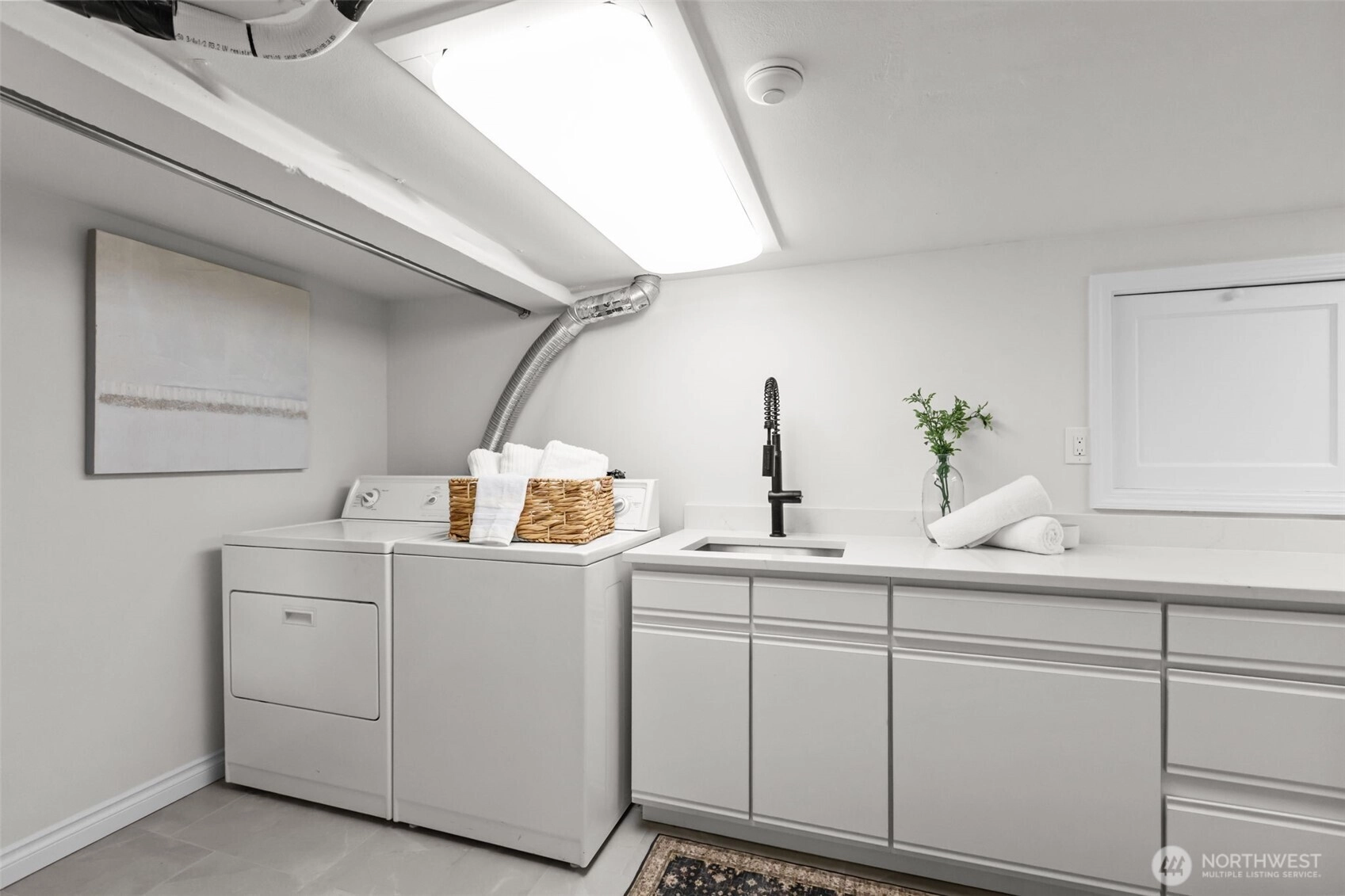Rare double-lot turnkey home in the heart of Laurelhurst! This meticulously updated 4 bed, 2.75 bath rambler with a daylight basement offers the perfect blend of classic Seattle charm and modern luxury. Freshly painted inside and out, the home features a light-filled main floor with a chef’s kitchen flowing seamlessly into the formal dining and living rooms. The primary suite is a true retreat, boasting a spa-like 5-piece ensuite with heated floors. A second main-floor bedroom is uniquely appointed with a cozy fireplace and easy access to the updated full hallway bath. The lower level expands your living space with two large bedrooms, an updated ¾ bath and a spacious rec room for media, play, or a home gym. The outdoor space is unmatched: expansive grounds anchored by a grand Scarlet Oak that provides a canopy of shade in the summer and a breathtaking display of color in the autumn. Enjoy morning coffee on the back deck and let pets roam in the fenced-in portion of the yard. An oversized, detached, two-car garage sits conveniently off the alley, with easy access to a dedicated mudroom. Best of all, this property is Laurelhurst Beach Club eligible, with private waterfront access, docks, and a premier community lifestyle. Don't miss this rare opportunity to own in one of Seattle’s most storied neighborhoods.