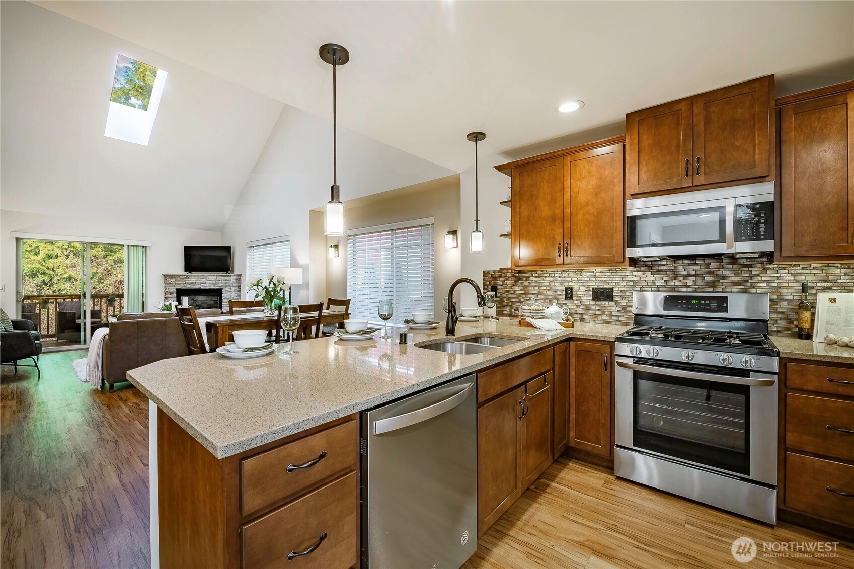 Cooking-Electric Cooking-Gas Dryer-Electric End Unit Fireplace Ground Floor Ice Maker Insulated Windows Primary Bathroom Skylight(s) Vaulted Ceiling(s) Walk-In Closet(s) Washer Water Heater