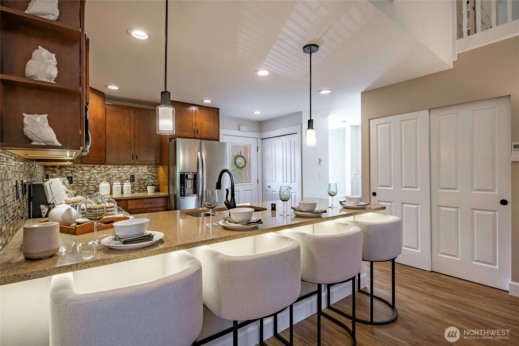 Coastal Luxury Meets Creek-Side Serenity at Birch Bay. Experience the pinnacle of Pacific Northwest living in this stunning, turnkey condo located in the premier private community"The Tides at Birch Bay." This meticulously maintained home offers 2 bedrooms and 2.25 baths, blending modern sophistication with the cozy charm of a coastal cottage. Step inside to soaring vaulted ceilings and an open-concept living space anchored by a stone gas fireplace. The kitchen is a showstopper, featuring: Custom Craftsman-style cabinetry, Elegant quartz counter tops & sleek glass tile back splash, Premium stainless steel appliances, High-efficiency mini-split H.VAC & tank-less water heater for year-round comfort. Relax on your private pine-covered deck while listening to the peaceful waters of Birch Creek. The outdoor space is ready for entertaining with a Weber stainless steel gas BBQ(gas stubbed) and a storage closet for all your beach gear. The community itself feels like a resort, with manicured walking trails and breathtaking Bay views. Sprawling lawns and a community fire pit. An exclusive Clubhouse with a swimming pool, hot tub, and private showers. This home is offered fully furnished and Turnkey—perfect for a vacation getaway or a seamless transition into bay-side living. Walk to the beach, explore local restaurants and enjoy the vibrant Birch Bay lifestyle just steps from your front door.