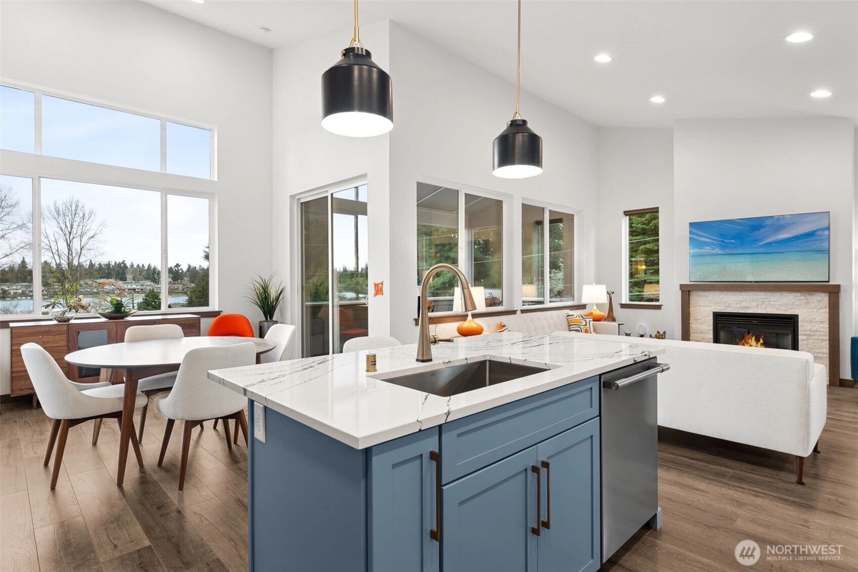 Loaded with upgrades and quality finishes throughout, this meticulously maintained Angle Lake view home will impress. Stunning, beautifully designed home with open-concept living on the upper level, perfectly positioned to capture spectacular Angle Lake views through full-height windows. The home has been extensively updated with high-quality modern finishes throughout. Recent updates include a new roof, fresh interior and exterior paint, an updated open-concept kitchen, remodeled bathrooms, new fixtures, new lighting, new flooring, heat pump with A/C, new furnace, new water heater, and a finished garage floor. Fully updated island kitchen features updated Frigidaire Professional stainless steel appliances, a gas stove, quartz countertops and backsplash. luxurious five-piece primary suite with custom closet organizer. Enjoy two covered decks, one upstairs and one downstairs, perfect for year-round entertaining and barbecuing while taking in the beautiful lake views. Super clean two-car garage features a polyurea chip floor, built-in cabinets, and overhead storage for exceptional organization. The meticulously landscaped yard includes sprinklers and landscape lighting. Better than new, this exceptional home truly stands out as one of those rare top-tier gems you don’t want to miss.