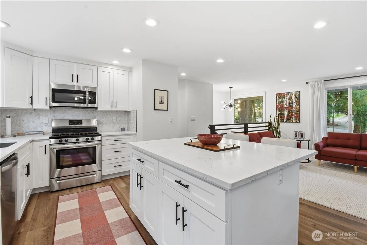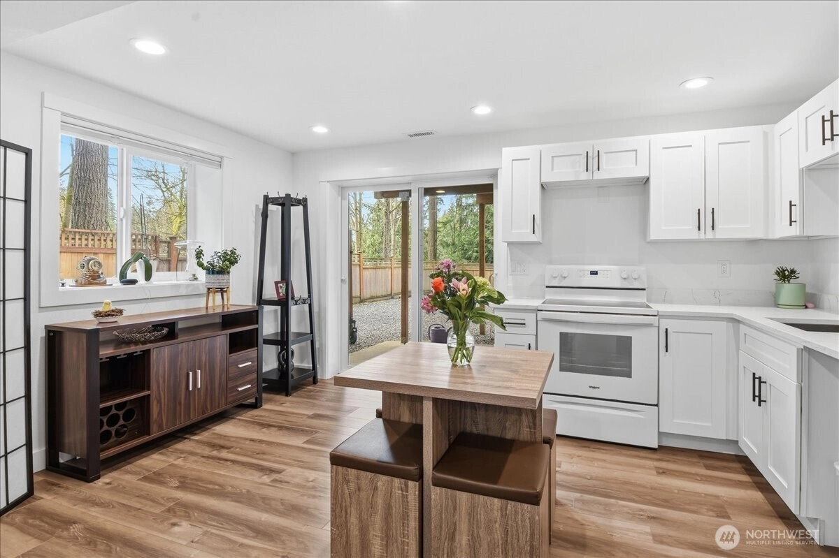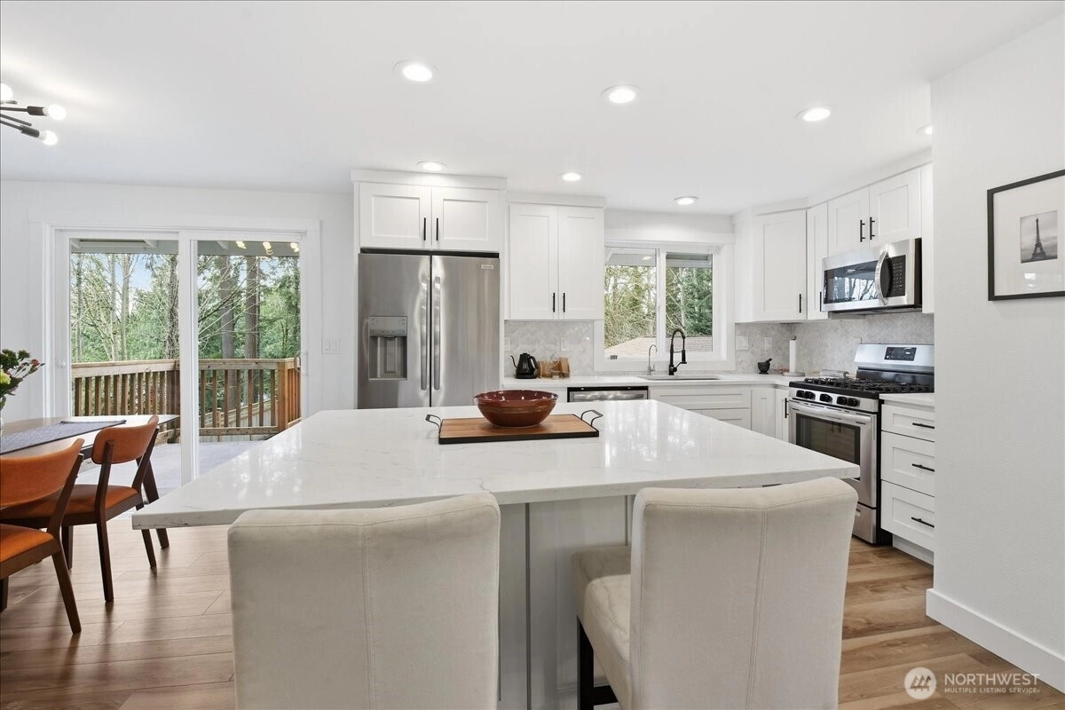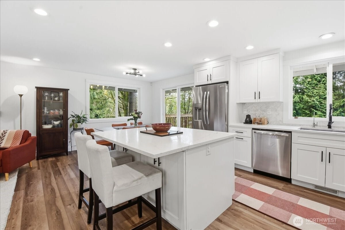 Need a little more room? With a 17,860 sqft lot you have plenty. It comes with it's own private woods to explore and build stuff in. Outside, the fully fenced rear yard offers plenty of space to play, garden, or relax. From summer BBQs on the expansive deck to cozy evenings on the patio, this outdoor space is made to be enjoyed year-round. Nice big seperate garage/shop waiting for your projects. Lots of parking behind the fence, several out front. The lower level has a seperate living space with it's own kitchen, full bath and laundry. If you don't need it that way it also blends in to the home as just more space. or an office? There is also a large play room with direct patio access making parties easy. Too much screentime? Behind the back fence is a private fully fenced woods waiting to be explored. This great home was fully remodelled 3 years ago and still shows as new with a Chef's Kitchen, Quartz Counters, big breakfast island and stainless steel appliances. It backs up to Brier Elementary school and its so quiet that you can hear owls hooting at night.