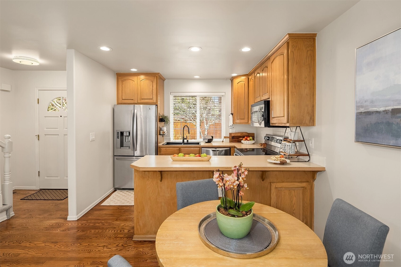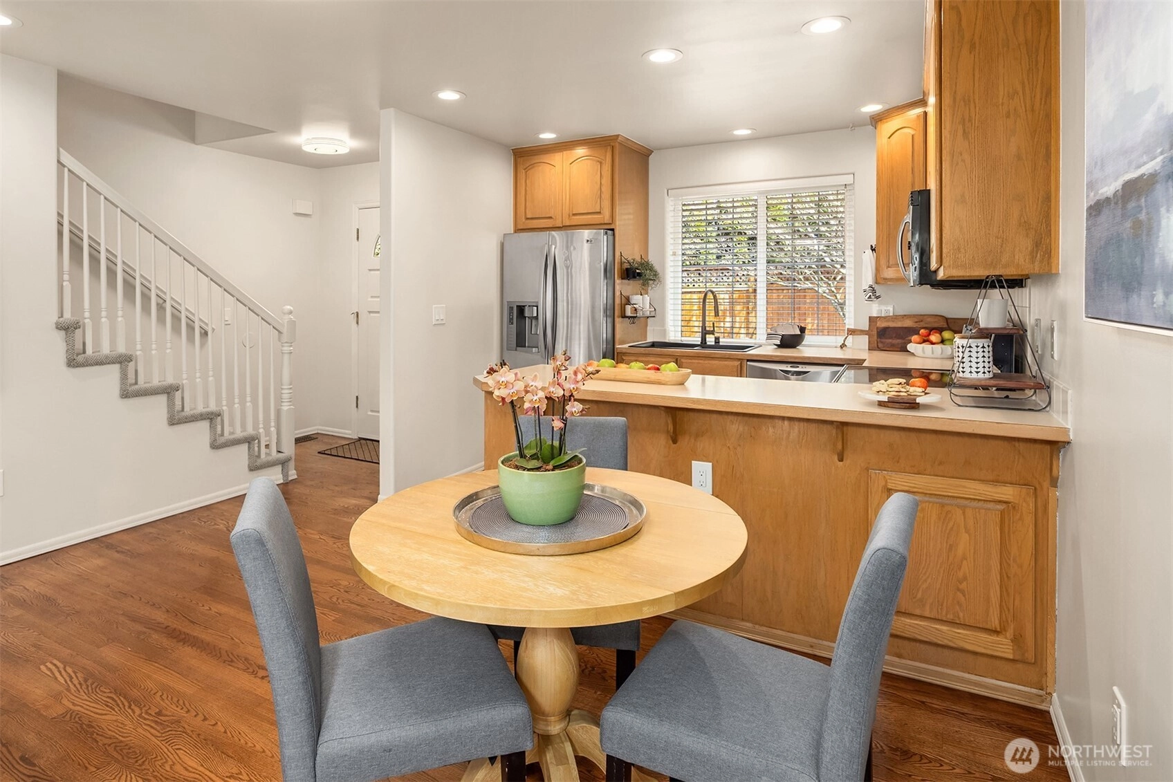Experience the quiet comforts of home with effortless townhome living. Cottage Crest features seven townhomes on a quiet lane located minutes from the beloved Edmonds downtown & waterfront as well as all the conveniences & access Lynnwood offers! This well-maintained end-unit is as peaceful as it is convenient. The main floor showcases a light and airy great room, hardwood floors, gas fireplace, powder room & laundry. A charming, private patio with garden space provides the perfect spot to unwind! Upstairs, the primary suite features a step-in shower & closets equipped with built-in organization. Two additional bedrooms, a full bath & ample storage. One-car garage with parking in front of the unit, plus a designated space, guest parking along the right-side curb. Brand-new gas furnace (April 2026), newer carpet & water heater (installed 2023), Ring security & doorbell. No rental cap-Excellent rental investment opportunity, transit & light rail nearby, Edmonds College Campus-1 mile. Community is currently 100% owner occupied. Seller procured inspection & HOA docs available for review.