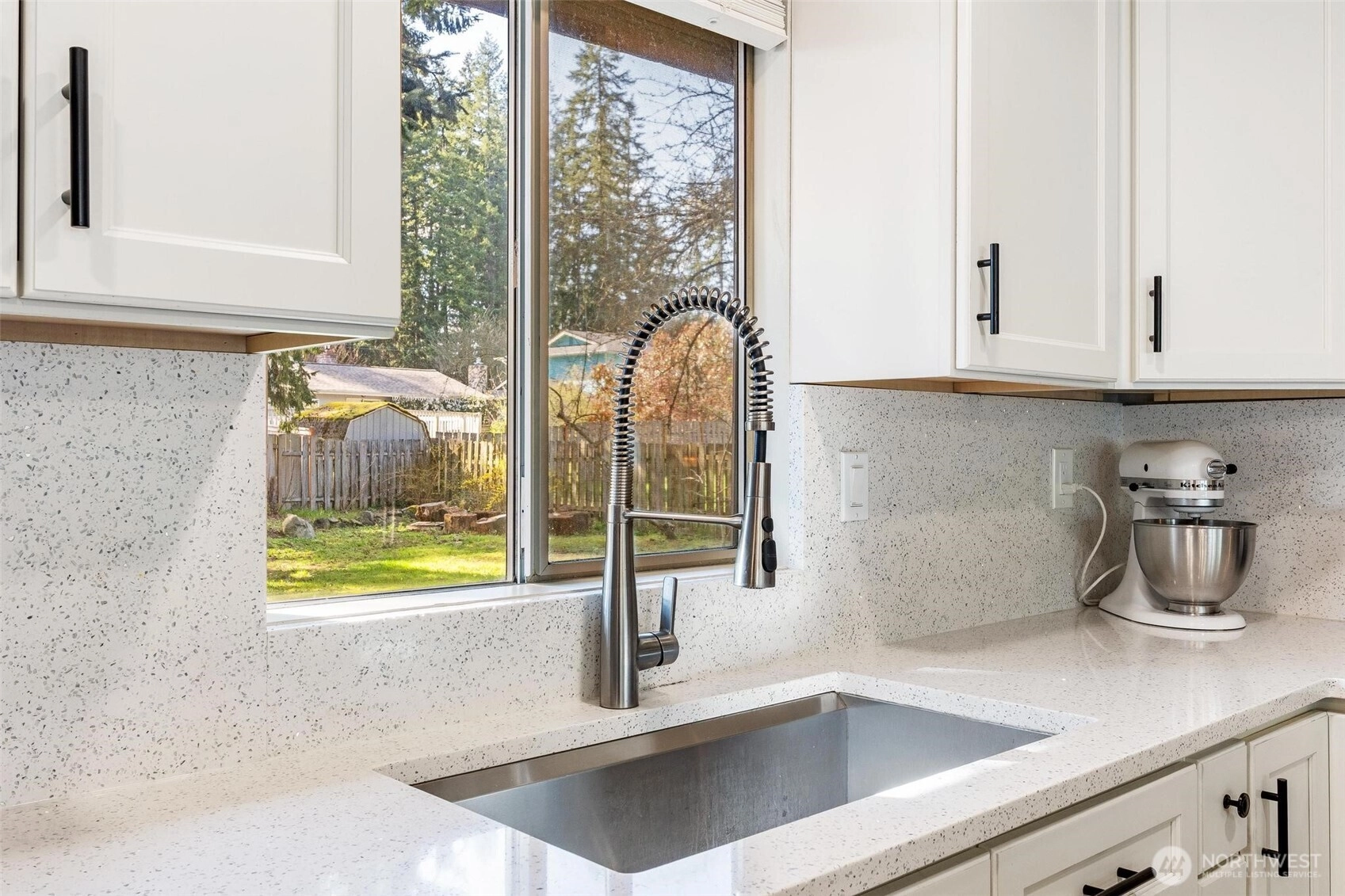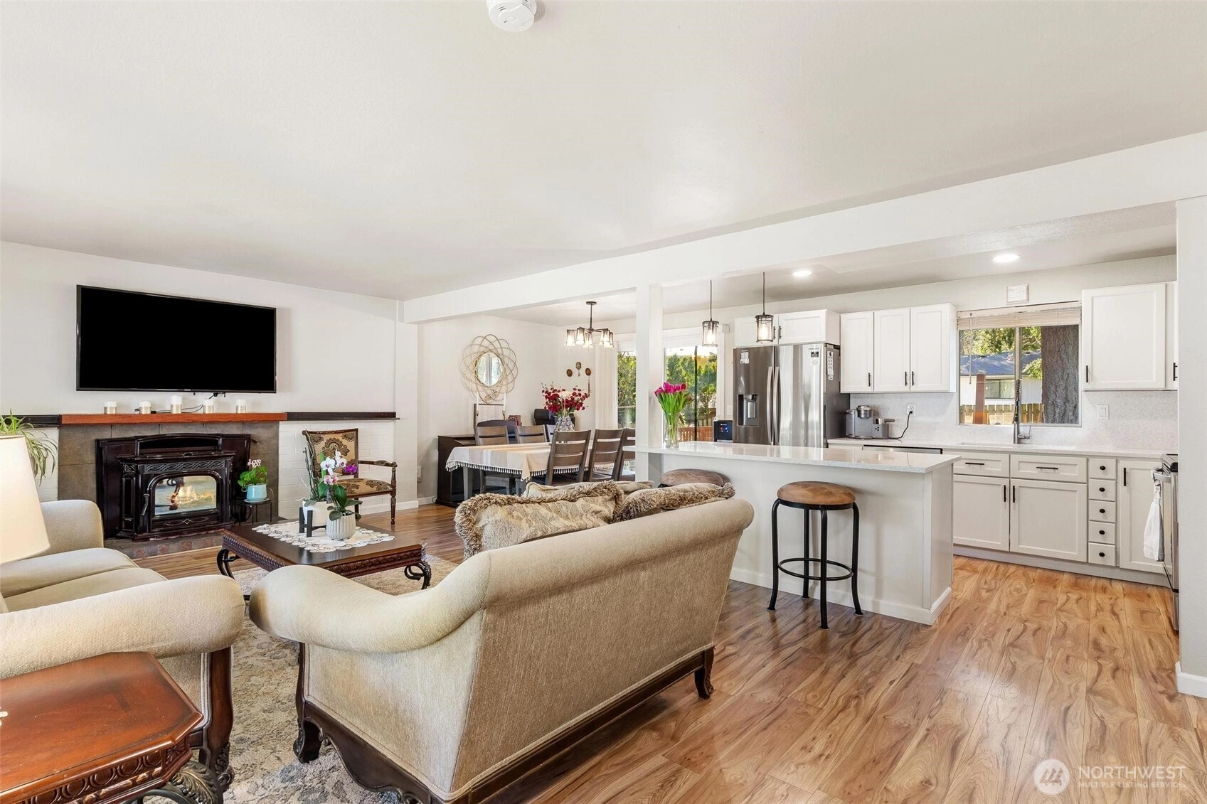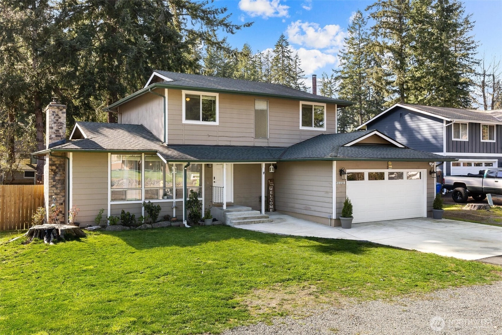 Nestled on a quiet cul-de-sac near Lake Sawyer, this beautifully updated home offers the perfect blend of comfort, style, and location. Enjoy open concept living filled with immense natural light, a cozy fireplace, and a seamless flow from the living room to the dining area and out to the back deck overlooking a lush backyard. The stunning kitchen features gleaming quartz countertops, stainless steel appliances, and modern finishes throughout. The seller has truly done it all with new flooring and thoughtful updates in every space, including refreshed bathrooms on both levels. A versatile lower-level bonus area with an updated bath and direct backyard access offers flexible living options for guests, work, or play. Ideally located just minutes from the Lake Sawyer boat launch, public parks, and the many amenities of Covington and Maple Valley, all within the highly sought-after and award-winning Tahoma School District.