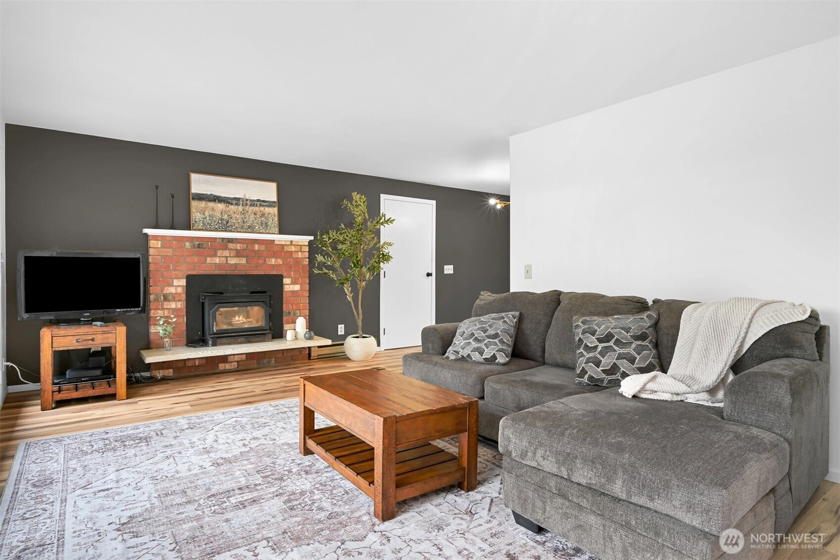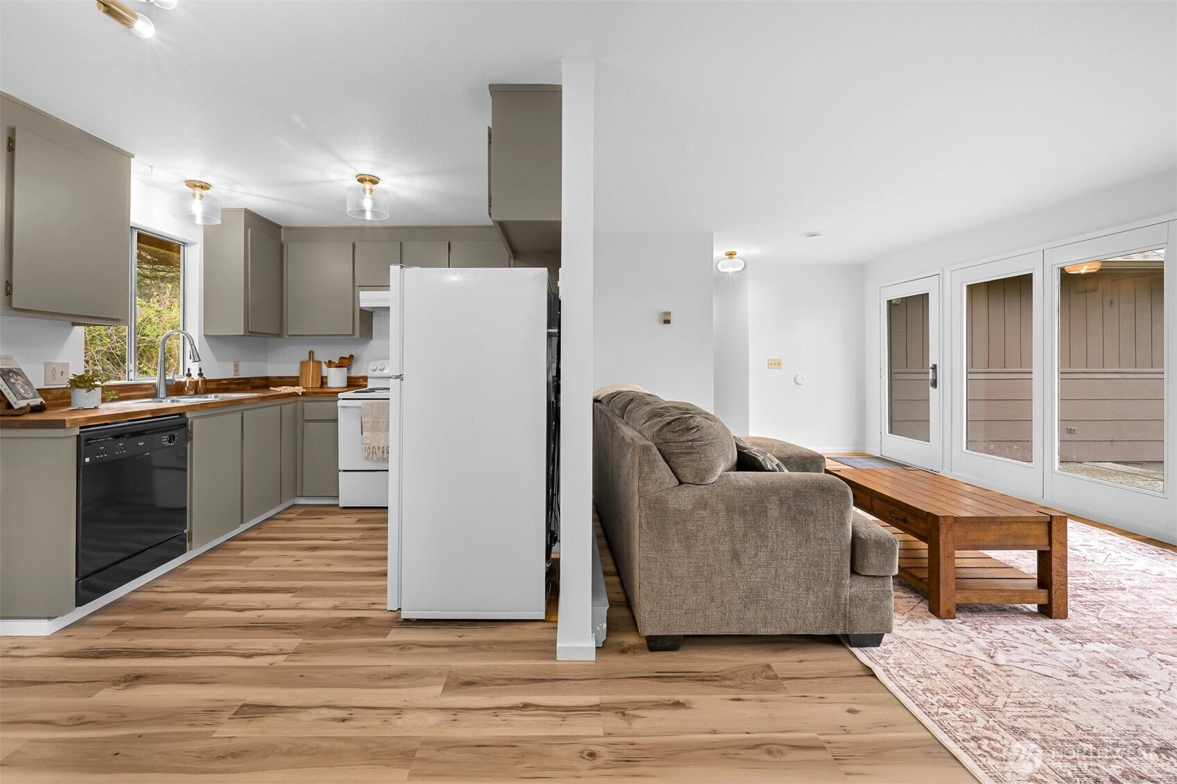 Iconic mid-century modern rambler on a large corner lot with southwest-facing territorial and partial views toward Drayton Harbor and the San Juan Islands. This updated 4 bedroom, 2 bathroom home blends classic architectural lines with modern finishes throughout. Walls of windows provide abundant natural light and sunset views from the main living areas. Wood stove adds warmth and character. Expansive deck offers additional outdoor living and entertaining space. Recent updates include new flooring and interior paint, exterior paint completed approximately 2 years ago, roof replaced approximately 5 years ago, and water heater installed 2020. Well-maintained throughout. Spacious backyard with mature landscaping and room for gardening or recreation. Fully finished two car garage plus additional off-street parking. Great combination of mid-century design, usable outdoor space, and Blaine location.