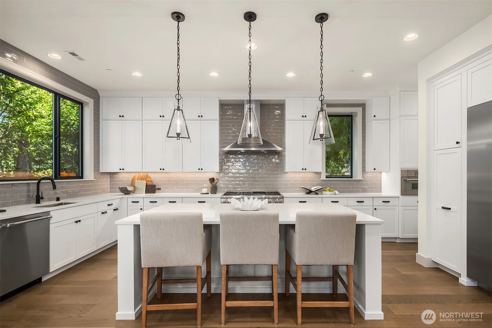 Discover the highly sought-after Lombard plan by Murray Franklyn, located in the prestigious Havenwood Park II community near Glendale Country Club in the heart of Bellevue. This exceptional home offers a prime central location with convenient access to Downtown Bellevue, nearby parks, and major freeways—all within a short walk to award-winning Bellevue schools. Featuring 5 bedrooms, including a main-floor guest suite, and 4.5 beautifully appointed bathrooms, this home is designed for both comfort and elegance. The stunning entryway creates an unforgettable first impression, highlighted by a dramatic catwalk overlooking the space. Thoughtfully designed for modern living, the home includes a two-story family room filled with natural light, a main-floor den, formal dining room, and a spacious recreation room. The large covered patio provides the perfect setting for year-round entertaining with fireplace and overhead heaters. Completing the home is a rare 4-car garage with ample space for a workshop or additional storage. Expansive 14,677 square feet homesite featuring backyard that offers plenty of privacy and playspace. This home is fully completed and move-in ready—an incredible opportunity to own luxury in one of Bellevue’s most desirable neighborhoods.