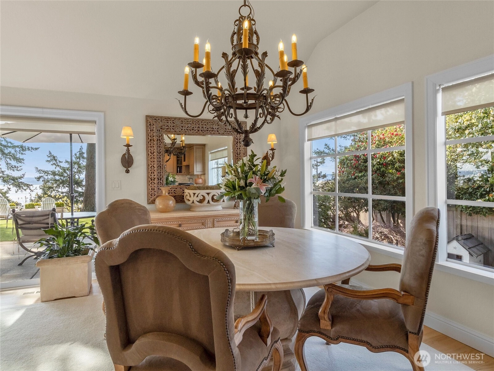 Timeless elegance positioned on the enchanting high bank in Normandy Park, this storybook home displays a blend of modern layout and traditional charm. A panoramic backdrop of the Puget Sound and Olympic Mountains offer serene views of rare and unparalleled living and entertaining. Step inside to thoughtfully curated sophistication at every turn with custom iron pendant lighting, gourmet kitchen and wet bar, tranquil primary suite, and the grand living space with uninterrupted flow into the premier outdoor oasis. Enjoy the exclusive deeded Lot A beach rights providing access to The Cove, an 18-acre Puget Sound waterfront property including a boat launch, clubhouse and more. Experience the magical ambiance of this one of a kind estate on highly coveted Edgecliff Drive, a true rare gem.
