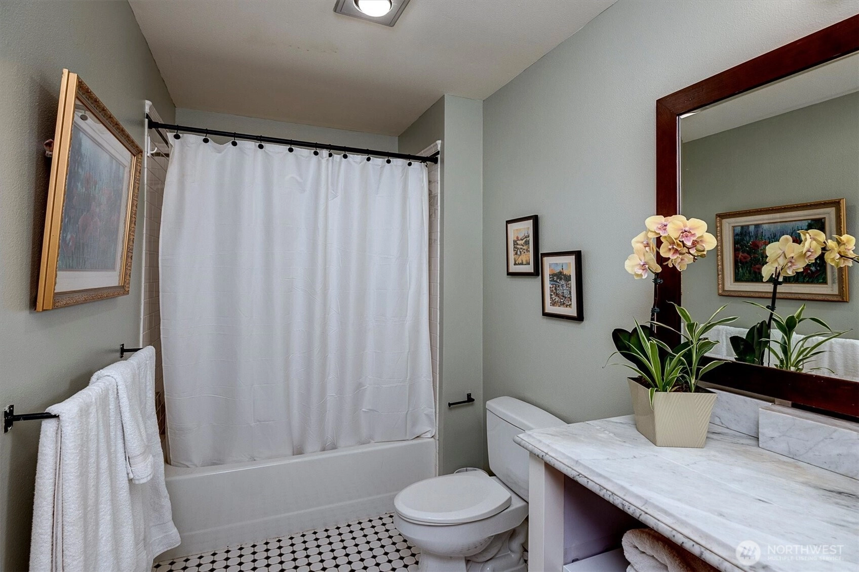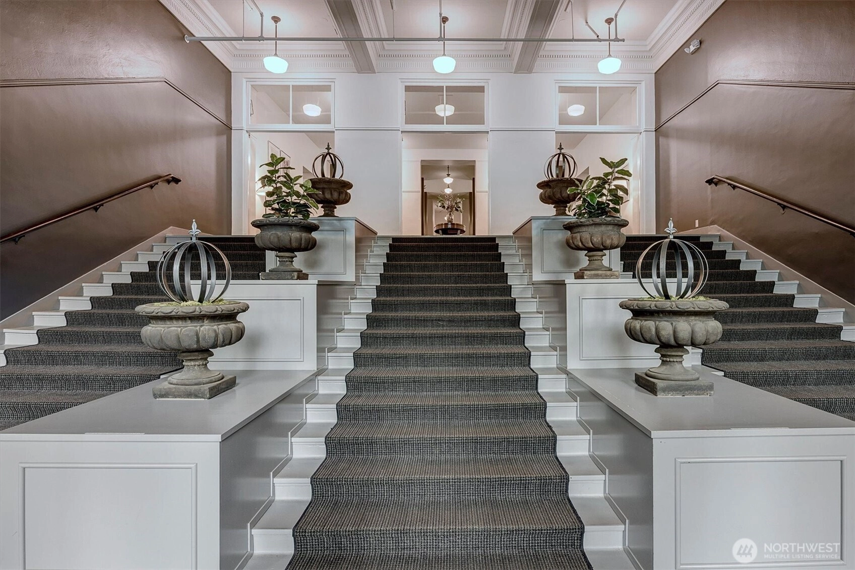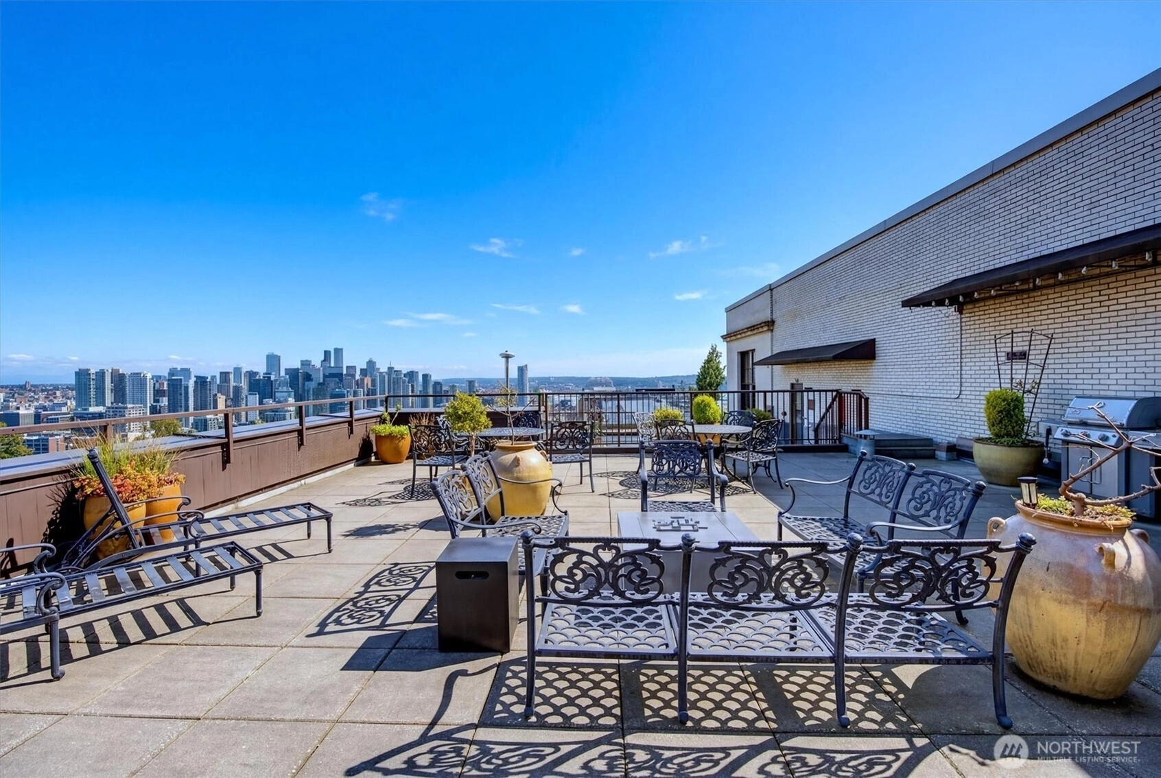 Own a piece of Seattle history at the iconic Queen Anne High School. This light-filled, open-concept 1-bedroom studio offers one of the best layouts in the building, with a rare view of the Space Needle. High ceilings and hardwood floors create an open feel, while the kitchen and classic tiled bath offer practical functionality. Free on-site laundry is just steps away, and a nearby storage unit adds extra convenience. The home also features new custom plantation shutters. The building sits atop Queen Anne Hill and includes a large rooftop deck with views of the city skyline, Puget Sound, and surrounding mountains. Amenities include an on-site manager, off-street parking, bike storage, and pet-friendly policies with no rental cap. Located just blocks from Queen Anne’s shops, restaurants, and services, this home offers a mix of historic character and everyday convenience.