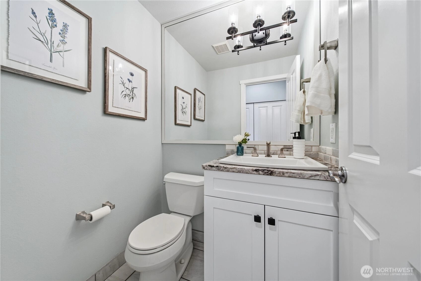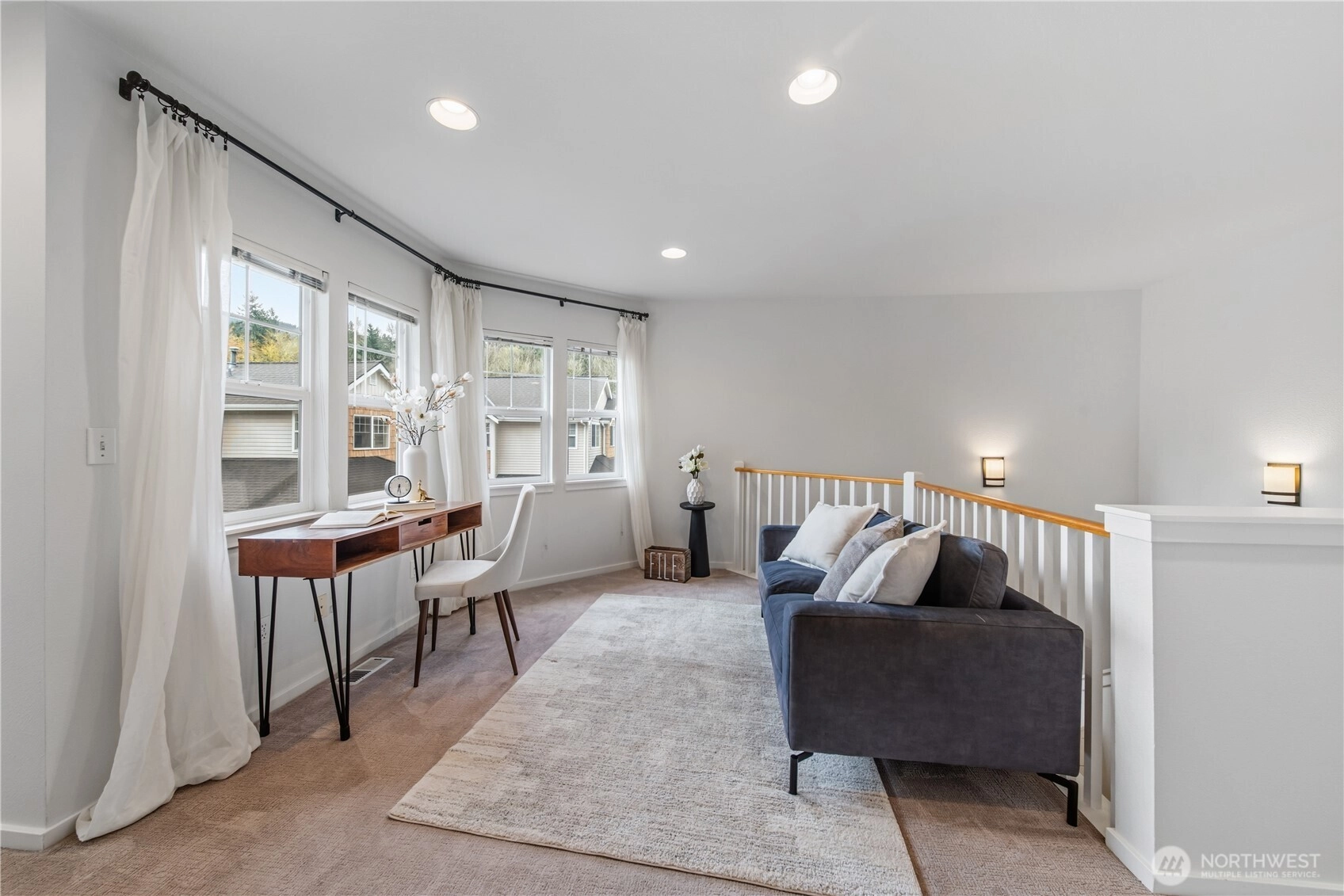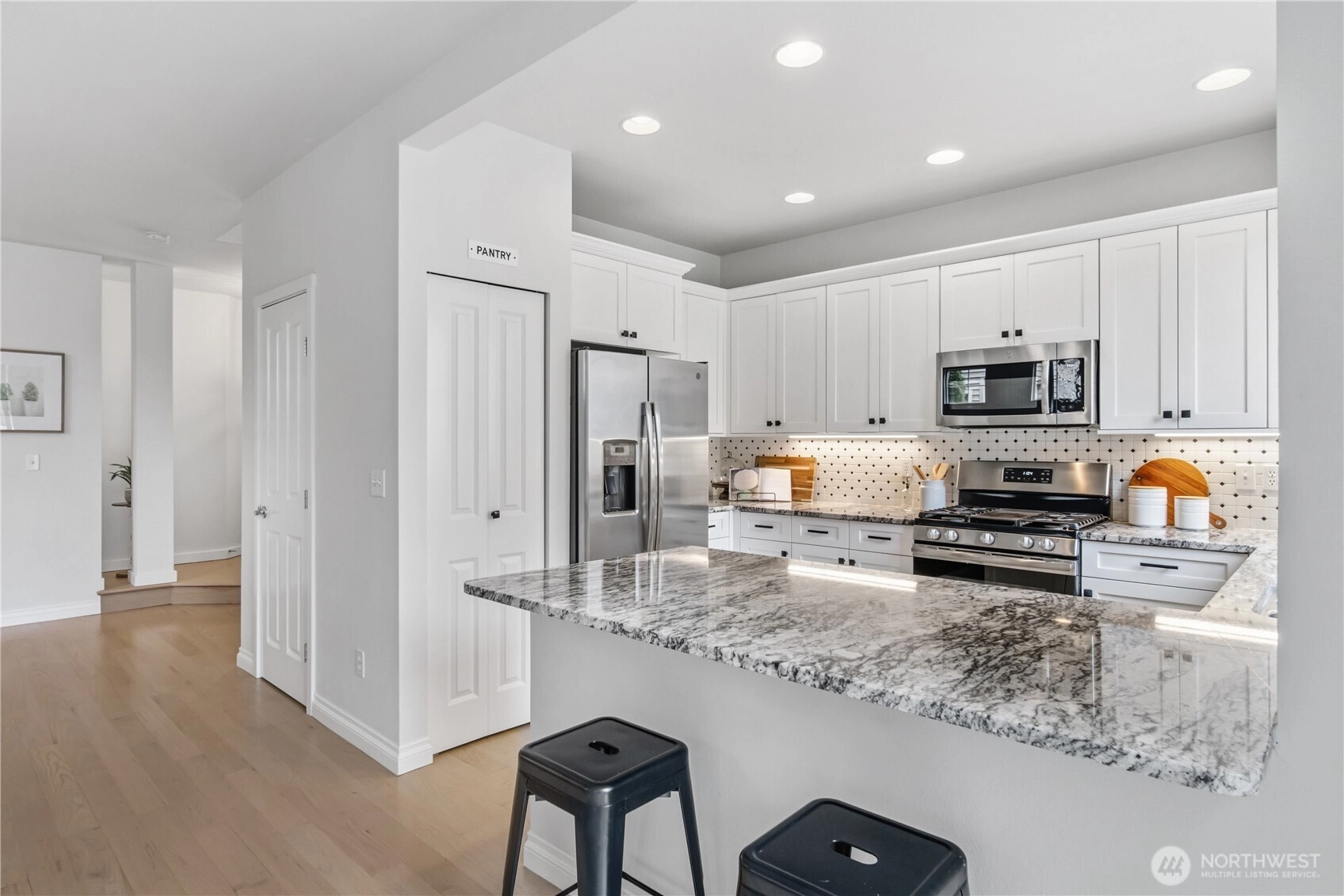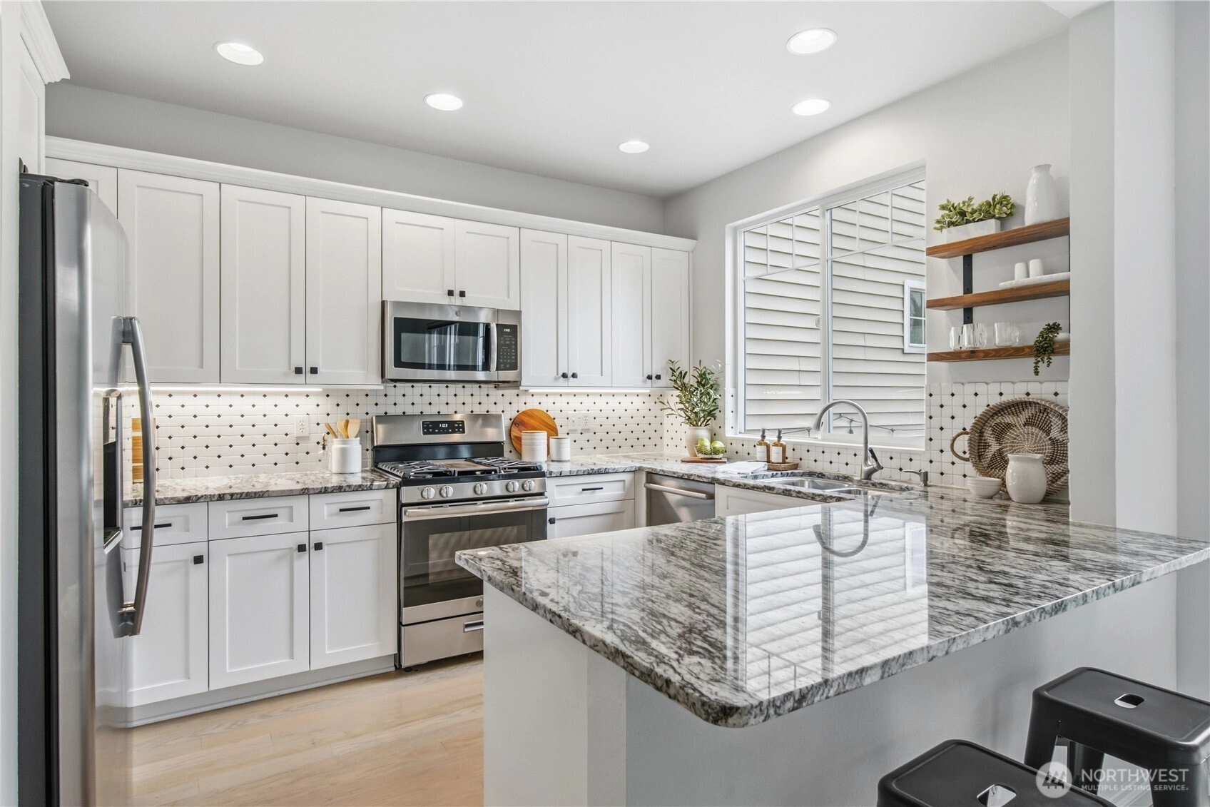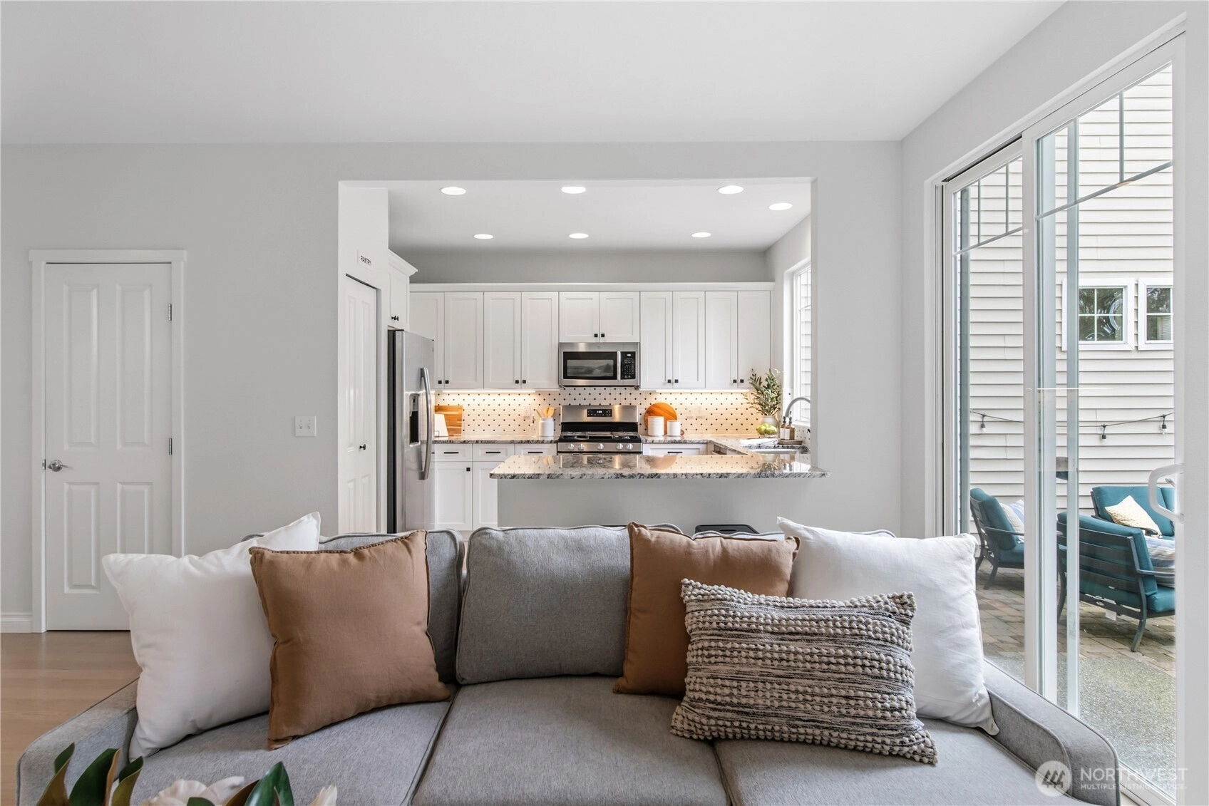 Beautifully updated townhome in a secure gated community, just a short walk to vibrant downtown Issaquah. Offering 3 bedrooms, 2.25 bathrooms, and 1,545 square feet, this home blends comfort, function, and style. The main level features spacious, light-filled living and dining areas with hardwood floors, creating a warm and inviting place to gather. The kitchen is tastefully updated with granite countertops and stainless steel appliances. Upstairs, the flexible loft provides the perfect space for a home office, playroom, or second living area. The primary suite is a true retreat, complete with an en suite bathroom featuring a tiled walk-in shower, double vanity, and granite countertops. Two more spacious bedrooms provide flexibility for guests or everyday living. The additional bathrooms include tile floors and granite for a clean, elevated feel. Step outside to a fully fenced, low-maintenance yard with artificial turf and a paver patio—ideal for relaxing or entertaining without the upkeep. A spacious two-car garage with ceiling-mounted storage racks offers excellent storage and functionality. All of this and just minutes from local shops, dining, and everyday amenities.