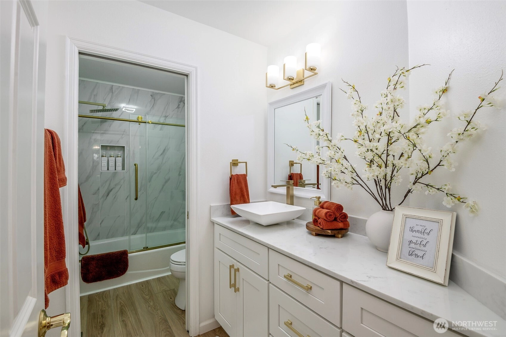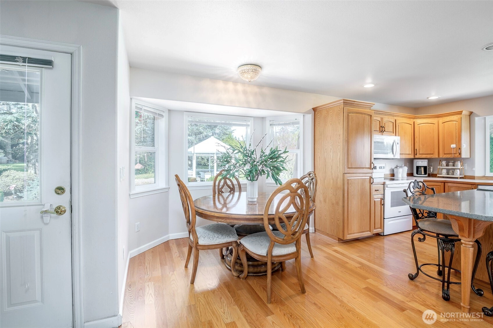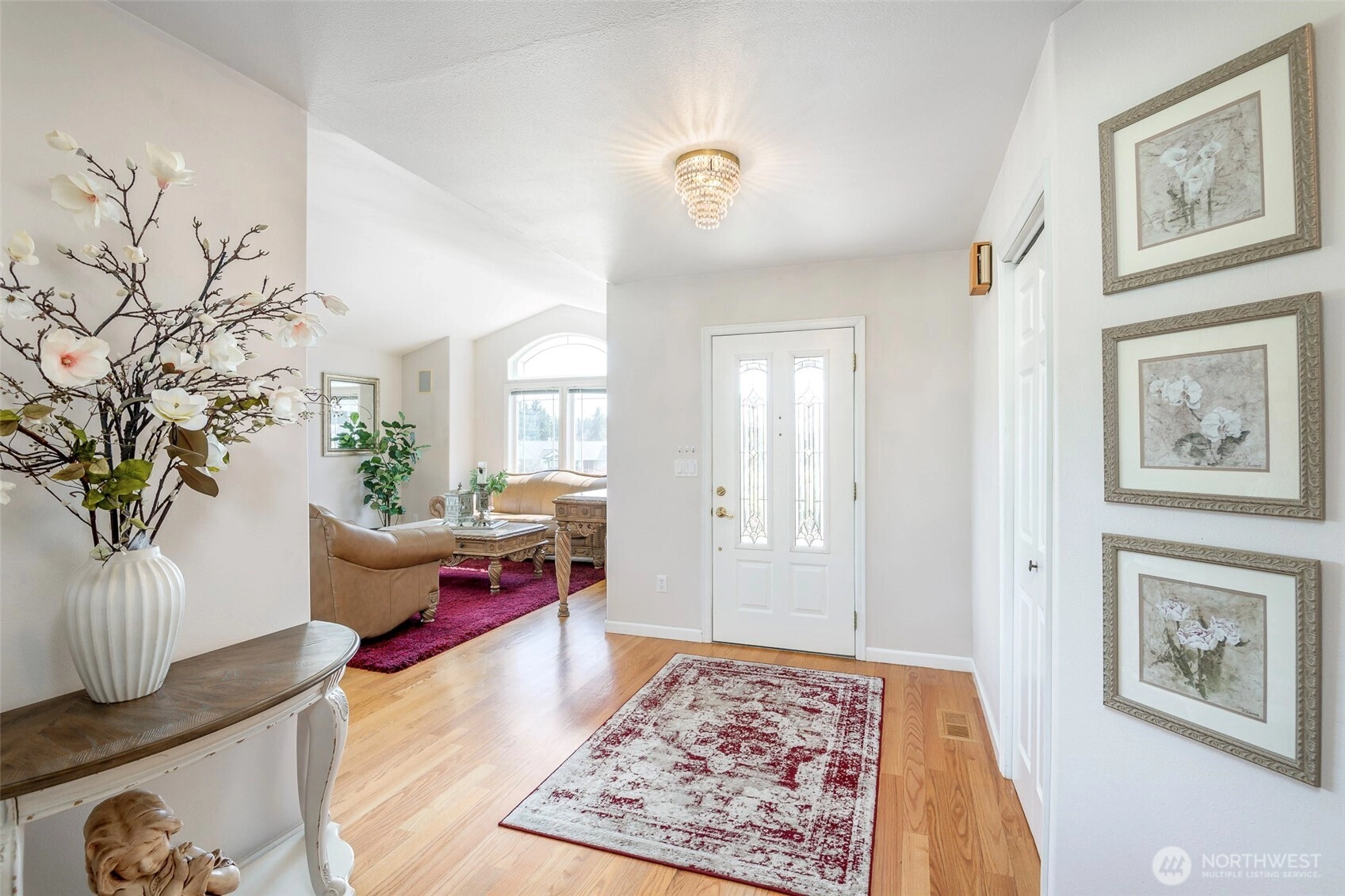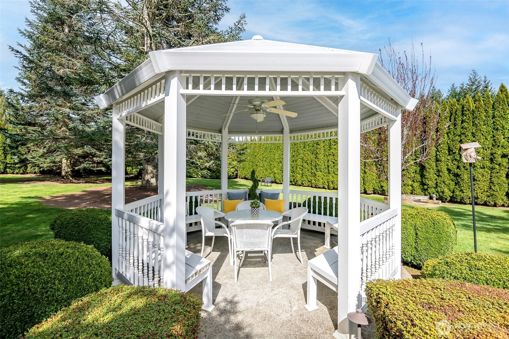 Experience the pinnacle of PNW living in this stunning Graham retreat set on 1.21 acres of beautifully landscaped grounds! This 3 bed, 2 bath home offers 2,145 sq ft of light-filled living, enhanced by rich hardwood floors and dazzling Swarovski crystal chandeliers throughout. Thoughtful updates provide peace of mind, including a new roof (50-year warranty), new furnace & A/C, fresh paint, and new carpet. The spacious primary suite is a true escape, featuring a luxurious 5-piece ensuite, walk-in closet, and private access to the expansive back deck—also accessible from the living room for seamless indoor-outdoor living. Step outside to your own park-like oasis with lush landscaping, gazebo, horseshoe area, jacuzzi tub, privacy trees, and RV parking with full hookups. Enjoy breathtaking Mt. Rainier views from the dining room deck, while oversized windows throughout showcase the beauty of the PNW. Wired generator and parking for 5+ vehicles complete this exceptional property.