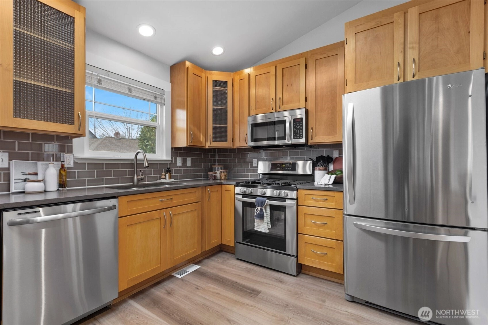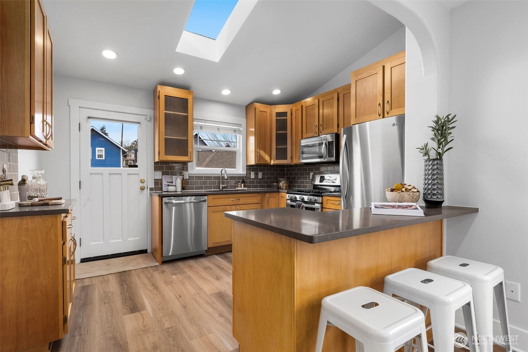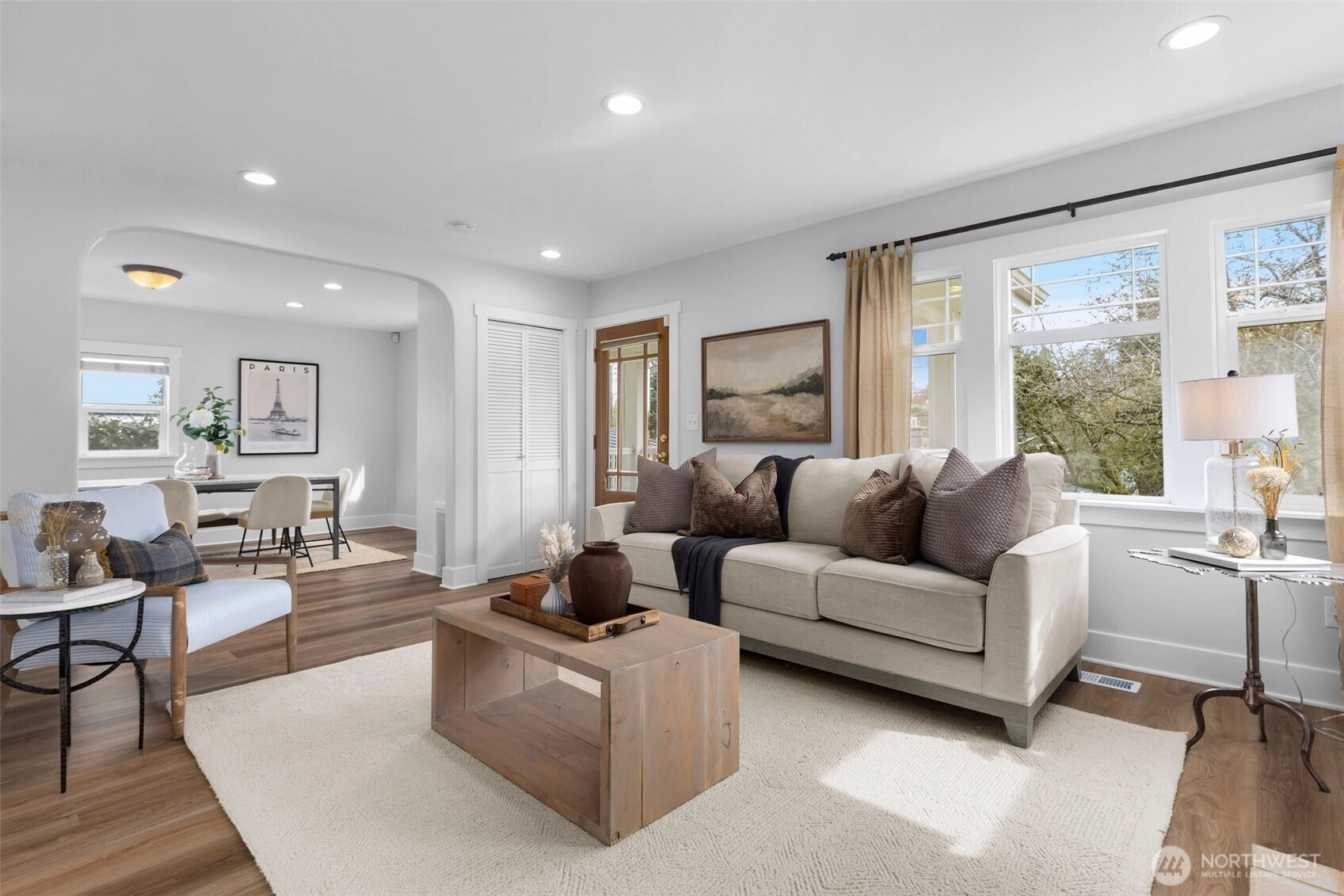 Charming Madrona Craftsman in the Central District with 3 beds + 3 baths and a long list of updates. The open, refreshed kitchen features quartz counters, shaker cabinetry, and stainless appliances—flowing effortlessly into the spacious living and dining areas. Enjoy all-new LVP flooring and carpet throughout, plus major improvements including a new roof, updated windows, and fresh interior/exterior paint. New front and back porches add the perfect finishing touch.Upstairs, retreat to a generous primary suite with walk-in closet, updated full bath, and peek Mt. Baker views. The finished basement offers a rec room, additional bedroom, newly updated ¾ bath, extra storage, and flexible space for guests, work, or play. Central A/C, a fully fenced and landscaped yard, and off-street parking complete the package. Prime in-city location with easy access to restaurants, parks, shopping, and transit—Madrona, Central District, Capitol Hill, Madison Park, and more are all right nearby. Don’t miss this one!