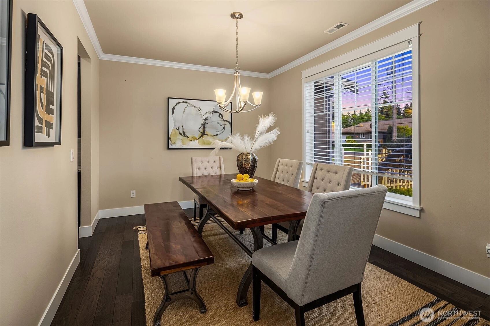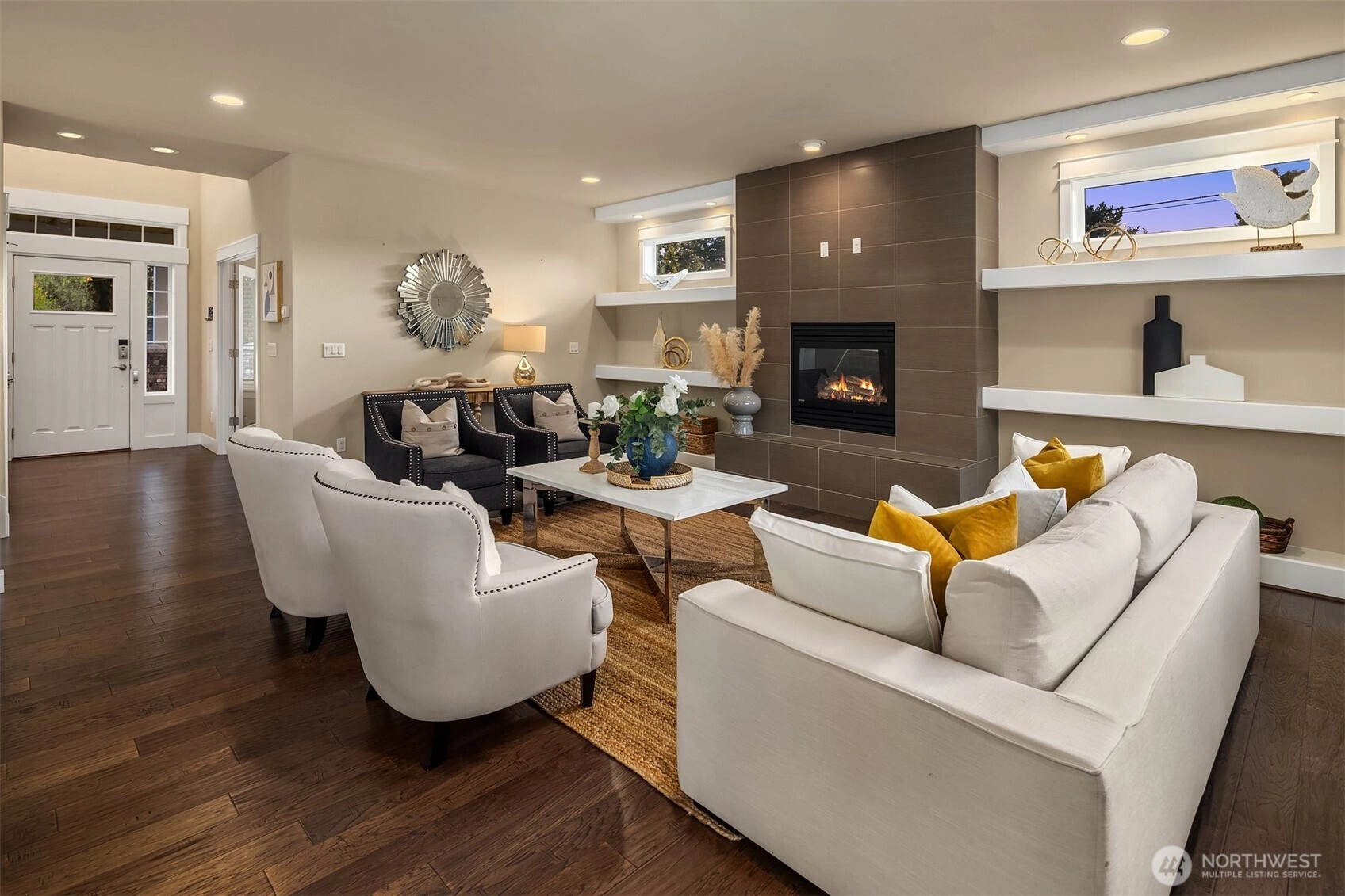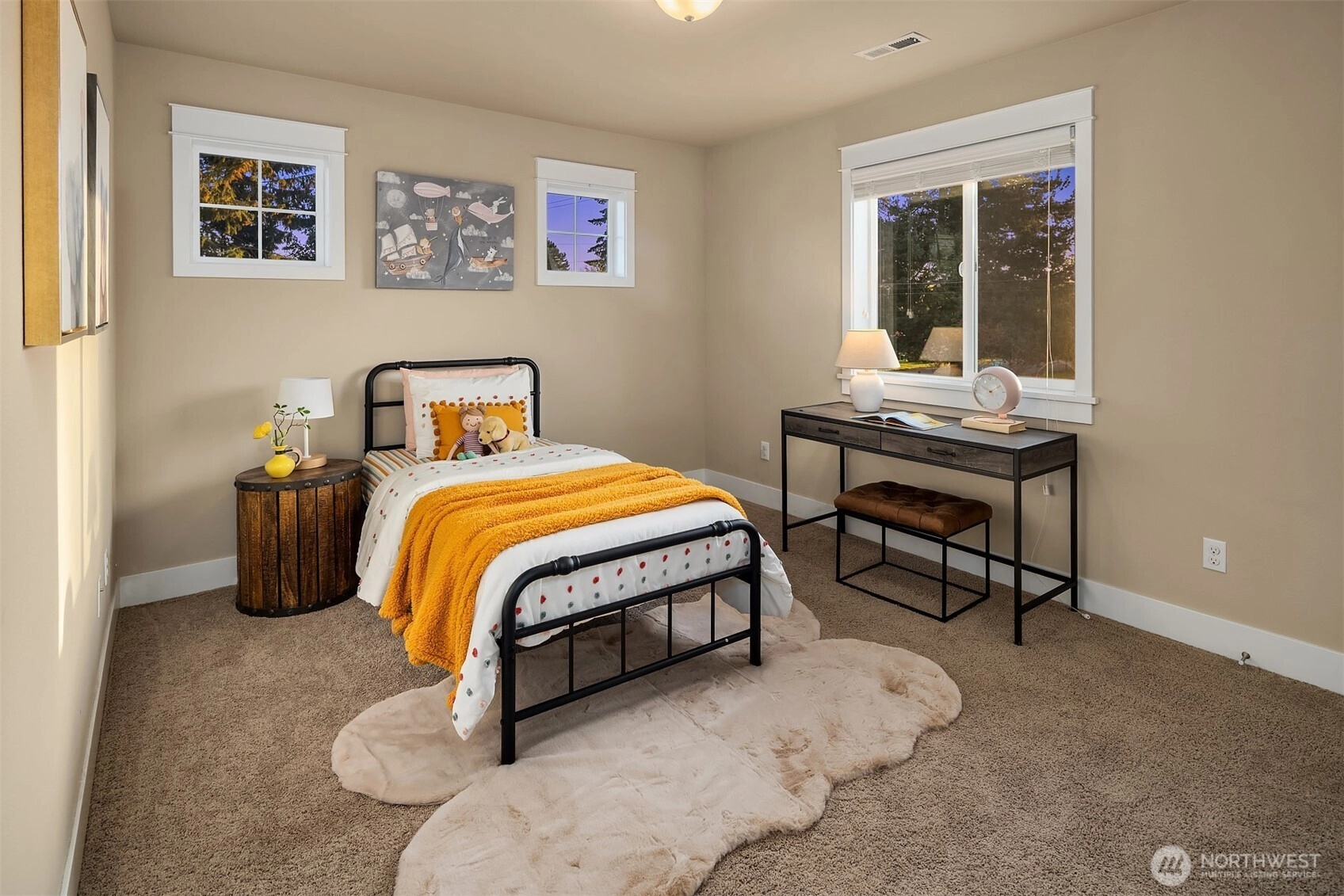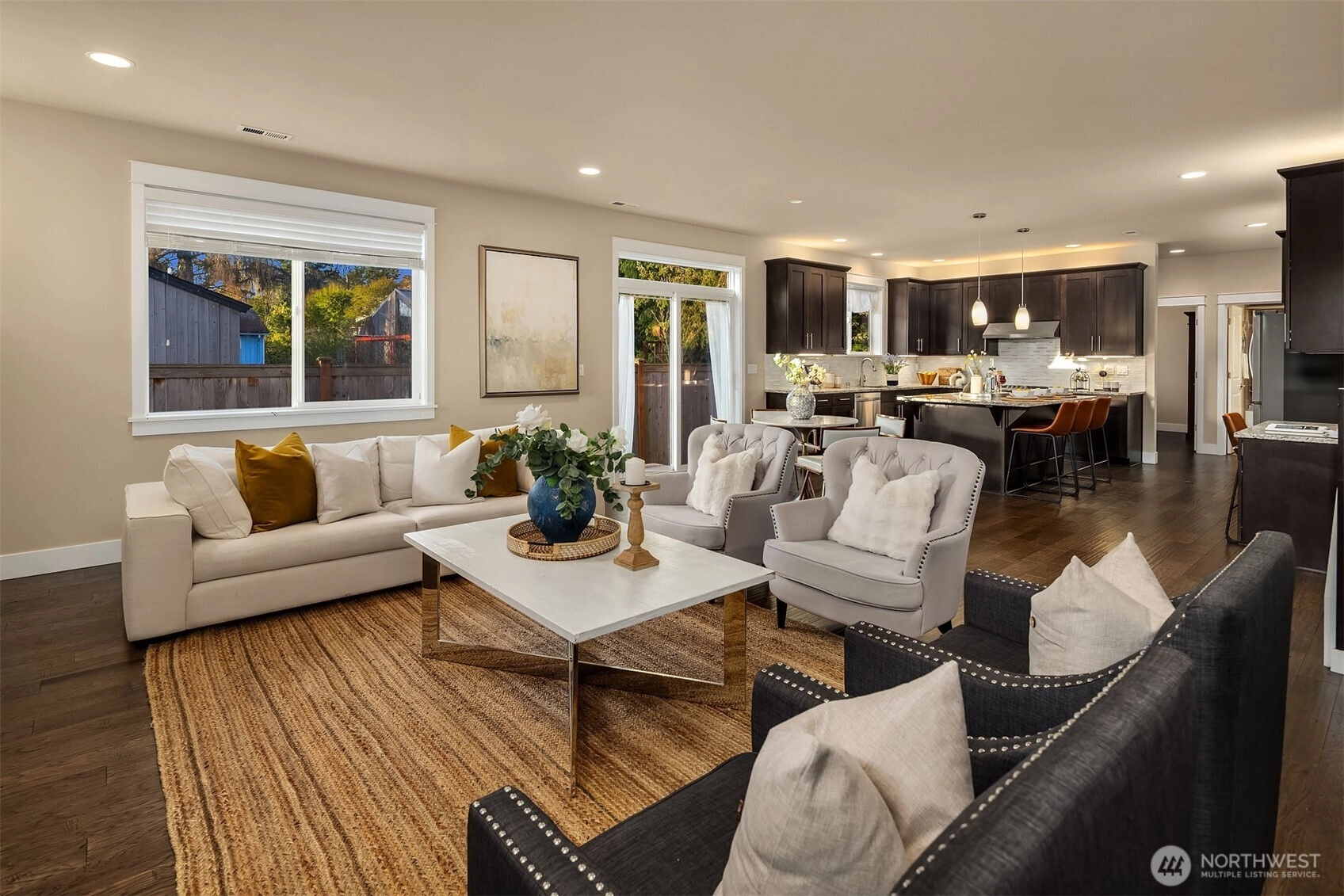 Modern and spacious, this 5-bedroom, 3-bathroom home in the heart of Haller Lake sits on a sunny, flat corner lot over 10,000 sqft—offering great potential for an ADU or DADU (buyer to verify). Thoughtfully designed with an open floor plan and soaring foyer, the main level features a home office and a guest bedroom with full bath. Upstairs offers 4 additional bedrooms plus a versatile bonus room. Skylights bring in abundant natural light, creating a warm and inviting ambiance throughout. Conveniently located near Northgate Mall, parks, and the future light rail station at 130th, this home blends comfort, function, and investment opportunity in one of North Seattle’s most beloved neighborhoods.